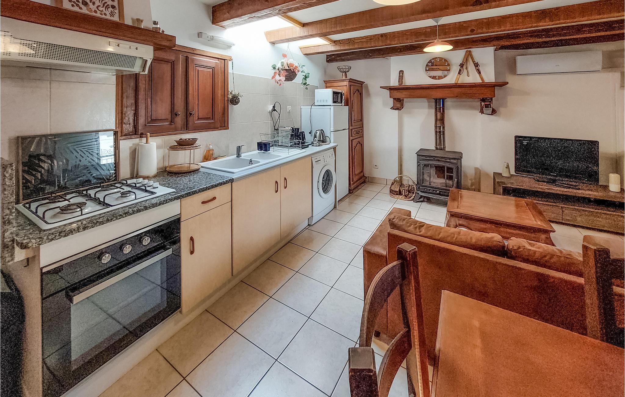 Se fram emot detta vackra semesterhus som välkomnar dig med sin alldeles speciella charm. Här kan du och din familj känna er som hemma och koppla av i det smakfulla rummet med synliga träbjälkar och en vacker färgsättning. Laga läckra måltider på kvällen eller värm dig framför eldstaden och vila dina trötta muskler från vandring. Du kan njuta av dagarna med en kopp kaffe ute medan din blick vandrar över byn och landsbygden.