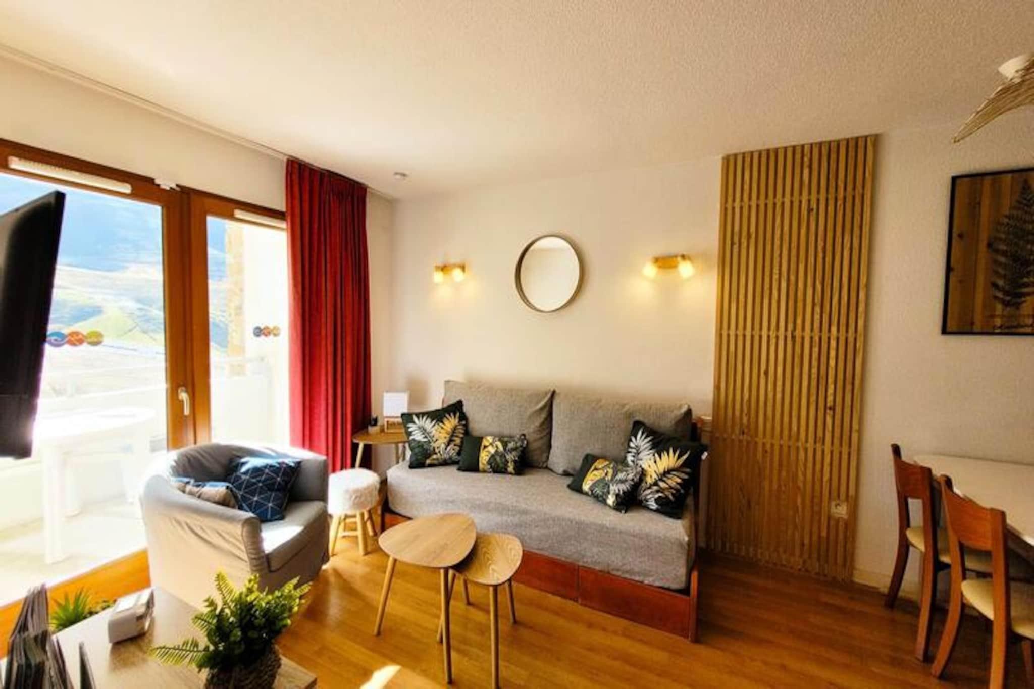 Högt ovanför det pittoreska Pyrenéiska landskapet inbjuder Pic du Midi-residenset i La Mongie dig att uppleva charmen i de franska bergen. Med sin traditionella arkitektur som blandar trä och sten erbjuder denna fridfulla tillflyktsort en perfekt balans mellan komfort och natur. Oavsett om du blickar ut över de majestätiska topparna från din terrass i söderläge eller njuter av den livliga alpina atmosfären, är varje ögonblick här en hyllning till Pyrenéernas skönhet. \n\nResidenset ståtar med omsorgsfullt designade lägenheter, alla utrustade med moderna bekvämligheter inklusive pentry, platt-TV och ett mysigt vardagsrum. De söderläge loggian erbjuder hisnande utsikt över de omgivande backarna och bergen, medan den uppvärmda inomhuspoolen och gymmet ger en touch av lyx till din vistelse. Familjer och grupper kommer att uppskatta den rymliga planlösningen, komplett med ett sovrum med dubbelsäng och en bäddsoffa. Skidförvaring, garage och praktiska tjänster som försäljning av liftkort och uthyrning av utrustning garanterar en problemfri semester. \n\nResidenset ligger bara 300 meter från skidbackarna, med en gratis transferservice som förbinder dig med ortens centrum, och är en fristad för vintersportentusiaster. På sommaren vaknar områdets pastorala charm till liv med betande får och lamor, och de närliggande stolliftarna öppnar upp en värld av vandring och panoramautsikt. Utforska den legendariska Col du Tourmalet, besök observatoriet Pic du Midi eller varva ner på kurorterna Bagnères-de-Bigorre och Barèges. \n\nOavsett om du söker spännande utomhusäventyr eller en lugn bergsflykt, erbjuder Pic du Midi-residenset en oförglömlig upplevelse i hjärtat av Pyrenéerna. Låt den friska bergsluften och de fantastiska vyerna föryngra din själ medan du skapar bestående minnen i denna idylliska alpina reträtt.