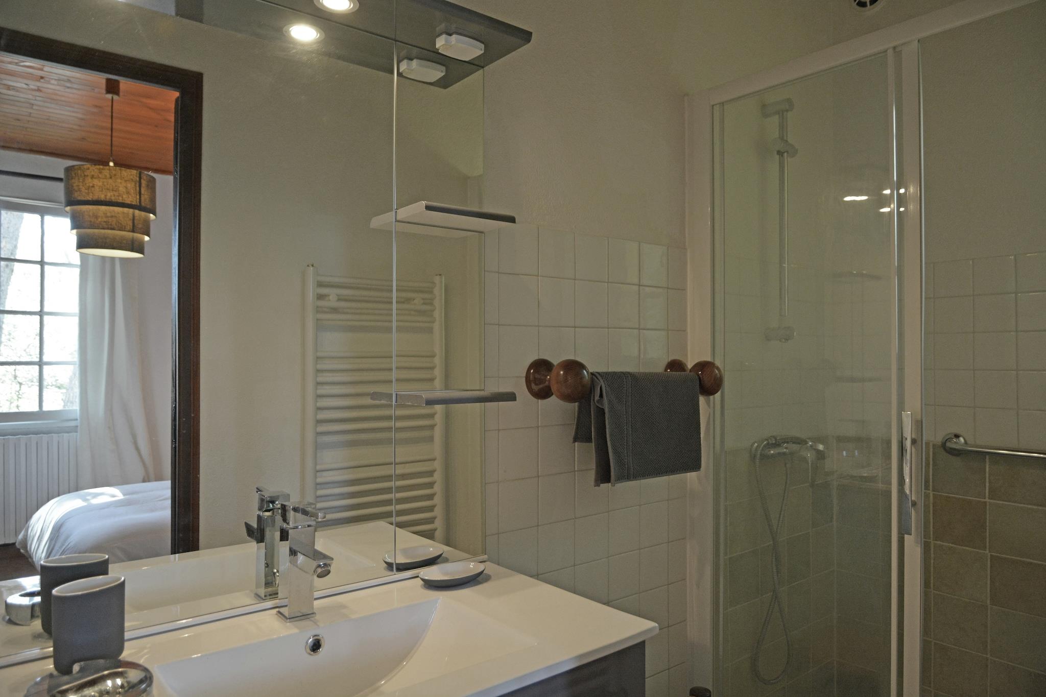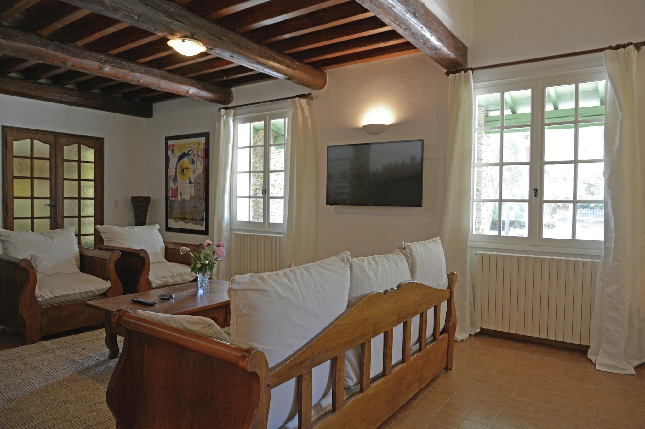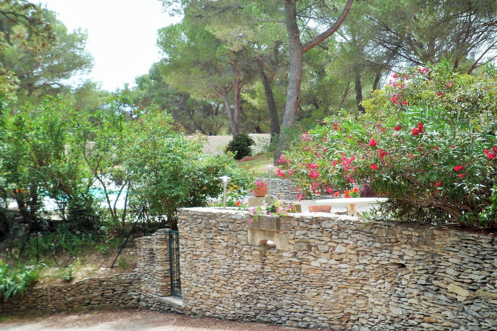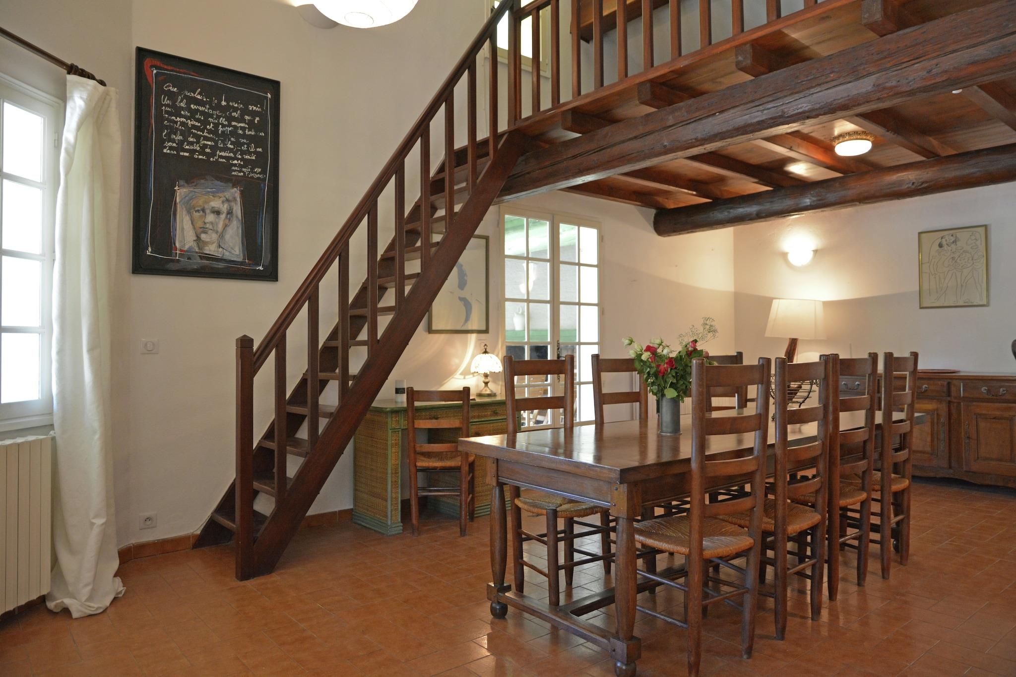 Inbäddat i ett lugnt hörn av Beaucaire erbjuder denna vackert renoverade 3-stjärniga herrgård (certifierad av Gîtes de France) en perfekt blandning av rustik charm och modern komfort. Det L-formade vardagsrummet och matsalen, prydda med synliga bjälkar och stenväggar, utstrålar värme och karaktär. En mysig öppen spis (endast för vinterbruk) och ett högt i tak ger rymlighet och atmosfär. På bottenvåningen delar två bekväma sovrum ett badrum, med separata toaletter i hallen. På övervåningen fungerar ett stort öppet rum med takfläkt (ingen AC) som en idealisk sovplats för äldre barn. Utanför kan du njuta av måltider på den täckta terrassen med angränsande öppen spis, eller koppla av på den soliga uteplatsen med teakmöbler. Den privata poolen, omgiven av solstolar, har utsikt över en frodig trädgård fylld med granar som ger skugga och lugn. Beläget bara 30 minuter från historiska städer som Nîmes, Arles, Avignon och Uzès, och bara 45 km från Camargues naturreservat, är denna herrgård en port till Provences skatter. Medelhavskusten ligger bara en timme bort, vilket gör dagsutflykter enkla och givande. En sann oas för familjer eller grupper som söker lugn och ro och äventyr. Badhanddukar är endast för badrumsbruk och bör inte användas vid poolen.
