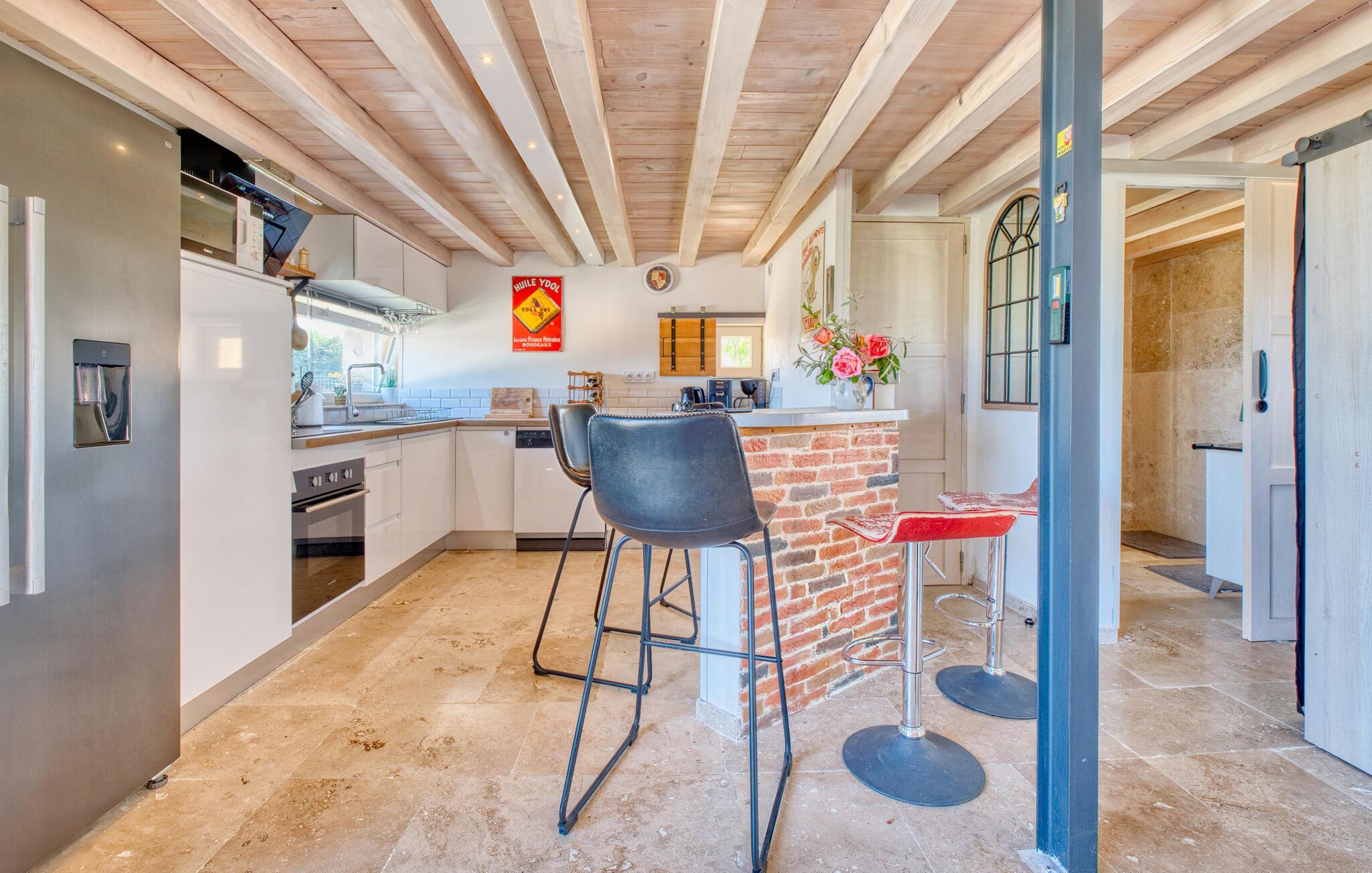 Utforska det omgivande området runt Bergerac, som är känt för sin vinkultur och charmiga gamla stad. Gör utflykter till de medeltida bastiderna som Monpazier eller besök naturen i Périgord-Limousin. Regionen är idealisk för cykelturer, kanotturer och vandringar genom varierande landskap. Närmaste flygplats och tågstation är lättillgängliga med bil, vilket gör din ankomst och avresa enkel.