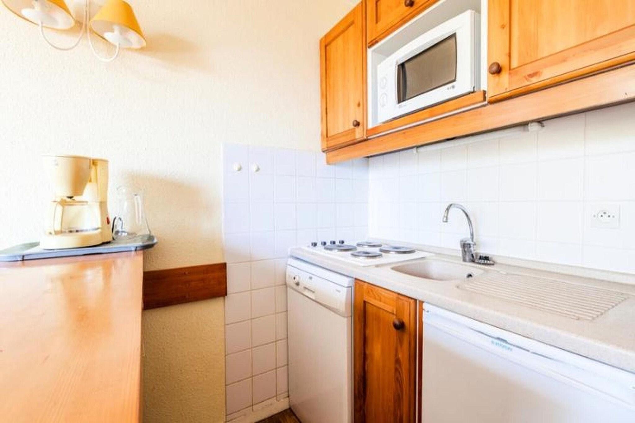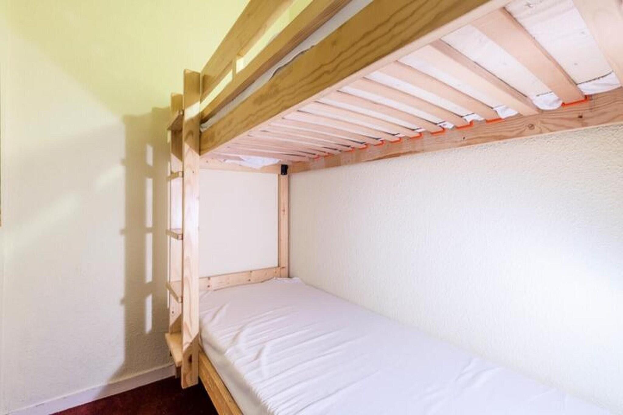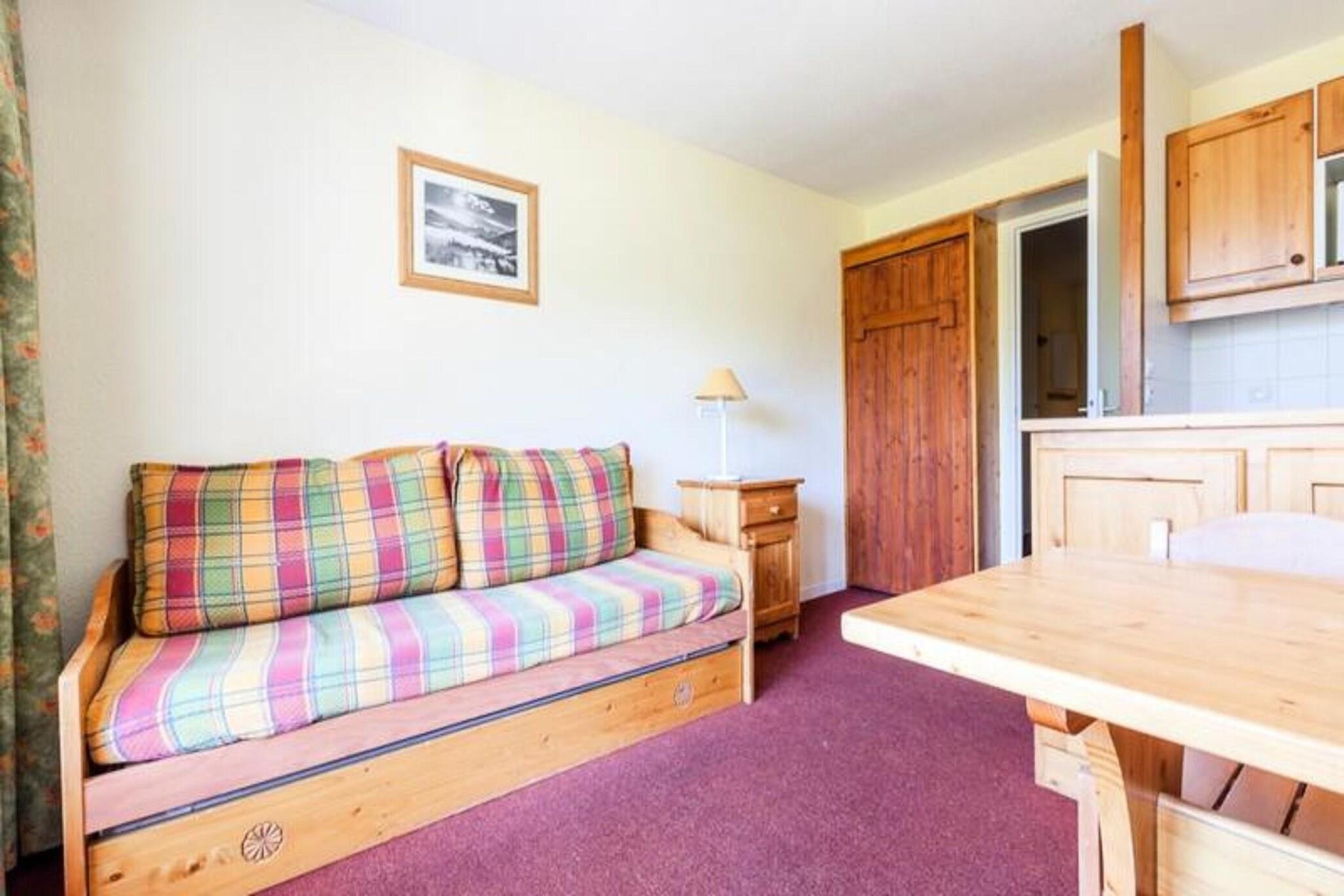 Denna mysiga lägenhet i stadsdelen Charmettoger i Arc 1800 erbjuder bekvämt boende för upp till 4 gäster. Sviten har ett vardagsrum med bäddsoffa och utdragbar säng, samt en kabindel med två våningssängar. Lägenheten är djurvänlig, vilket gör att dina lurviga följeslagare kan följa med på semestern. I utrymmet finns ett matbord i trä med 4 stolar, ett badrum med badkar och toalett samt gott om förvaring. En TV finns också för underhållning. Lägenheten ligger bara 300 meter från skidbackarna och erbjuder snabb tillgång till skid- och snowboardaktiviteter. Du hittar också butiker och restauranger 300 meter bort, vilket gör det enkelt att fylla på med nödvändigheter eller njuta av en måltid ute. Maeva Home Agency ligger cirka 15 minuters promenad bort, där du kommer att mötas av ett vänligt team. I närområdet hittar du också en säsongsöppen skidbutik och en mataffär i distriktet Les Villards. Inne i lägenheten är köket öppet mot vardagsrummet och utrustat med nödvändiga bekvämligheter för matlagning. Lägenheten har även en balkong med utsikt över den omgivande växtligheten, perfekt för avkoppling efter en dag av utomhusaktiviteter. Wi-Fi finns tillgängligt mot en extra kostnad, och slutstädning krävs. Ytterligare bekvämligheter inkluderar ett babykit och sängkläder, mot en extra kostnad.