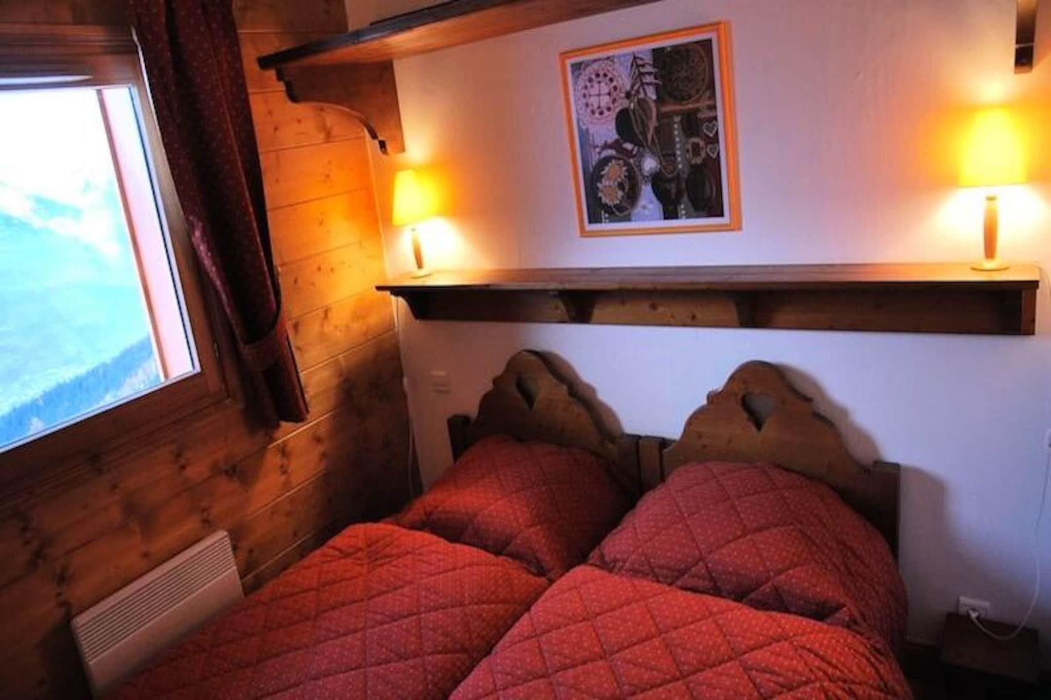 Där det majestätiska Mont Blanc pryder horisonten erbjuder denna charmiga duplexlägenhet i det fridfulla Le Chantel-området i Les Arcs 1800 en oförglömlig alpin flykt. Tänk dig att vakna upp till den friska bergsluften och kliva direkt ut på backarna med ski-in/ski-out-åtkomst, vilket gör varje ögonblick av din semester smidig och spännande. Inbäddat i en lugn miljö erbjuder residenset hisnande utsikt och en fridfull tillflyktsort bara några minuter från de livliga semesterorterna Charvet och Villards. \n\nDen rymliga 4-rumslägenheten rymmer bekvämt upp till sex gäster, med tre mysiga sovrum och en mezzanin. Vardagsrummet med öppen planlösning inbjuder till avkoppling med sina bekväma sittplatser, medan det fullt utrustade köket - komplett med diskmaskin, ugn och Nespresso-maskin - gör middagen till en fröjd. På övervåningen har sovrummet en dubbelsäng och eget badrum med dusch, medan ytterligare sovrum har enkelsängar för vilsamma nätter. Moderna bekvämligheter som Wi-Fi, TV med DVD-spelare och täckt parkering garanterar bekvämlighet och komfort under hela din vistelse.\n\nUtanför lägenheten erbjuder residenset tillgång till en pool och soldäck i den närliggande Iseran-byggnaden. Gratisbussar och Dahu-linbanan förbinder dig enkelt med skidskolor, butiker och afterski-anläggningar. På vintern kan du utforska det vidsträckta Paradiski-området med dess 425 km backar, medan sommaren avslöjar underverken i Vanoise nationalpark, perfekt för vandring och återknytning till naturen.\n\nOavsett om du söker spännande skidäventyr eller lugn alpin avkoppling, kombinerar detta residens det bästa av två världar, vilket gör det till det perfekta valet för din bergssemester.