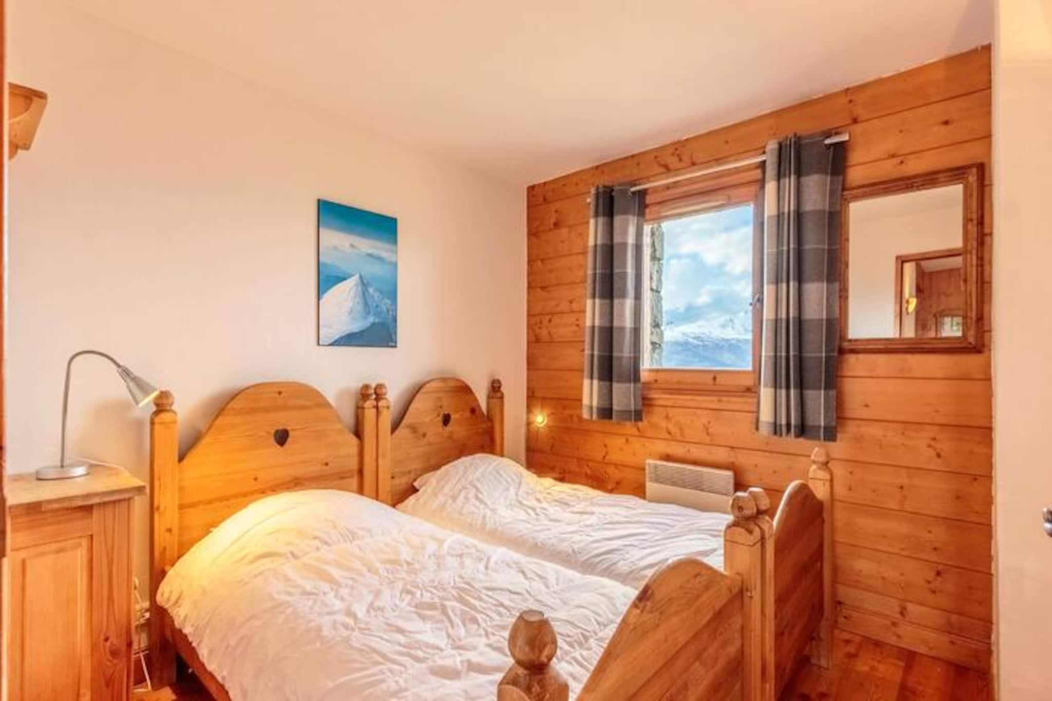 Där Alpernas fridfulla charm möter modern komfort erbjuder denna fantastiska 5-rumslägenhet i Le St Bernard-residenset en oöverträffad bergsflykt. Med hisnande utsikt över Mont Blanc i västerläge är denna fastighet en fristad för både skidentusiaster och naturälskare. Tänk dig att vakna upp till Alpernas majestätiska silhuett, gå ut på din balkong och bege dig rakt ut i backarna med direkt tillgång till skidbacken. Den lugna byn Le Chantel erbjuder en fridfull tillflyktsort bara några minuter från de livliga semesterorterna Charvet och Villards. \n\nDenna lägenhet på bottenvåningen är 75 m² stor och rymmer bekvämt upp till åtta gäster. Den noggrant utformade planlösningen inkluderar fyra sovrum, ett mysigt vardagsrum med bekväma sittmöbler och ett fullt utrustat kök med moderna apparater som diskmaskin, ugn och keramikhäll. Varje sovrum erbjuder en vilsam tillflyktsort, inklusive en dubbelsäng, två enkelsängar och våningssängar, vilket garanterar plats för familjer eller grupper. Lägenheten har också tre badrum, en separat toalett och praktiska bekvämligheter som Wi-Fi, en täckt parkeringsplats och ett skidförvaringsskåp. Handdukar, sängkläder och slutstädning ingår, vilket gör din vistelse smidig och stressfri.\n\nUtöver lägenheten finns en pool och ett solarium, perfekt för avkoppling efter en dag av äventyr. Den närliggande Dahu-linbanan och gratisbuss ger enkel tillgång till anläggningens butiker, restauranger och den berömda ESF-skidskolan. Under sommaren kan du utforska den legendariska nationalparken Vanoise, som erbjuder oändliga vandringsleder och orörd natur. Oavsett om du tar dig igenom de 425 km pisterna i Paradiski-området eller njuter av lugnet på alpina ängar, placerar denna fastighet dig i hjärtat av allt.\n\nVälj denna exceptionella lägenhet för din nästa alpina semester och skapa oförglömliga minnen i det förtrollande Les Arcs. Med sin perfekta blandning av komfort, bekvämlighet och hisnande omgivningar är det en destination du vill återvända till år efter år.