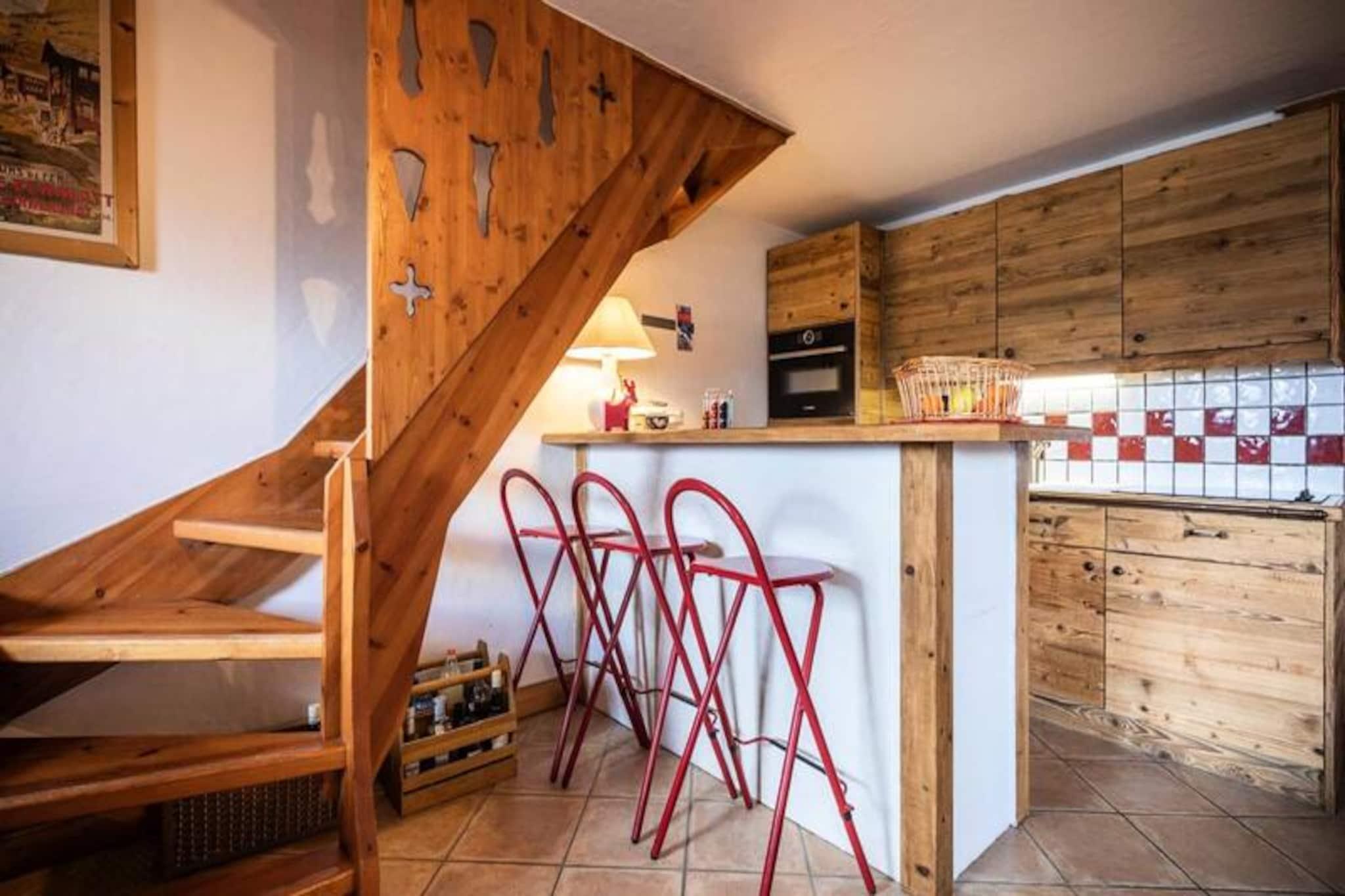 Beläget i den fridfulla byn Le Chantel, inbjuder denna rymliga duplex på 70 m² dig att uppleva magin i de franska Alperna med hisnande utsikt över Mont Blanc från sin balkong i västerläge. Residenset Le St Bernard erbjuder direkt tillgång till backarna, vilket gör det till en drömdestination för skidentusiaster. Oavsett om du söker spännande äventyr eller lugna stunder, är denna fastighet din port till en oförglömlig bergsflykt. \n\nDuplexen är designad för att rymma upp till åtta gäster och har tre bekväma sovrum fördelade på två våningar. Bottenvåningen har ett mysigt vardagsrum med soffor, fåtöljer, TV och Wi-Fi, tillsammans med ett fullt utrustat kök med moderna apparater inklusive en Nespresso-maskin och diskmaskin. På övervåningen hittar du ett lyxigt badrum, ett sovrum med eget badrum och ett charmigt våningsrum perfekt för familjer. Ytterligare bekvämligheter som täckt parkering, ett skidförvaring och inkluderade nödvändigheter som handdukar och sängkläder garanterar en problemfri vistelse. \n\nBeläget bara några minuter från Charvet/Villards-skidskolan, ESF-skidskolan och lokala butiker, kombinerar denna residens bekvämlighet med lugn. Gratis transfer mellan skidorterna och Dahu-linbanan gör det enkelt att utforska området. Efter en dag i backarna kan du varva ner i den närliggande Iseran-anläggningens relaxavdelning, komplett med inomhuspool och solarium. \n\nOavsett om du besöker Paradiskis 425 km pister eller sommarvandringar i den legendariska nationalparken Vanoise, erbjuder Les Arcs en unik blandning av naturlig skönhet och pulserande alpliv. Detta är mer än ett semesterhus – det är din port till bergens charm och äventyr.