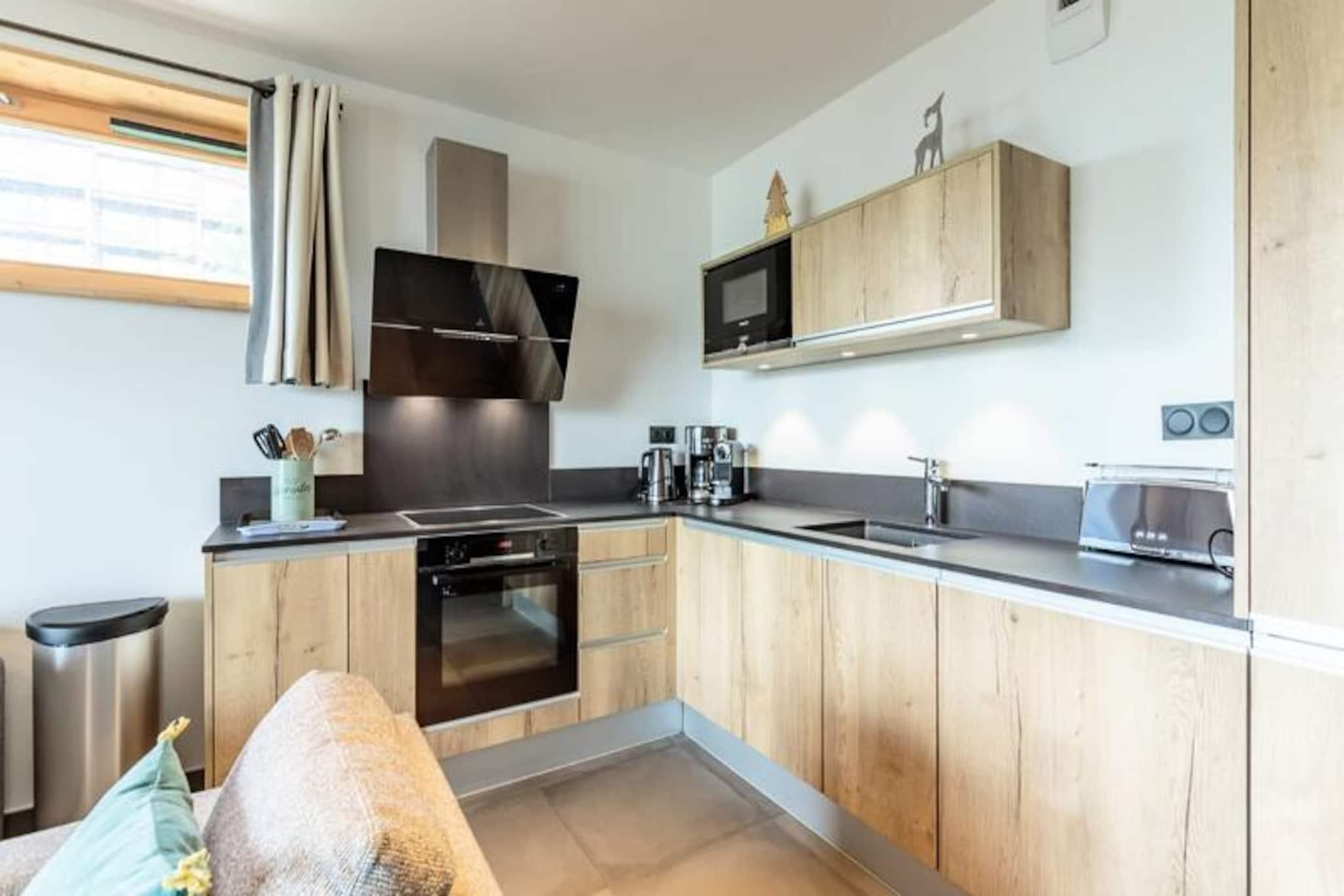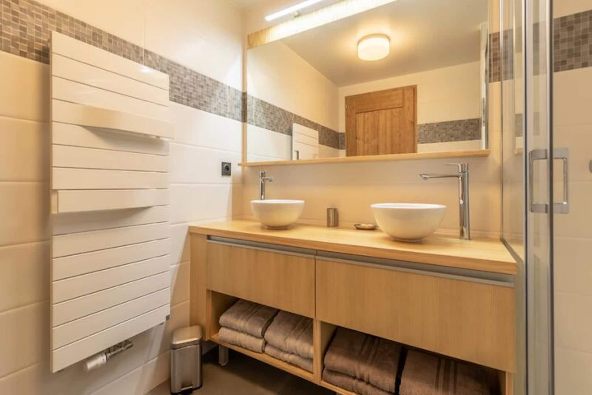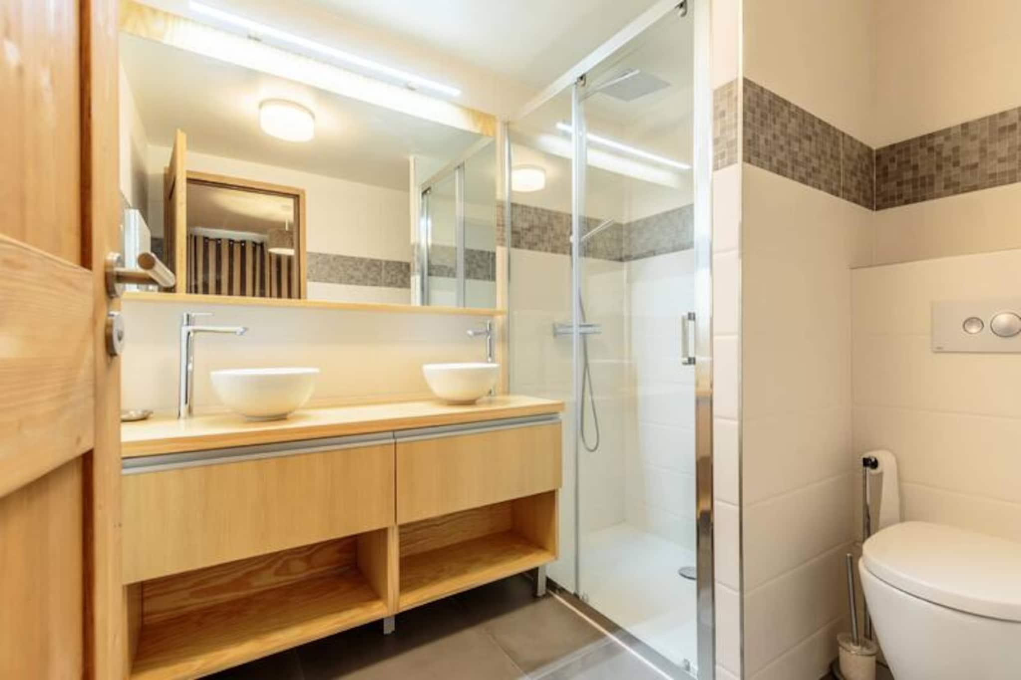 Tänk dig att vakna upp till den fridfulla skönheten i de franska Alperna, där den friska bergsluften och den hisnande utsikten över Tarentaisedalen sätter tonen för din dag. Denna lyxiga 4-rumslägenhet i premiumresidenset L'Ecrin på Les Arcs 1800 erbjuder en perfekt blandning av modern design och alpin charm. Lägenheten, som har fått 5 Paradiski-kristaller, är 80 m² stor och ljus, modern och omsorgsfullt utformad för att rymma upp till åtta gäster, vilket gör den idealisk för familjer eller grupper av vänner som söker en oförglömlig bergsresa. Terrassen i västerläge erbjuder fantastisk utsikt över solnedgången, medan residensens förstklassiga bekvämligheter garanterar din största komfort. Koppla av i wellnessavdelningen med bastu, ångbad och gym, eller njut av bekvämligheten med inkluderade tjänster som bäddade sängar, handdukar och slutstädning. Vardagsrummet med öppen planlösning, det fullt utrustade köket och de mysiga sovrummen skapar en varm och inbjudande atmosfär för din vistelse. Lägenheten ligger i det livliga Villards-distriktet, bara 2 minuters promenad från skidbackar, skidskolor och sommaraktiviteter som vandring, mountainbike och paragliding. Oavsett om du ger dig ut i backarna på vintern eller utforskar de frodiga lederna i nationalparken Vanoise på sommaren, placerar detta boende dig mitt i all aktivitet. Med närliggande butiker, restauranger och nöjesalternativ är varje ögonblick här fyllt av äventyr och avkoppling. Välj denna exceptionella tillflyktsort för en verkligt minnesvärd alpin semester.