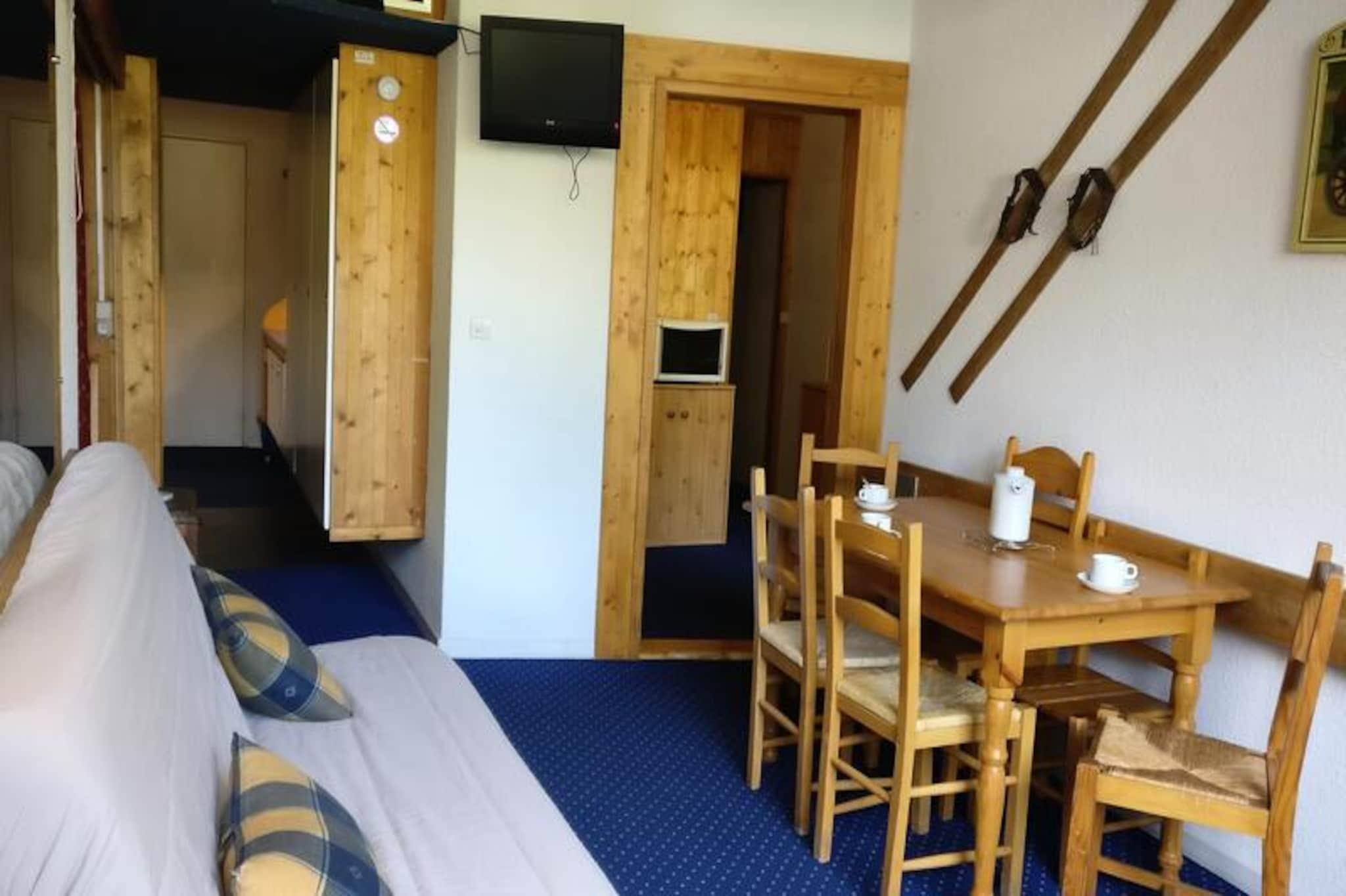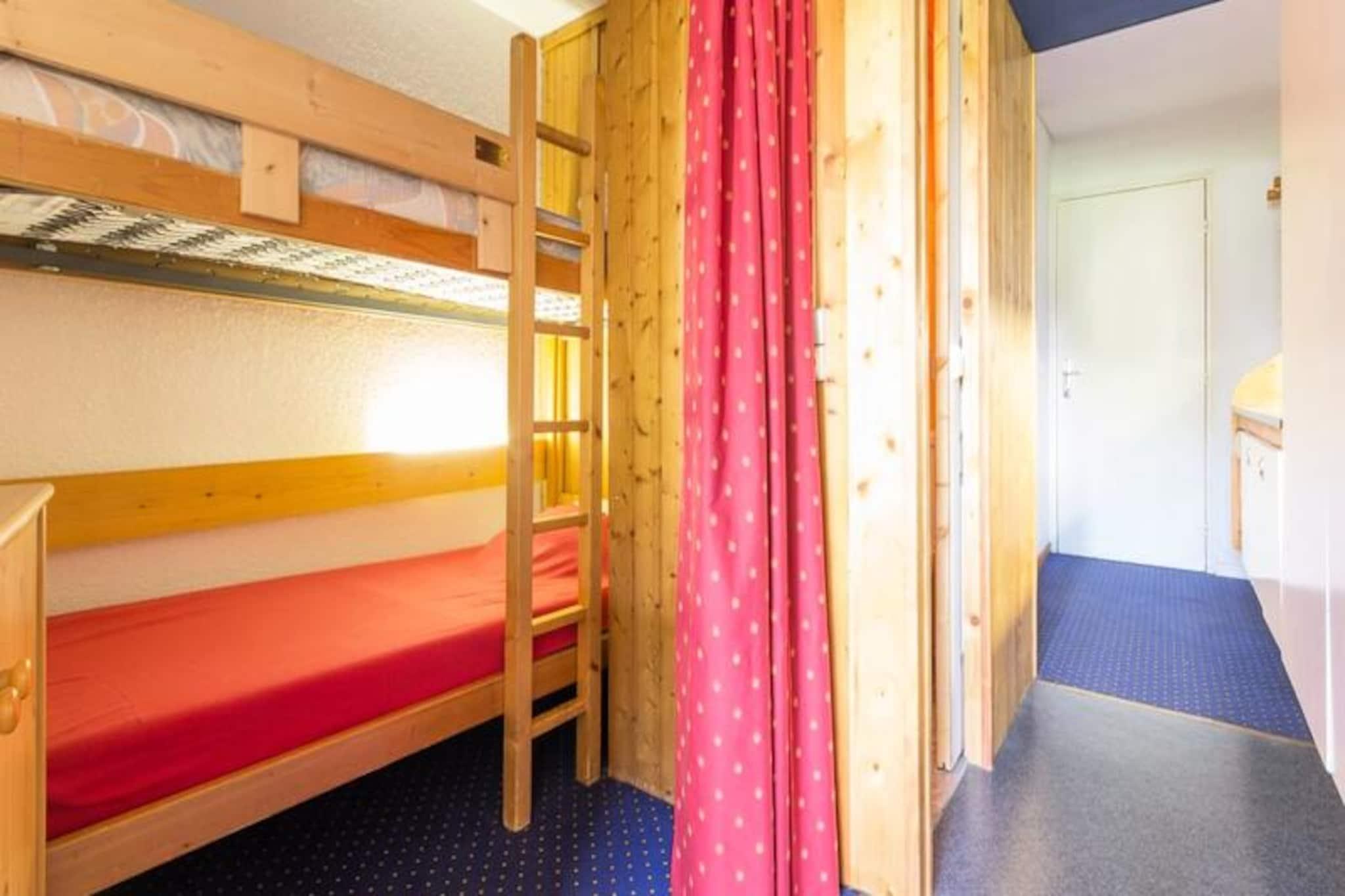 Högt ovanför det livliga köpcentret Charvet erbjuder denna charmiga alpina lägenhet en lugn tillflyktsort med hisnande utsikt över Mont Blanc och de omgivande grankantade sluttningarna. Beläget i hjärtat av Miravidi-residenset, är denna 3-rumslägenhet på 5:e våningen perfekt lämpad för familjer eller grupper på upp till sju gäster som söker en blandning av komfort och bekvämlighet i den pittoreska Charvet-sektorn i Les Arcs 1800. Oavsett om du planerar ett vinterskidaventyr eller en sommarfjälltur, placerar denna residens dig i centrum av allt. \n\nInuti är lägenheten omsorgsfullt utformad för att tillgodose alla dina behov. Vardagsrummet har två mysiga bäddsoffor och en TV, vilket skapar ett välkomnande utrymme att varva ner efter en dags utforskande. Det stora sovrummet, med sina två enkelsängar och privat balkong, inbjuder dig att vakna upp till den friska alpina luften. Ett stugrum med en dubbelsäng och en närliggande duschkabin ger en extra touch av avskildhet, medan två mysiga sovalkover erbjuder ytterligare boendealternativ. Det fullt utrustade köket, komplett med keramikhäll, miniugn, mikrovågsugn, kylskåp, diskmaskin och till och med tvättmaskin, säkerställer att hemlagade måltider alltid är ett alternativ. Ett badrum och en separat toalett kompletterar planlösningen och erbjuder allt du behöver för en bekväm vistelse.\n\nStig ut på den nordostvända balkongen för att njuta av den lugna utsikten över bergen och Mont Blanc, eller njut av alternativet i söderläge med utsikt över de livliga backarna. Med gratis Wi-Fi, täckt parkering i närheten och miljövänliga linnealternativ kombinerar residenset moderna bekvämligheter med hållbara detaljer. Busshållplatsen mellan orterna är bekvämt belägen vid Charvet, vilket garanterar enkel tillgång till allt som Les Arcs har att erbjuda.\n\nOavsett om du dras till spänningen i backarna, charmen i de lokala butikerna eller lugnet i det alpina landskapet, är denna lägenhet din port till oförglömliga minnen i de franska Alperna. Boka din vistelse idag och upplev magin i Les Arcs 1800.