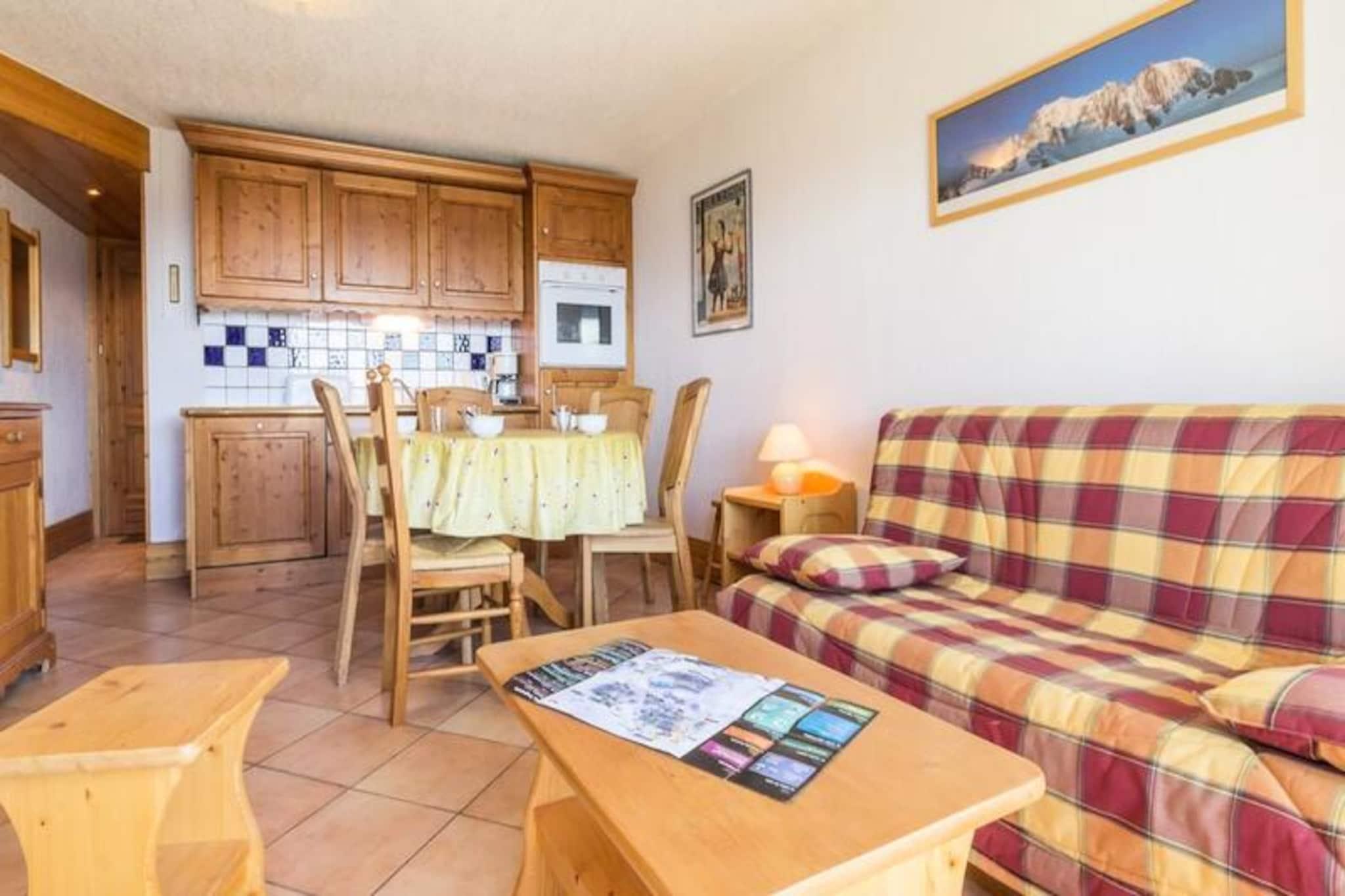 Högt ovanför Tarentaisedalen, där den friska alpina luften väcker dina sinnen, erbjuder denna charmiga lägenhet i chaletstil en mysig tillflyktsort för dig som söker den ultimata ski-in, ski-out-upplevelsen. Belägen i det prestigefyllda Le Chalet du Chantel 1-residenset, erbjuder dess västvända balkong fantastisk utsikt över de omgivande snötäckta topparna, vilket gör det till den perfekta tillflyktsorten för en bergssemester. Bara 50 meter från linbanan befinner du dig sömlöst ansluten till det pulserande hjärtat av orten och dess myriad av aktiviteter. Inuti är den 45 m² stora lägenheten noggrant utformad för att rymma upp till fyra gäster. Vardagsrummet, med en bekväm 140 cm bäddsoffa och en TV, inbjuder dig att koppla av efter en dag i backarna. Köket med öppen planlösning är fullt utrustat med moderna apparater, inklusive keramikhäll, ugn, mikrovågsugn och diskmaskin, vilket säkerställer att du har allt som behövs för att laga rejäla måltider. Två inbjudande sovrum ger vilsamma nätter: ett med en 140 cm dubbelsäng och ett annat med 90 cm våningssängar, perfekt för familjer eller små grupper. Ett separat badrum och toalett gör din vistelse ännu bekvämare. Residenset har skidförvaring och enkel tillgång till backarna, medan den närliggande Dahu-linbanan enkelt förbinder dig med det bredare semesterområdet. För de som anländer med bil finns täckt parkering i den närliggande byn Charvet. Oavsett om du är här för att åka i färskt pudersnö eller utforska de natursköna vandringslederna på sommaren, placerar denna lägenhet dig i hjärtat av allt. Med miljövänliga sängkläder och ett engagemang för hållbarhet lovar denna mysiga tillflyktsort en minnesvärd och ansvarsfull alpin flykt. Omfamna charmen i de franska Alperna och skapa oförglömliga minnen i denna idylliska bergsmiljö.