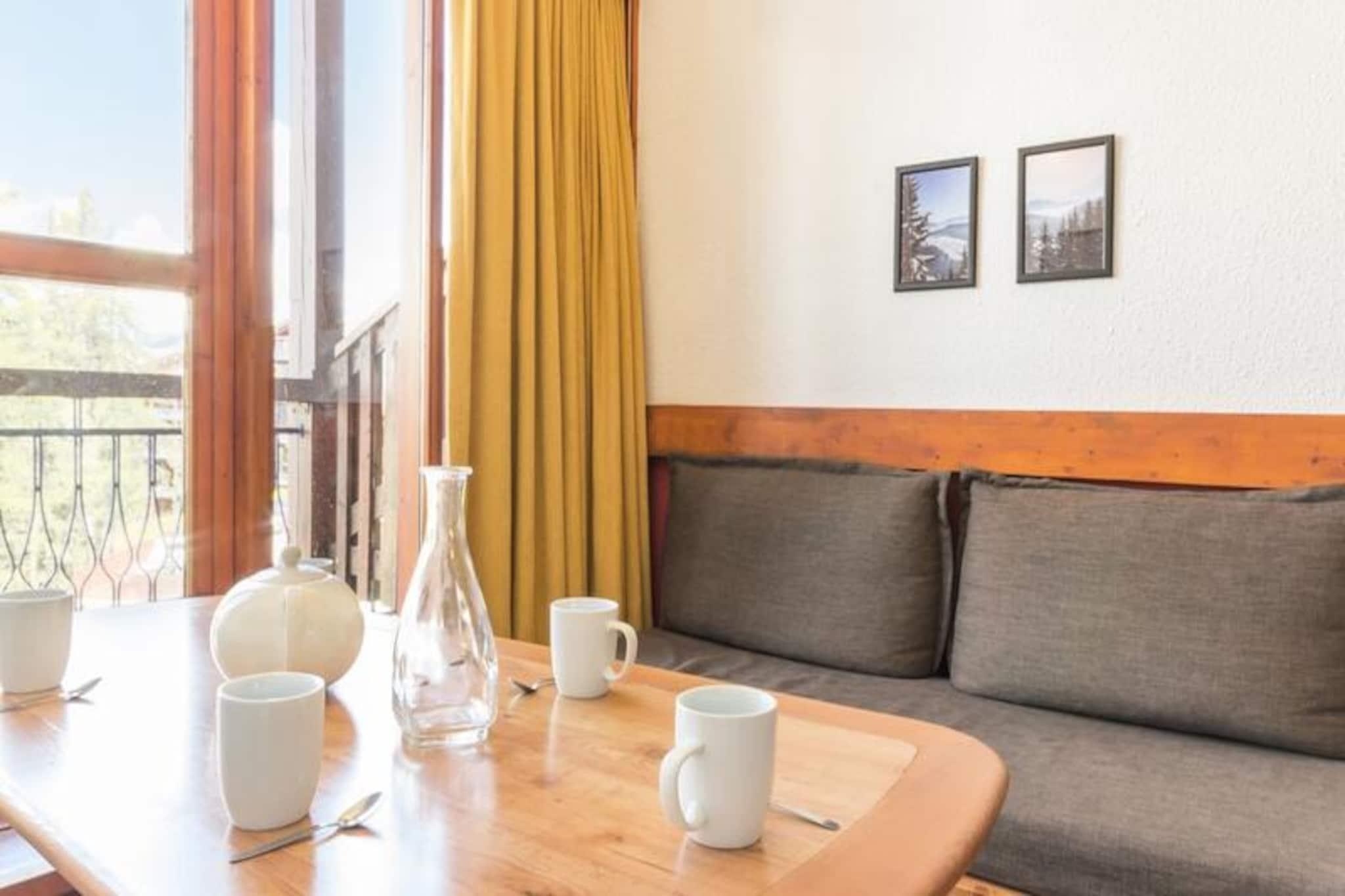 I det fridfulla Charmettoger-området i Les Arcs erbjuder denna mysiga duplexlägenhet en lugn alpin tillflyktsort med direkt tillgång till ski-in/ski-out från Aiguille Grive 2. Undantaget från den livliga byn inbjuder denna fridfulla oas dig att varva ner mitt i hisnande bergslandskap samtidigt som den är perfekt placerad för spännande äventyr i backarna. Den nordvästvända balkongen erbjuder en fantastisk, fri utsikt, perfekt för att njuta av den friska bergsluften och pittoreska solnedgångar. Lägenheten på 30 m² är designad för att rymma upp till fem gäster och har en genomtänkt planlösning. Entréhallen leder till ett fullt utrustat pentry med moderna apparater, inklusive keramikhäll, kombinerad ugn/mikrovågsugn, kylskåp och diskmaskin, vilket gör det enkelt att laga rejäla måltider efter en dags skidåkning. Vardagsrummet, med matbord, enkelsäng och platt-TV, erbjuder en mysig plats att koppla av. På övervåningen finns entresolvåningen med våningssängar, medan det halvt inhägnade sovrummet med utsikt över vardagsrummet har en bekväm dubbelsäng. Ett badrum med toalett kompletterar bekvämligheterna för en bekväm och bekväm vistelse. Residenset har goda förbindelser, med bussen mellan orterna som stannar vid Charmettoger, vilket garanterar enkel åtkomst till närliggande sevärdheter. Även om området i sig är fritt från butiker, finns det en livsmedelsbutik i residenset som tillgodoser dina nödvändigheter. Täckt parkering vid Charmettoger och ytterligare parkeringsmöjligheter i närheten bidrar till bekvämligheten. På vintern förvandlas regionen till ett skidparadis, medan sommaren ger möjligheter till vandring och utforskande av de frodiga alpina landskapen. Oavsett om du söker äventyr eller avkoppling är denna lägenhet din port till en oförglömlig bergsresa.