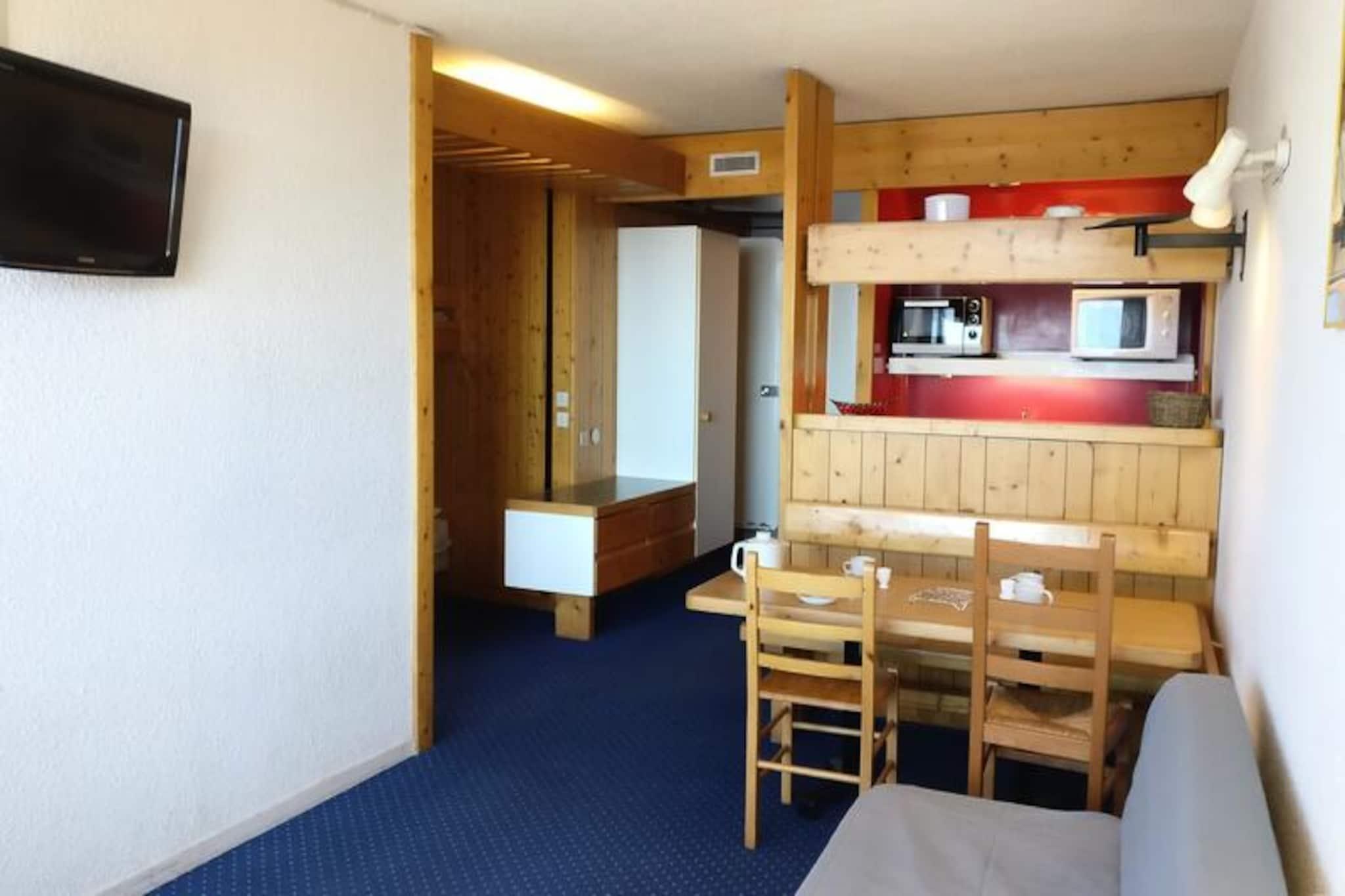 I hjärtat av den livliga byn Villards erbjuder denna charmiga lägenhet en mysig alpin tillflyktsort med ski-in/ski-out-bekvämlighet. Tänk dig att vakna upp till de gyllene nyanserna på en balkong i sydvästläge, där dalen sträcker sig framför dig, och löftet om spännande snöäventyr väntar bara några steg från din dörr. Oavsett om du är här för att karva dig genom orörda sluttningar eller njuta av lugnet i det granbeklädda landskapet, erbjuder denna bostad en oförglömlig bergsupplevelse. \n\nLägenheten, som ligger på andra våningen i Nova 4-bostaden, är omsorgsfullt utformad för att rymma upp till sex gäster. Dess planlösning inkluderar ett bekvämt vardagsrum med två bäddsoffor, ett sovrum med enkelsängar och en sovalkov med våningssängar. Det öppna köket är utrustat med moderna bekvämligheter som miniugn, mikrovågsugn, kylskåp och diskmaskin, vilket gör det enkelt att laga rejäla måltider efter en dag av alpin utforskning. Med gratis Wi-Fi, TV och miljövänliga sängkläder har varje detalj noggrant beaktats för att garantera en avkopplande vistelse. \n\nStig ut och du kommer att befinna dig nedsänkt i Villards livliga atmosfär. Det närliggande köpcentret, busshållplatser mellan orterna och täckta parkeringsmöjligheter gör det enkelt att navigera i området. På vintern är de snötäckta backarna din lekplats, medan sommaren förvandlar regionen till en oas för vandring, cykling och hisnande solnedgångar. \n\nOavsett om du söker äventyr eller lugn, är den här lägenheten din port till det bästa av de franska Alperna. Låt de majestätiska landskapen och den varma alpina charmen skapa minnen som du kommer att värdesätta för alltid.