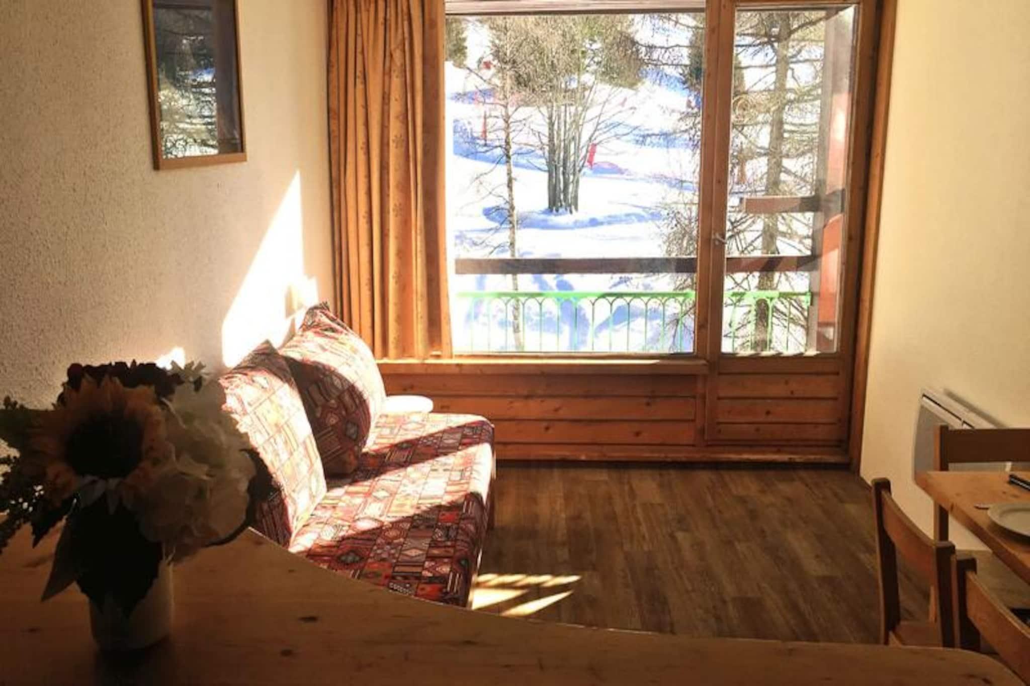 Högt ovanför det livliga köpcentret Charvet inbjuder denna mysiga studiolägenhet dig att uppleva magin i de franska Alperna med bekvämligheter som ski-in/ski-out. Tänk dig att vakna upp till de soliga backarna eller den majestätiska silhuetten av Mont Blanc som syns från din balkong, och kliva direkt in i en dag av alpint äventyr. Oavsett om du är här för spännande nedfarter eller lugna bergsutsikter, erbjuder denna bostad ett oslagbart läge i hjärtat av Les Arcs 1800. Den närliggande transferhållplatsen mellan orterna garanterar smidig tillgång till det bredare Paradiski-området, vilket gör det idealiskt för att utforska varje hörn av detta berömda skidområde. \n\nStudioen på 28 m² är designad för upp till fem gäster och är omsorgsfullt arrangerad för att maximera komfort och funktionalitet. Entréhallen har våningssängar och en utdragssäng, medan vardagsrummet erbjuder en bäddsoffa och ytterligare en utdragssäng som kan omvandlas till en dubbelsäng. Pentryt är fullt utrustat med moderna apparater, inklusive en kombinerad ugn, diskmaskin, Nespressomaskin och till och med ett racletteset för autentisk alpin mat. Heltäckningsmatta ger utrymmet en varm känsla och badrummet har en hårtork för extra bekvämlighet. Miljövänliga sängkläder och städtjänster finns tillgängliga, vilket garanterar en hållbar vistelse. \n\nStig ut så hittar du allt du behöver inom räckhåll. Från ESF Skimômes miniklubb vid foten av residenset till täckta och utomhusparkeringsmöjligheter i närheten, är bekvämligheterna skräddarsydda för en stressfri semester. På vintern ligger backarna bara några steg bort, medan sommaren förvandlar området till en fristad för vandring och mountainbike. Med Mont Blanc som bakgrund känns varje ögonblick extraordinärt. \n\nOavsett om du söker äventyr eller avkoppling är denna studio din port till oförglömliga alpina minnen. Perfekt beläget och omsorgsfullt utrustad, är det en plats där bergens charm möter modern komfort.