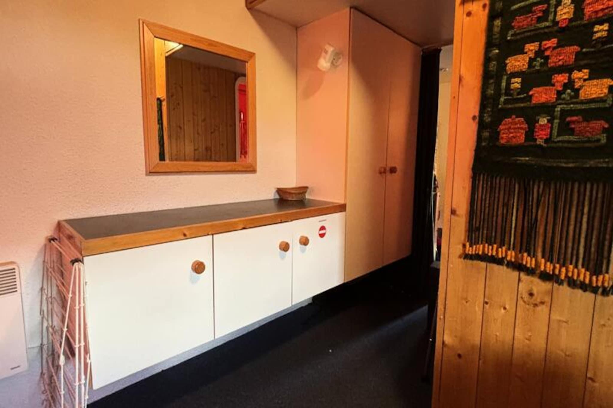 Högt ovanför Tarentaisedalen, där den friska alpina luften väcker sinnena, erbjuder denna charmiga tvårumslägenhet en lugn tillflyktsort med hisnande utsikt över Mont Blanc och de omgivande topparna. Belägen på 5:e våningen i Pierra Menta-residenset, kombinerar den naturens lugn med bekvämligheten av att vara bara några steg från det livliga köpcentret Charvet och direkt tillgång till backarna. Oavsett om du är här för skidåkning eller sommaräventyr, placerar detta residens dig i hjärtat av de franska Alpernas skönhet och spänning. Inuti är den 45 m² stora lägenheten noggrant utformad för att rymma upp till sex gäster. Vardagsrummet har två bekväma bäddsoffor och en TV, vilket skapar ett mysigt utrymme att varva ner efter en dags utforskande. Ett separat sovrum med en dubbelsäng och en sovalkov med våningssängar säkerställer vilsamma nätter för alla. Köket med öppen planlösning är fullt utrustat med moderna apparater, inklusive en kombinerad ugn, stort kylskåp, diskmaskin och mer, vilket gör matlagningen till en barnlek. Balkongen i sydvästläge inbjuder dig att njuta av solnedgången över dalen, medan den nordöstra orienteringen erbjuder fantastisk utsikt över Mont Blanc. Residenset erbjuder gratis Wi-Fi, hiss och närliggande parkeringsmöjligheter, både täckta och utan tak. Med backarna bara en kort promenad bort och en hållplats för transfer mellan orterna bekvämt belägen vid Charvet, finns allt du behöver inom räckhåll. På vintern kan du njuta av skidåkning i världsklass, och på sommaren kan du utforska vandringsleder, mountainbike och den pulserande alpina kulturen. Denna miljövänliga anläggning, med valfria sängkläder och städtjänster, lovar en bekväm och minnesvärd vistelse. Oavsett om du dras av spänningen i backarna eller lockelsen i Mont Blancs majestät, är denna lägenhet din perfekta alpina tillflyktsort.