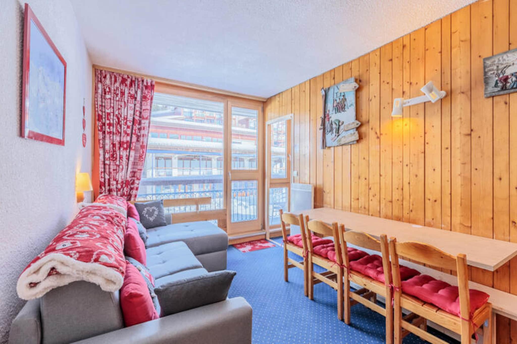 Högt ovanför de livliga gatorna i Village des Villards erbjuder denna charmiga alpina lägenhet en fridfull tillflyktsort med hisnande utsikt över de omgivande topparna. Belägen i det lugna residenset Arandelières är denna 33 m² stora oas perfekt för resenärer som söker både lugn och bekvämlighet. Oavsett om du blickar ut från den nordostvända balkongen eller njuter av den mysiga interiören, erbjuder denna fastighet den perfekta miljön för en minnesvärd bergssemester. \n\nLägenheten är utformad för att rymma upp till fem gäster och har en noggrant utformad planlösning. Vardagsrummet inbjuder till avkoppling med sin bekväma bäddsoffa och platt-TV, medan pentryt är utrustat med allt du behöver för att laga rejäla måltider, inklusive raclette, fondue och stengrill. Sovrummet har två våningssängar, och alkoven erbjuder en flexibel sovplats med två enkelsängar som kan sättas ihop till en rymlig dubbelsäng. En separat toalett och ett badrum med badkar kompletterar bekvämligheterna och garanterar komfort under hela din vistelse. \n\nStig ut och upptäck bekvämligheten med Villards täckta parkering och närliggande utomhusmöjligheter, samt gratis parkering längs vägen under de varmare månaderna. Residenset ligger precis nedanför köpcentret och erbjuder enkel tillgång till lokala butiker, restauranger och nöjen. För dig som utforskar området ligger busshållplatsen mellan stationerna vid Villards tågstation bara en kort promenad bort, vilket gör det enkelt att navigera i den pittoreska Tarentaisedalen. \n\nOavsett om du dras till backarna på vintern eller vandringslederna på sommaren, är denna lägenhet din port till de franska Alpernas skönhet och äventyr. Med miljövänliga sängkläder och valfri slutstädning är varje detalj utformad för att förbättra din upplevelse. Omfamna charmen med det alpina livet och skapa oförglömliga minnen i denna förtjusande bergsresort.