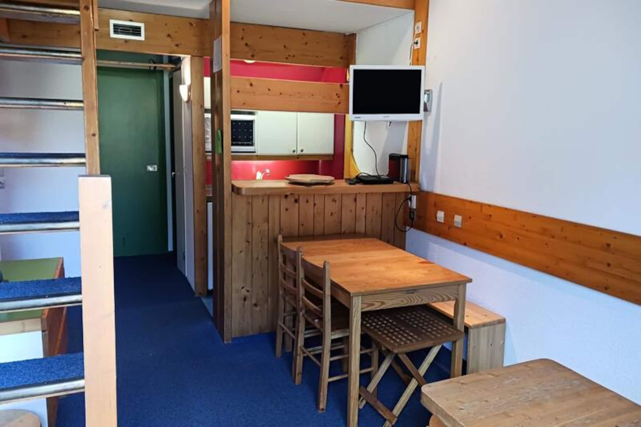 I hjärtat av den pulserande byn Villards i Les Arcs 1800 erbjuder denna charmiga alplägenhet en plats på första parkett i backarna, vilket gör den till en drömdestination för skidentusiaster. Med Vagère-liften bara 30 meter bort och Transarc-linbanan bara 20 meter från din dörr, glider du upp på de orörda Paradiski-backarna på nolltid. Tänk dig att gå ut på din balkong i österläge varje morgon och njuta av den hisnande utsikten över de snötäckta backarna medan den friska bergsluften fyller dina lungor. Oavsett om du är här för vintersport eller sommaräventyr, lovar detta läge oförglömliga stunder i de franska Alperna. Lägenheten, som ligger på tredje våningen i Tournavelles 2-residensen, är noggrant utformad för att rymma upp till sju gäster. Dess 52 m² stora planlösning inkluderar ett mysigt vardagsrum med en utdragbar bäddsoffa, ett sovrum med tre våningssängar och en mezzanin med extra sovplats. Köket med öppen planlösning är fullt utrustat med moderna apparater, inklusive en kombinerad ugn, spishäll, kylskåp och kaffebryggare, vilket säkerställer att du har allt som behövs för att laga rejäla måltider efter en dag med aktiviteter. Ett badrum med badkar och separat toalett ökar bekvämligheten, medan bekvämligheter som Wi-Fi, TV och tvättmaskin ger alla bekvämligheter i ett hem. Allt du behöver finns inom räckhåll. ESF-skidskolan ligger bara 30 meter bort, och en närbutik ligger vid foten av bostaden. För de som anländer med bil finns täckt parkering i närheten, och en gratis transferservice går regelbundet och förbinder dig med andra delar av orten. På sommaren förvandlas området till en fristad för vandrare och mountainbikecyklister, med stigar som leder till fantastiska alpina vyer. Efter en dag av utforskning kan du varva ner på en av de närliggande restaurangerna eller njuta av den livliga atmosfären i Villards köpcentrum, komplett med barer och en nattklubb. Oavsett om du söker spännande skidbackar, natursköna vandringar eller bara en mysig tillflyktsort i bergen, är denna lägenhet i Tournavelles 2-residenset den perfekta basen för din alpina flykt. Skapa bestående minnen omgivna av skönheten i Les Arcs 1800, där varje årstid har sin egen unika charm.