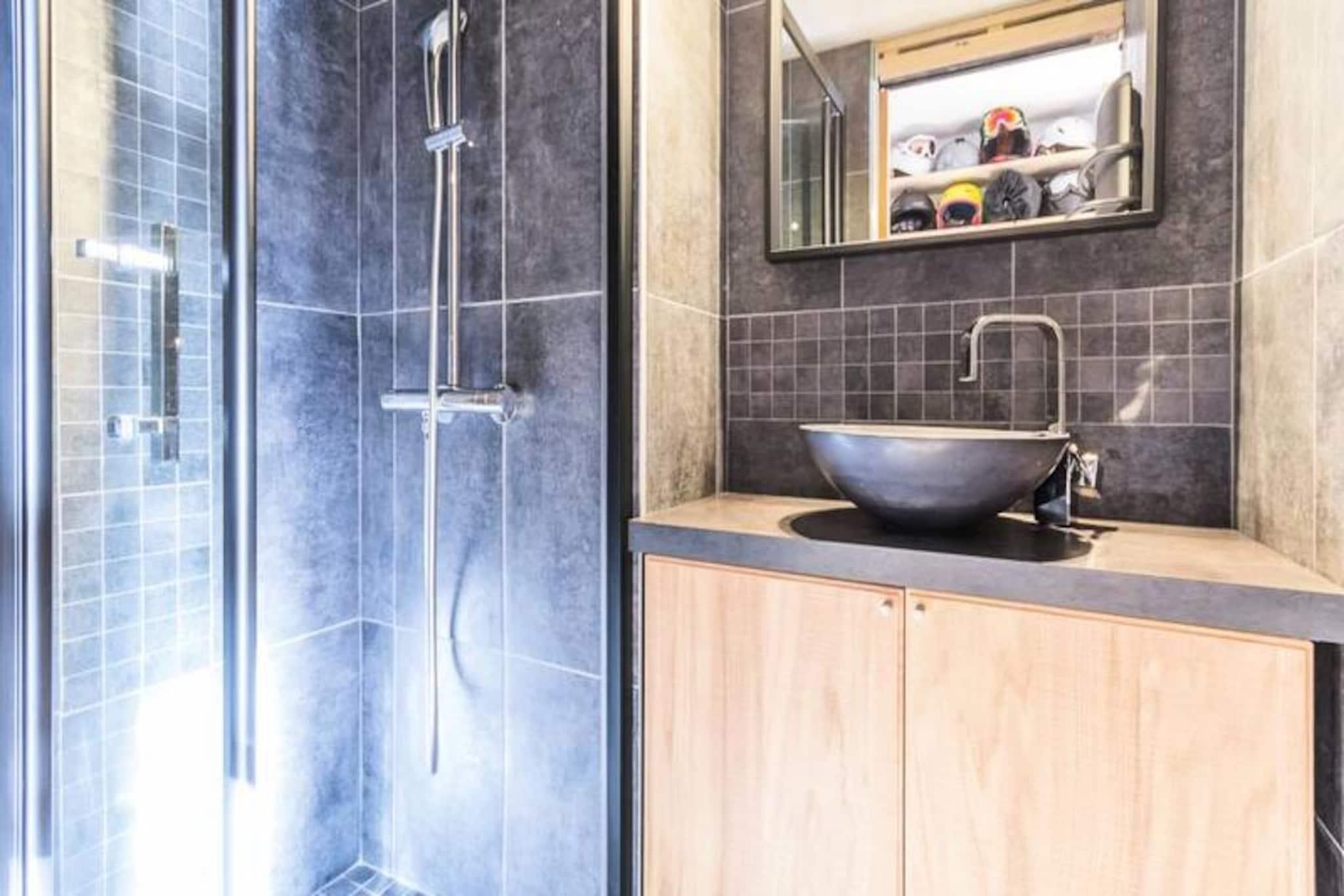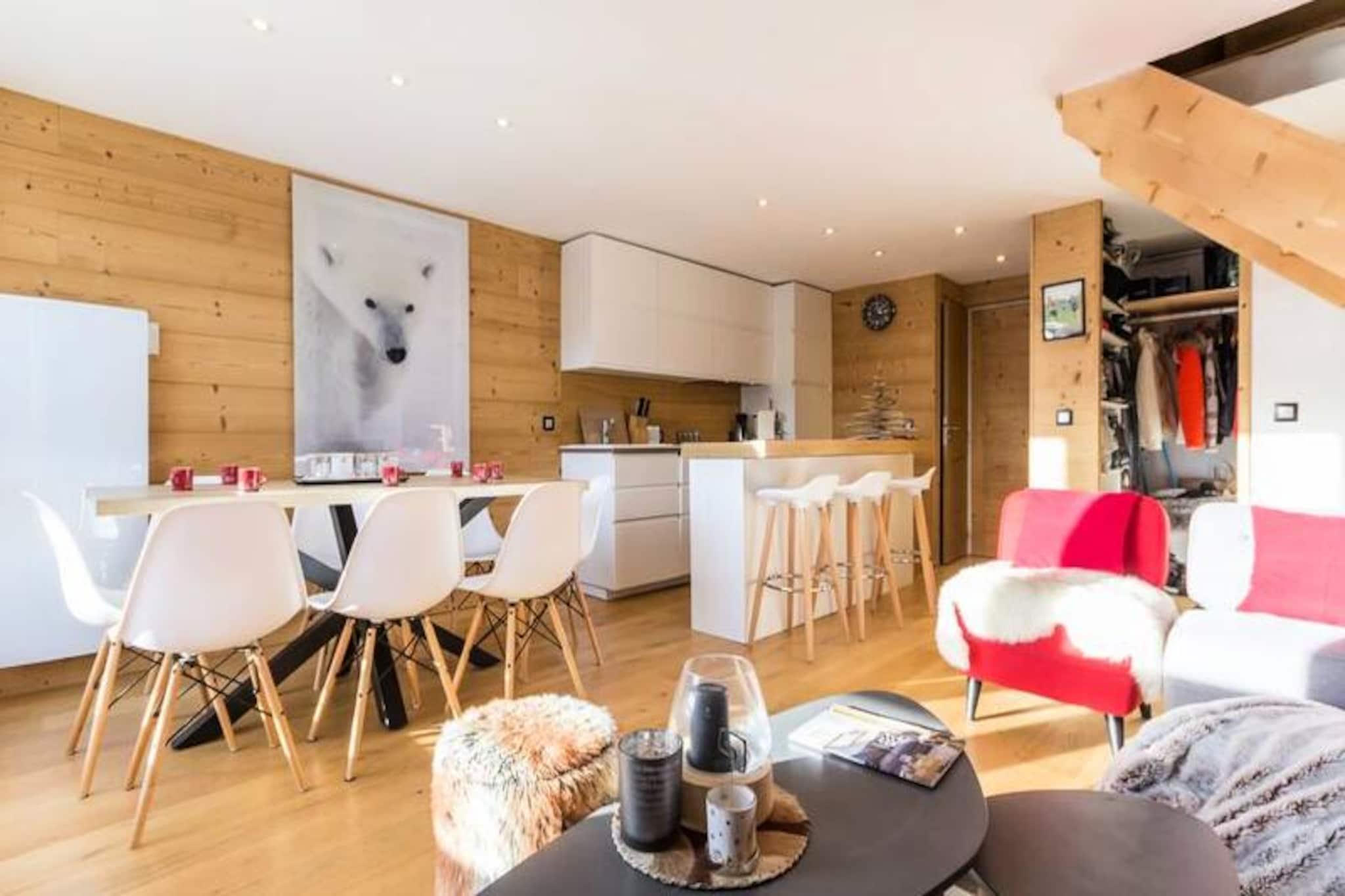 Högt ovanför Tarentaisedalen erbjuder denna eleganta duplexlägenhet en lugn tillflyktsort i hjärtat av Villards Village i Les Arcs 1800. Med sitt utmärkta läge nära Transarc skidlift och skidortens centrum kombinerar denna fastighet charmen av ett alpint liv med bekvämligheten av moderna bekvämligheter. Från den sydvästvända balkongen kan du njuta av panoramautsikten över dalen medan solen går ner bakom topparna, vilket skapar den perfekta bakgrunden för din bergssemester. Lägenheten, som sträcker sig över två våningar, rymmer bekvämt upp till åtta gäster. Bottenvåningen har ett ljust och rymligt vardagsrum med mjuka soffor, ett matbord för hela familjen och en platt-TV. Köket med öppen planlösning är fullt utrustat med moderna apparater, inklusive diskmaskin, keramikhäll och mikrovågsugn, vilket gör det enkelt att laga rejäla måltider efter en dag i backarna. Ett duschrum och en separat toalett kompletterar nedre våningen. På övervåningen finns sovplatsen med tre mysiga sovrum, en sovalkov med två enkelsängar och en TV samt ett badrum med toalett. Den genomtänkta planlösningen garanterar både avskildhet och komfort för familjer eller grupper av vänner. Residenset erbjuder praktiska bekvämligheter som skidförvaring, gratis Wi-Fi och täckt parkering. Lägenheten ligger på översta våningen i Thuria-residenset och har ett lugnt läge samtidigt som den ligger nära butiker, restauranger och hållplatsen för buss mellan orterna. På vintern lockar de närliggande backarna i Paradiski-området, medan sommaren inbjuder dig att utforska vandringsleder, mountainbikeleder och Alpernas naturliga skönhet. Oavsett om du är här för en adrenalinfylld skidsemester eller en lugn sommarflykt, erbjuder denna lägenhet den perfekta basen för oförglömliga alpina äventyr.