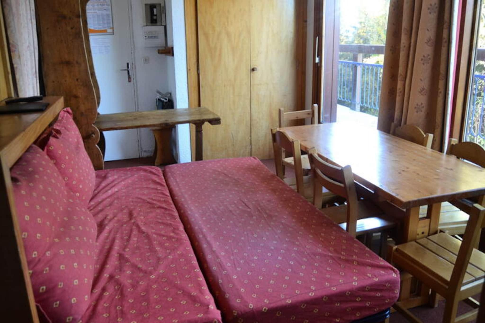 I hjärtat av den charmiga byn Charvet i Les Arcs 1800 erbjuder denna förtjusande lägenhet en perfekt alpin tillflyktsort för familjer och grupper. Med backarna bara tre minuters promenad bort har du smidig tillgång till Vagère-liften och Transarc-linbanan, som förbinder dig med det vidsträckta skidområdet Paradiski. Från din balkong i nordostläge kan du njuta av den fridfulla utsikten över bergen och den friska alpina luften, vilket sätter tonen för en minnesvärd semester i de franska Alperna. Miravidi-residenset är idealiskt beläget, med barer, restauranger och butiker bekvämt belägna ovanför byggnaden, tillgängliga via hiss, vilket säkerställer att allt du behöver finns nära till hands. Inuti rymmer den 45 m² stora lägenheten bekvämt upp till sju gäster. Vardagsrummet har mysiga utdragssängar, medan det första sovrummet har en dubbelsäng och det andra sovrummet är utrustat med tre våningssängar, perfekt för familjer. Köket med öppen planlösning är fullt utrustat med moderna apparater, inklusive elektrisk spishäll, ugn, mikrovågsugn, diskmaskin och kaffebryggare, vilket gör det enkelt att laga mat efter en dag av äventyr. Koppla av i vardagsrummet med TV och Wi-Fi, eller varva ner i badrummet med ett avkopplande badkar. Bortom bostaden väntar den pulserande byatmosfären. ESF:s skidskola ligger bara fem minuters promenad bort, och turistbyrån och sjukhuset ligger bara några steg bort. Gratisbussar går året runt, vilket gör det enkelt att utforska området. På sommaren förvandlas regionen till en fristad för vandrare och mountainbikecyklister, med stigar som slingrar sig genom hisnande landskap. Oavsett om du är här för att åka skidor, vandra eller bara njuta av den alpina charmen, erbjuder denna lägenhet den perfekta basen för dina äventyr.