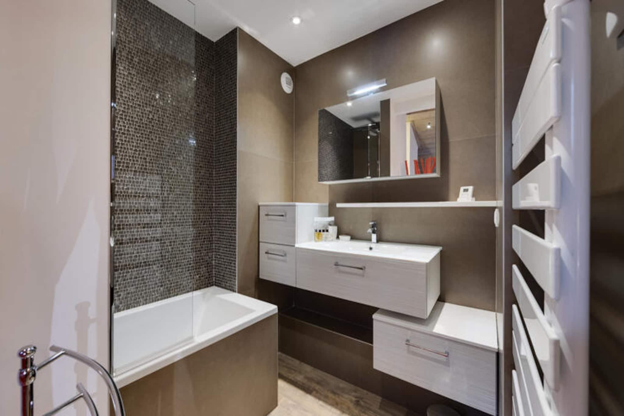 Högt ovanför Tarentaisedalen, där de majestätiska topparna i de franska Alperna möter charmen hos en gågata, ligger Hameau du Glacier Residence i Arc 1950. Detta exklusiva 5-stjärniga reträtt inbjuder dig att uppleva den ultimata alpina flykten, en blandning av lyx, komfort och direkt tillgång till det berömda skidområdet Paradiski med dess 425 km orörda backar. Tänk dig att vakna upp till den friska bergsluften, kliva ut på din sydostvända balkong och titta på de snötäckta landskapen som lovar oändliga äventyr. Oavsett om du är här för vinterspänning eller sommarlugn, erbjuder detta residens en port till oförglömliga stunder i hjärtat av Alperna. \n\nDen rymliga duplexlägenheten på 87 m² är omsorgsfullt utformad för upp till sex gäster, vilket garanterar en mysig men elegant vistelse. På första våningen hittar du ett fullt utrustat kök, ett varmt vardagsrum med öppen spis och en bäddsoffa för två personer samt ett sovrum med eget duschrum. En separat toalett ökar bekvämligheten, medan balkongen erbjuder en lugn plats att njuta av den alpina utsikten. På övervåningen väntar ett lyxigt dubbelrum med en king size-säng och eget badrum, vilket erbjuder en lugn tillflyktsort efter en dag av utforskande. Premiumtjänster, inklusive sängkläder, badrockar och slutstädning, garanterar en smidig och avkopplande upplevelse.\n\nArc 1950 är en pulserande by där allt finns inom räckhåll. Från charmiga butiker och restauranger till skidförvaring och täckt parkering, är residenset perfekt beläget för bekvämlighet. Wellnessavdelningen är en riktig höjdpunkt, med utomhus- och inomhuspooler, jacuzzi, bastu, ångbad och ett fitnesscenter – perfekt för att varva ner efter aktiva dagar. På sommaren förvandlas regionen till en fristad för vandrare och cyklister, med stigar som avslöjar hisnande alpina vyer.\n\nOavsett om du söker adrenalin i backarna, föryngring i spaet eller helt enkelt en lugn tillflyktsort omgiven av naturen, erbjuder Hameau du Glacier Residence en oöverträffad alpin upplevelse. Låt skönheten i Arc 1950 och värmen i detta lyxiga residens skapa minnen som varar livet ut.