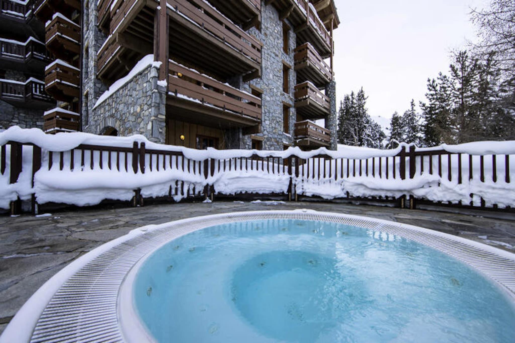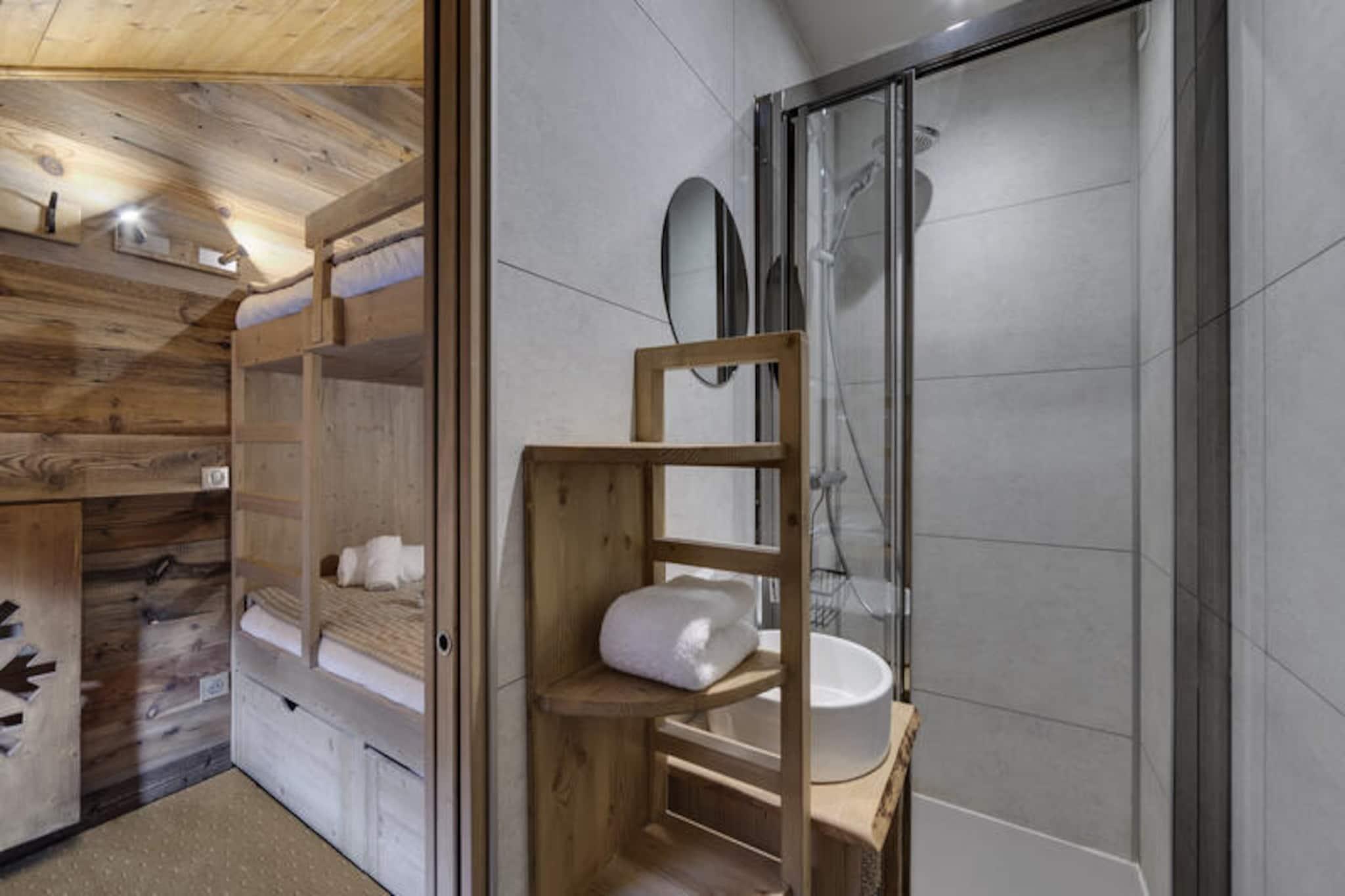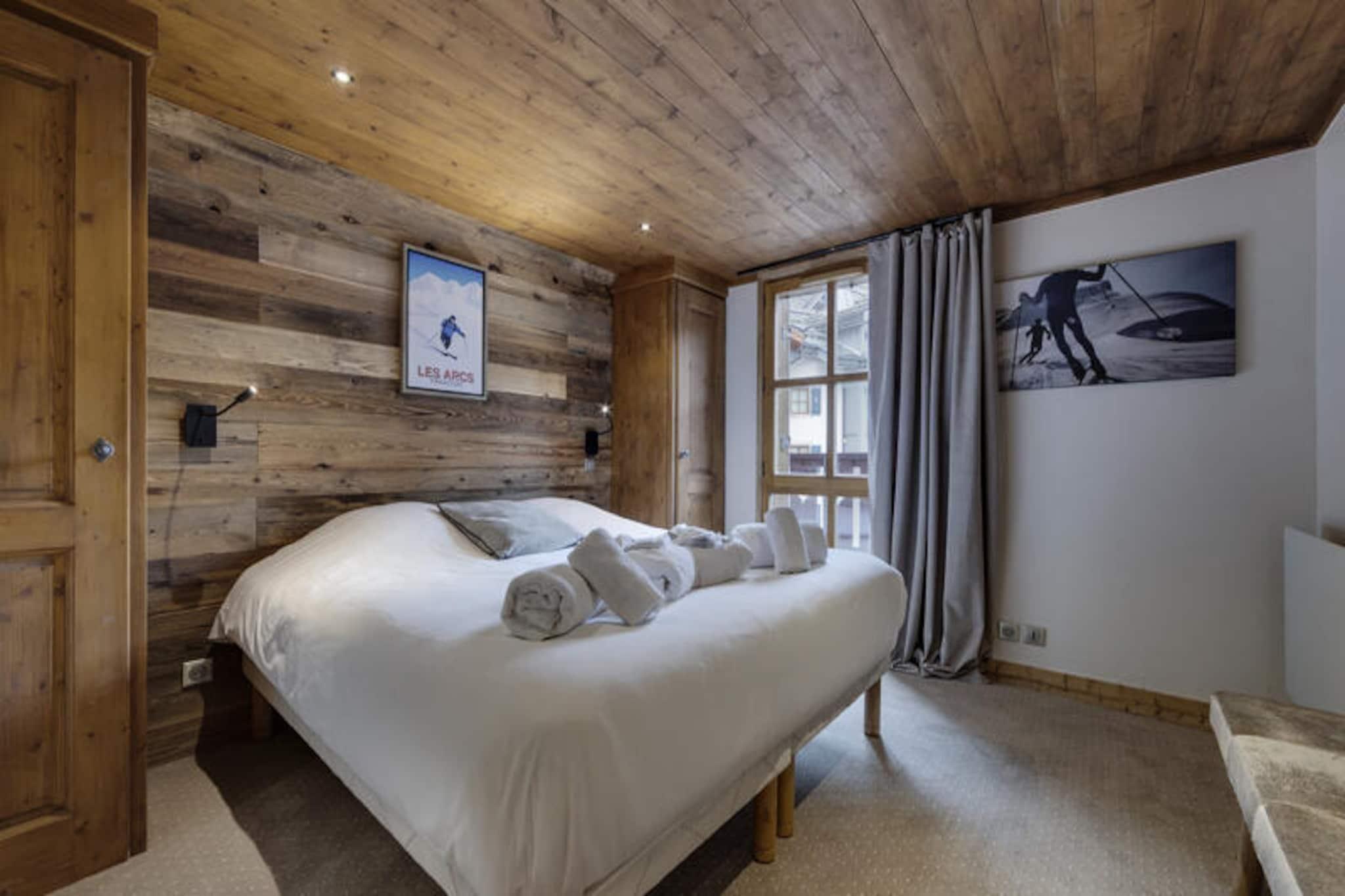 I den förtrollande gågatan Arc 1950, där alpin charm möter modern lyx, erbjuder detta exklusiva 5-stjärniga residens en oförglömlig oas i bergen. Omgivet av den hisnande utsikten över skidområdet Paradiski, med 425 km orörda backar precis utanför dörren, är denna ski-in/ski-out-anläggning en fristad för både vintersportentusiaster och naturälskare. Refuge du Montagnard Residence kombinerar den mysiga atmosfären i en traditionell alpby med bekvämligheter i världsklass för att garantera en verkligt minnesvärd vistelse. \n\nLägenheten är 117 m² stor och rymmer bekvämt upp till 10 gäster fördelade på fyra vackert inredda sovrum, en mezzanin med våningssängar och tre eleganta badrum. Vardagsrummet med öppen planlösning, komplett med ett fullt utrustat kök och matplats, inbjuder dig att koppla av och dela måltider med nära och kära efter en dag i backarna. Gå ut på balkongen för att njuta av den friska bergsluften och den fantastiska utsikten. Gästerna kommer också att uppskatta omtänksamma detaljer som bäddade sängar vid ankomst, lyxiga sängkläder och gratis badrumsprodukter. \n\nResidenset ståtar med ett exceptionellt hälsocenter med utomhuspool, jacuzzi, bastu och ångbad, perfekt för avkoppling efter en aktiv dag. Bortom residenset erbjuder Arc 1950 en livlig atmosfär med charmiga gågator, härliga restauranger och butiker. På sommaren förvandlas området till ett paradis för vandrare och cyklister, med stigar som slingrar sig genom frodiga alpina ängar och erbjuder panoramautsikt över de omgivande topparna. \n\nOavsett om du söker spännande skidäventyr eller lugna bergsresor, erbjuder detta residens den perfekta blandningen av komfort, bekvämlighet och lyx. Skapa bestående minnen i hjärtat av de franska Alperna, där varje ögonblick inramas av bergens majestätiska skönhet.