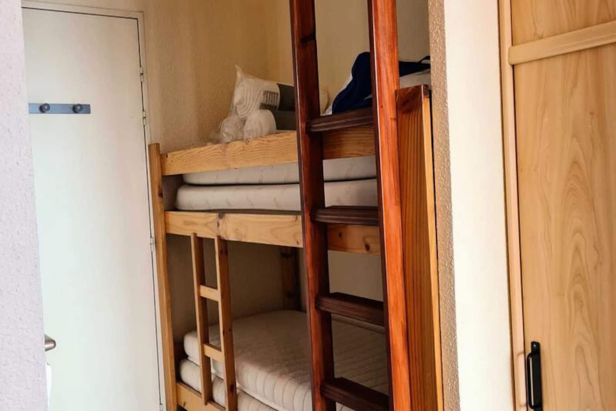 Högt ovanför Tarentaisedalen, i hjärtat av skidorten Arc 2000, erbjuder denna mysiga alpina lägenhet en varm tillflyktsort för dem som söker äventyr och avkoppling i lika stor utsträckning. Från balkongen på 7:e våningen i Fond Blanc-residenset kan du njuta av den friska bergsluften och beundra den hisnande utsikten över de omgivande topparna, vilket sätter tonen för en oförglömlig alpin flykt. Oavsett om du är här för spänningen med skidåkning eller lugnet i bergen, placerar detta residens dig i centrum av allt. Lägenheten är utformad för att bekvämt rymma upp till fyra gäster och har ett halvt slutet sovrum med en dubbelsäng och en sovalkov med två våningssängar, vilket gör den idealisk för familjer eller små grupper. Vardagsrummet inbjuder dig att varva ner med en platt-TV, medan pentryt är utrustat med allt du behöver för att laga mat, inklusive en elektrisk spishäll, mikrovågsugn, kylskåp och en Dolce Gusto-kaffebryggare. Ett separat badrum och toalett ökar bekvämligheten, och ett skidförvaringsskåp säkerställer att din utrustning alltid är redo för nästa äventyr. Beläget bara några steg från skidortens centrum, har du enkel tillgång till backarna via det övre torget och hållplatsen för bussen mellan skidorterna som ansluter till Arc 2000. På vintern finns täckt parkering tillgänglig vid Mont Blanc eller Lac des Combes för extra bekvämlighet. Efter en dag i backarna kan du utforska den pulserande afterski-scenen eller koppla av i ditt bekväma bergsboende. Med sitt utmärkta läge, moderna bekvämligheter och mysiga atmosfär är denna lägenhet den perfekta basen för att skapa värdefulla minnen i de franska Alperna. Oavsett om du åker genom färskt pudersnö eller njuter av en sommarvandring, lovar Arc 2000 spänning och naturlig skönhet året runt.