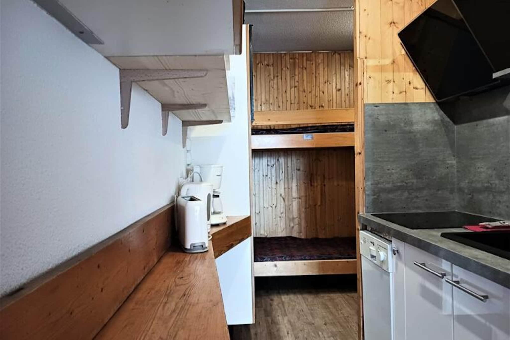 Denna mysiga studio, som njuter av den alpina charmen i Arc 1600, erbjuder en perfekt tillflyktsort för både vinter- och sommarresor. Med sin balkong i söderläge med utsikt över det livliga Place du Soleil vaknar du upp till fantastisk utsikt över bergen och den livliga atmosfären i semesterorten. Oavsett om du är här för spänningen i backarna eller lugnet under sommarvandringar, placerar denna bostad dig i hjärtat av allt. Bekvämligheten med att vara vid foten av skidliftarna och bara några steg från semesterortens centrum säkerställer att varje ögonblick av din vistelse är enkel och njutbar. Inuti är den 30 m² stora studion noggrant utformad för att rymma upp till fyra gäster. Vardagsrummet har en utdragbar bäddsoffa, medan en mysig sovalkov med våningssängar ger extra komfort. Det välutrustade köket, komplett med induktionshäll, en kombinerad ugn/mikrovågsugn och diskmaskin, inbjuder dig att laga rejäla måltider efter en dag av äventyr. Moderna bekvämligheter som TV, tvättmaskin och skidförvaring ökar bekvämligheten, medan gratis Wi-Fi håller dig uppkopplad under hela din vistelse. Kliv ut och du kommer att befinna dig i det pulserande livet i Arc 1600. Från charmiga butiker och härliga restauranger till spännande skidbackar och natursköna leder, allt är inom räckhåll. På sommaren förvandlas området till en fristad för friluftsentusiaster, med hisnande vandringsleder och fridfulla picknickplatser. För vintersportälskare innebär närheten till skidliftarna att du kan ta dig ut i backarna på nolltid. Oavsett om du söker äventyr eller avkoppling är denna studio din port till oförglömliga alpina upplevelser. Med sitt utmärkta läge, mysiga atmosfär och moderna bekvämligheter är det det perfekta valet för att skapa värdefulla minnen i hjärtat av de franska Alperna.
