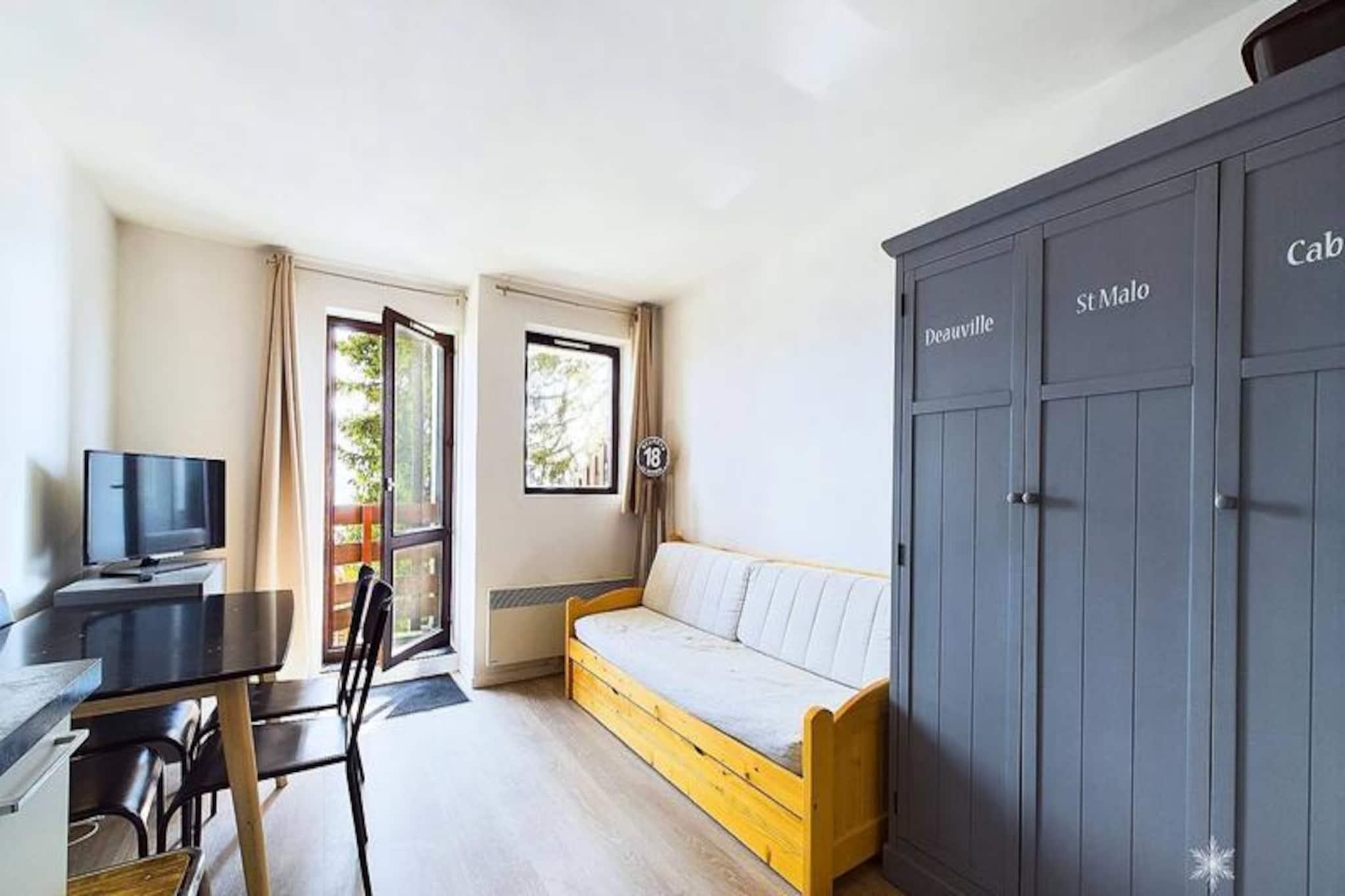 I hjärtat av de franska Alperna, där snötäckta toppar möter oändliga blå himmel, inbjuder denna charmiga studio i LES IBOUQUETINS-residenset dig att uppleva magin i bergslivet. Perfekt beläget vid foten av backarna, erbjuder den oöverträffad bekvämlighet för skidentusiaster, med butiker bara 200 meter bort och en dagis bara 50 meter från din dörr. Oavsett om du är här för spänningen med vintersport eller lugnet under alpina somrar, är denna mysiga tillflyktsort din port till äventyr. Nyrenoverad och betygsatt med 2 stjärnor, rymmer denna ljusa studio på 22 m² bekvämt upp till fyra gäster. Den smarta planlösningen har en entréhall med två våningssängar, separerade från vardagsrummet med ett draperi för extra avskildhet. Vardagsrummet har en soffa med utdragbara sängar, en TV och tillgång till en balkong i söderläge som översvämmar utrymmet med naturligt ljus och erbjuder fantastisk utsikt över bergen. Pentryt är utrustat med keramikhäll, kylskåp, ugn och mikrovågsugn, vilket gör det enkelt att laga mat efter en dag i backarna. Ett modernt duschrum och en separat toalett kompletterar bekvämligheterna och garanterar en bekväm vistelse. Ett skidförvaring finns också för din bekvämlighet. Bortom residenset erbjuder den pulserande alpbyn allt du behöver för en minnesvärd semester. Från charmiga butiker och lokala restauranger till skidskolor och afterski-aktiviteter hittar du allt inom gångavstånd. På sommaren förvandlas regionen till en fristad för vandrare, cyklister och naturälskare, med stigar som slingrar sig genom hisnande landskap. Oavsett om du utforskar de närliggande topparna eller bara njuter av den lugna atmosfären, är denna studio den perfekta basen för din alpina flykt. Välj detta förtjusande residens för dess oslagbara läge, moderna bekvämligheter och löftet om oförglömliga stunder i hjärtat av Alperna.