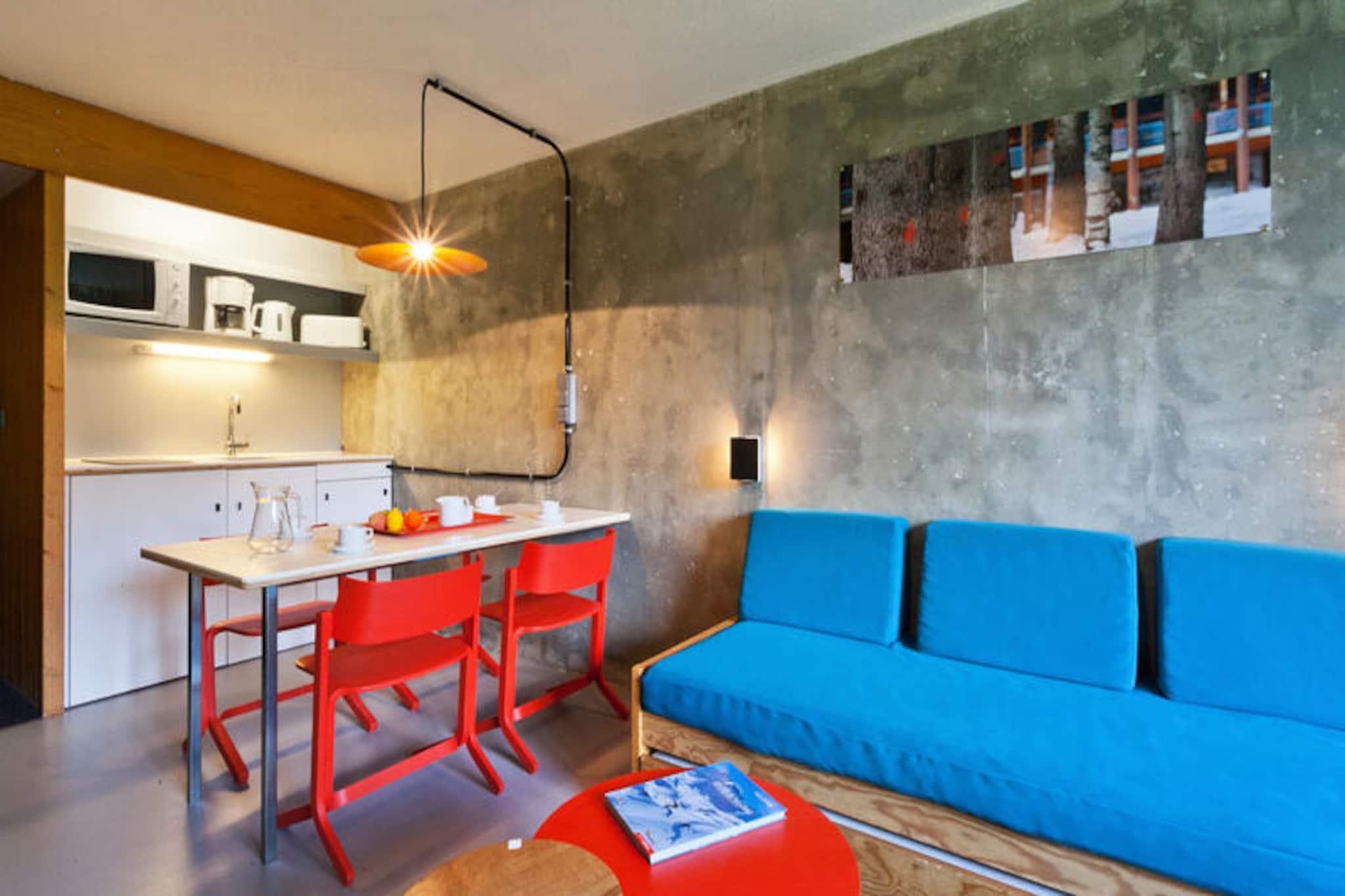 Högt ovanför det livliga köpcentret Charvet erbjuder denna charmiga studiolägenhet en mysig tillflyktsort med oslagbar ski-in/ski-out-bekvämlighet. Tänk dig att vakna upp till Mont Blancs fridfulla skönhet från din balkong eller njuta av de soliga sluttningarna från den söderläge utsikten. Oavsett om du är här för spännande vinteräventyr eller lugna sommarresor, placerar denna bostad dig i hjärtat av alpina magier, med backarna och butikerna bara några steg bort. Busshållplatsen mellan orterna garanterar smidig tillgång till att utforska det bredare Les Arcs-området, vilket gör det till en idealisk bas för din bergssemester. \n\nDenna renoverade studio på 27 m² rymmer bekvämt upp till fem gäster, perfekt för familjer eller små grupper. Lägenheten har en smart designad planlösning med våningssängar i entrén och en utdragssäng i vardagsrummet som kan förvandlas till en rymlig dubbelsäng. Pentryt är fullt utrustat med moderna apparater, inklusive keramikhäll, mikrovågsugn, kyl/frys, diskmaskin och kaffebryggare, vilket säkerställer att du kan laga läckra måltider efter en dag i backarna. Det heltäckningsmattade vardagsrummet inbjuder till avkoppling, komplett med en bäddsoffa och TV, medan balkongen erbjuder ett privat utrymme att varva ner och njuta av den hisnande omgivningen.\n\nPraktiska bekvämligheter som gratis Wi-Fi på resorten, skidförvaring och närliggande täckt och utomhusparkering förbättrar din vistelse. Familjer kommer att uppskatta ESF Skimômes barnklubb som ligger vid foten av residenset och erbjuder underhållning för de små. Med miljövänliga sängkläder och valfri slutstädning prioriteras din komfort under hela ditt besök.\n\nOavsett om du dras av lockelsen av Mont Blancs majestätiska utsikt, den livliga atmosfären i Charvet eller spänningen med ski-in/ski-out-åtkomst, är denna studiolägenhet din port till oförglömliga alpina minnen. Boka din vistelse och fördjupa dig i Les Arcs förtrollande charm.