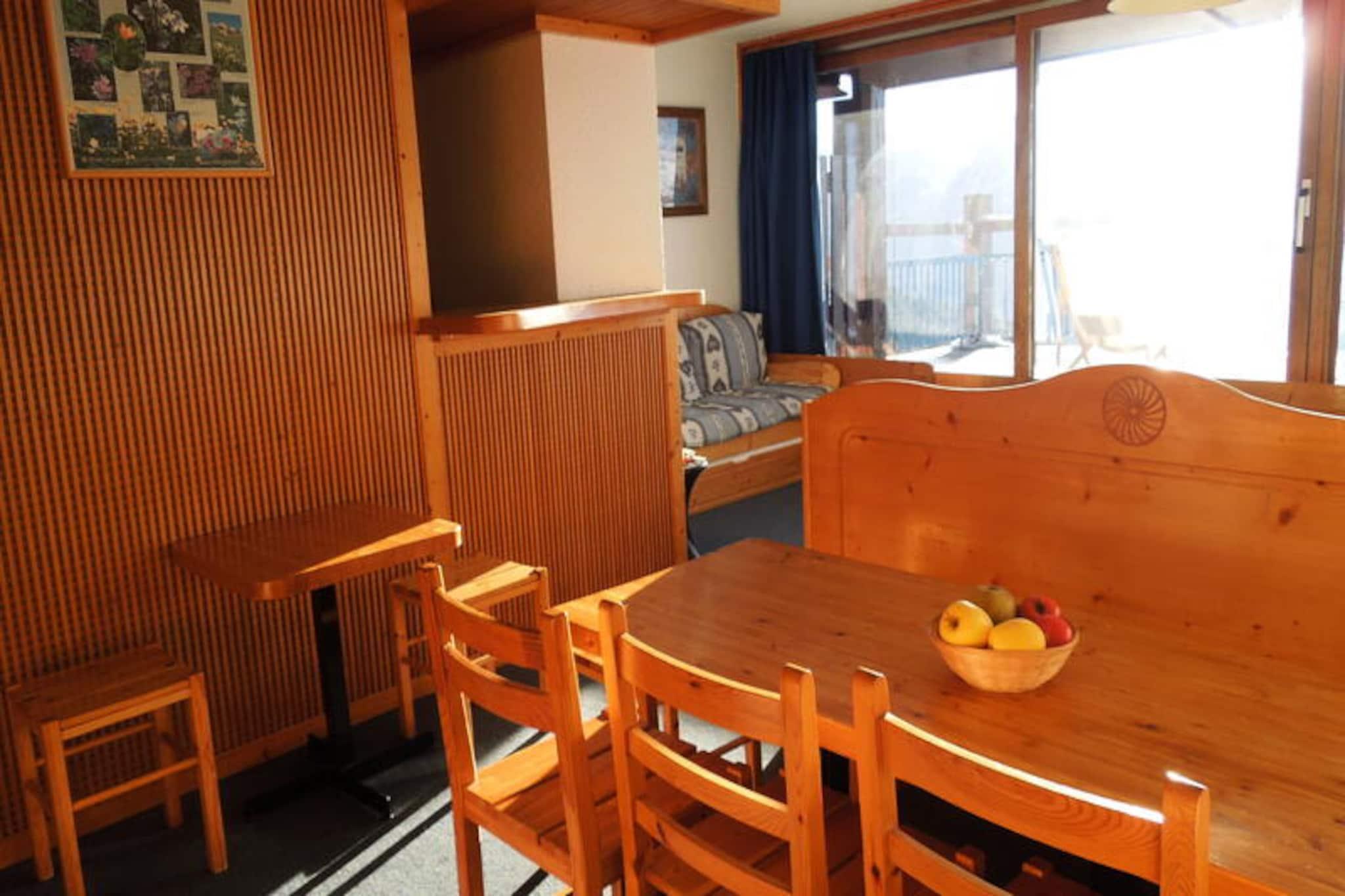 Högt ovanför den pittoreska Tarentaisedalen erbjuder denna inbjudande tvårumslägenhet i Nova 3-residenset en perfekt alpin tillflyktsort för familjer och vänner. Belägen på 10:e våningen har den en rymlig terrass i sydvästläge där du kan njuta av hisnande utsikt över dalen och solnedgångarna, vilket skapar en lugn bakgrund för din bergssemester. Residenset är idealiskt beläget bara några steg från backarna och Villards pulserande bycentrum, vilket garanterar både bekvämlighet och charm under hela din vistelse. \n\nInuti rymmer lägenheten bekvämt upp till sju gäster med en genomtänkt planlösning. Vardagsrummet har två bäddsoffor och två utdragssängar, vilket ger en mysig plats att koppla av efter en dag av äventyr. Det fullt utrustade köket har moderna apparater som keramikhäll, ugn, mikrovågsugn, diskmaskin och kaffebryggare, vilket gör det enkelt att laga mat åt din grupp. Det stora sovrummet med dubbelsäng och egen dusch erbjuder avskildhet, medan barnrummet med våningssängar är perfekt för yngre gäster. Ytterligare bekvämligheter inkluderar ett badrum med separat toalett, TV, gratis Wi-Fi och ett inomhus skidförvaringsskåp för din bekvämlighet. \n\nNova 3 erbjuder direkt tillgång till skidbacken, vilket gör att du enkelt kan ta dig ut i backarna. I närheten hittar du täckt parkering, ett köpcentrum och en hållplats för transfer mellan orterna, vilket gör det enkelt att utforska omgivningarna. Oavsett om du åker skidor på vintern eller vandrar och cyklar på sommaren, erbjuder läget oändliga möjligheter till utomhusäventyr. \n\nMed miljövänliga sängkläder, möjlighet till slutstädning och en lugn miljö bland granarna är denna lägenhet den perfekta basen för att skapa oförglömliga alpina minnen. Upplev magin i de franska Alperna i komfort och stil.