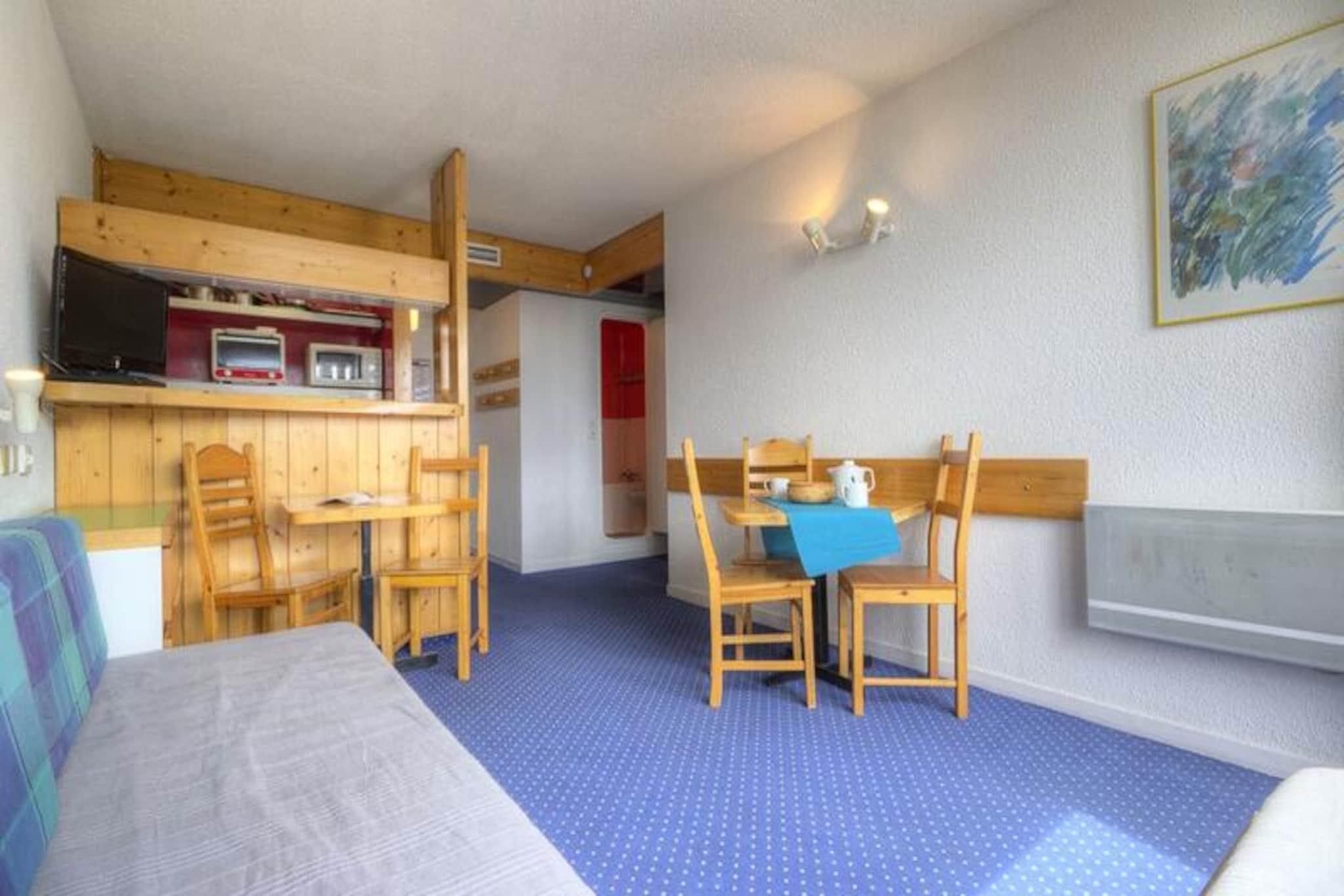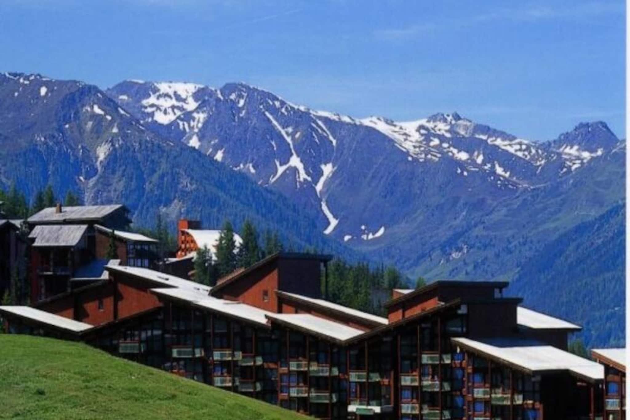 Njut av charmen i Les Arcs 1800 med denna mysiga alpina oas, perfekt belägen ovanför det livliga köpcentret Village des Villards. Här möter bergen modern bekvämlighet och erbjuder en sömlös blandning av äventyr och avkoppling. Oavsett om du blickar ut över de soliga backarna eller de fridfulla solnedgångarna i dalen, inbjuder denna residens dig att fördjupa dig i de franska Alpernas skönhet. Dess utmärkta läge vid foten av backarna säkerställer att dina skidäventyr börjar i samma ögonblick som du kliver ut. Busshållplatsen mellan orterna i närheten gör det enkelt att utforska omgivningarna. Denna omsorgsfullt designade lägenhet rymmer upp till fem gäster i ett separat sovrum med tre enkelsängar, inklusive två våningssängar, och två bekväma dagbäddar i vardagsrummet. Köket med öppen planlösning är fullt utrustat med elektrisk spishäll, miniugn, kylskåp, mikrovågsugn och diskmaskin, vilket gör matlagningen till en barnlek. Efter en dag med alpina aktiviteter kan du varva ner i det mysiga vardagsrummet med en platt-TV eller njuta av badkaret för att slappna av musklerna. Balkongen i sydvästläge, tillgänglig från både sovrummet och vardagsrummet, erbjuder hisnande utsikt över dalen, perfekt för att njuta av ett morgonkaffe eller ett kvällsglas vin. Med gratis Wi-Fi, hissar och täckt parkering i närheten finns bekvämligheten nära till hands. Residensens miljövänliga sängkläder och valfria slutstädning garanterar en hållbar och problemfri vistelse. Bortom lägenheten hittar du en livlig atmosfär med butiker, restauranger och afterski-möjligheter bara några steg bort. På sommaren förvandlas regionen till en fristad för vandrare och mountainbikecyklister, med leder som visar upp den fantastiska Tarentaisedalen. Oavsett om du är här för att karva genom orörd snö eller utforska de alpina lederna under sommarsolen, erbjuder denna residens den perfekta basen för oförglömliga minnen i hjärtat av de franska Alperna.
