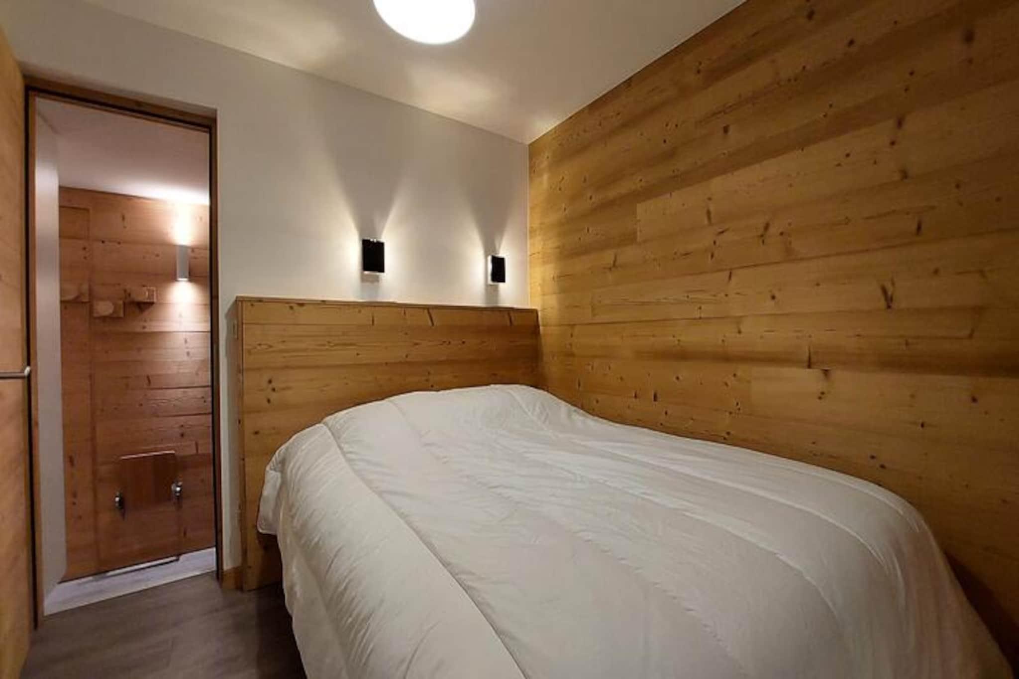 Högt ovanför det livliga köpcentret Charvet i Les Arcs 1800 erbjuder denna charmiga lägenhet med ski-in/ski-out en oslagbar alpin flykt. Med sina balkonger i söderläge med utsikt över backarna och nordostlig utsikt över Mont Blanc och fridfulla granar, inramas varje ögonblick här av hisnande landskap. Oavsett om du smuttar på kaffe medan solen går upp över topparna eller tittar på skidåkare som karvar sig nerför berget, fördjupar denna bostad dig i magin i de franska Alperna. \n\nDenna 56 m² stora stuglägenhet med tre rum och bekvämt plats för upp till sju gäster. Den omsorgsfullt utformade planlösningen inkluderar ett mysigt vardagsrum med TV, ett fullt utrustat kök med moderna apparater som Nespresso-maskin och diskmaskin, samt tre stugiga sovrum. Två av sovrummen har dubbelsängar, medan det tredje är perfekt för barn med sin våningssäng. Två badrum, ett med dusch, garanterar bekvämlighet för alla gäster. Ytterligare bekvämligheter som gratis Wi-Fi, tvättmaskin och sängkläder (förutom för kortare vistelser och sommar) gör din vistelse problemfri.\n\nBeläget vid foten av backarna och butikerna är läget idealiskt för både vinter- och sommaräventyr. ESF Skimômes barnklubb ligger bara några steg bort, vilket gör det perfekt för familjer. I närheten finns en hållplats för buss mellan orterna som förbinder dig med det bredare Paradiski-området, medan täckta och utomhusparkeringsmöjligheter garanterar enkel åtkomst. På sommaren kan du utforska vandringsleder, mountainbike-leder och den fantastiska utsikten över Mont Blanc.\n\nOavsett om du är här för att åka skidor, vandra eller bara varva ner i den friska bergsluften, erbjuder detta boende den perfekta blandningen av komfort, bekvämlighet och oförglömlig alpin charm.