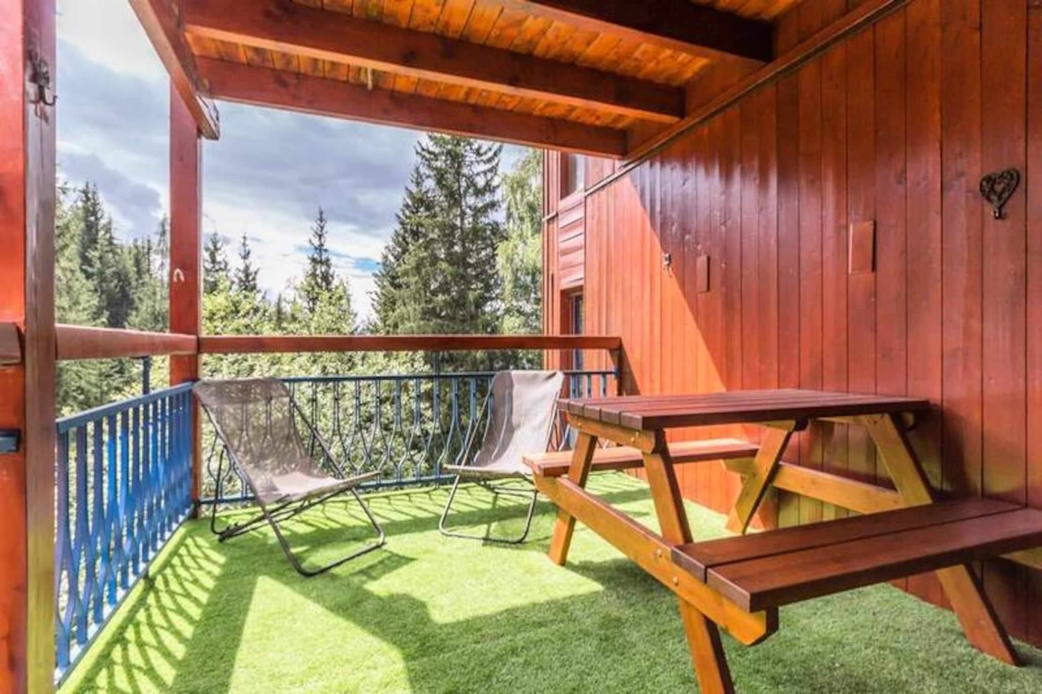 I hjärtat av den livliga Village des Villards erbjuder denna charmiga lägenhet en mysig alpin tillflyktsort med ett utmärkt läge, bara några steg från backarna och lokala bekvämligheter. Belägen på andra våningen i Aiguille des Glaciers-residenset, erbjuder balkongen i sydvästläge en fantastisk panoramautsikt över dalen och inbjuder dig att njuta av de franska Alpernas fridfulla skönhet när som helst på året. Oavsett om du smuttar på ditt morgonkaffe eller varvar ner efter en dag av äventyr, är balkongen den perfekta platsen att koppla av och njuta av den hisnande omgivningen. Lägenheten är utformad för att rymma upp till fem gäster och har en genomtänkt planlösning med ett separat sovrum med en bekväm dubbelsäng, en sovalkov med en våningssäng (översta våningssängen är inte lämplig för barn under sex år) och en extra enkelsäng. Vardagsrummet är utrustat med en platt-TV, vilket skapar en välkomnande plats för avkoppling. Köket med öppen planlösning är fullt utrustat med moderna bekvämligheter, inklusive keramikhäll, miniugn, kylskåp, mikrovågsugn och diskmaskin, vilket gör det enkelt att laga mat och njuta av kvalitetstid med nära och kära. Ett badrum med badkar och en separat toalett bidrar till bekvämligheten och komforten under din vistelse. Residenset är idealiskt beläget nedanför köpcentret på det nedre torget i Village des Villards, vilket garanterar enkel tillgång till butiker, restauranger och skidanläggningar. Täckt parkering vid Villards och parkering utan tak vid Chante Mouche finns i närheten, och transfer mellan orterna stannar vid Villards tågstation och säkerställer smidig transport i hela området. Med digitaliserad åtkomst till residenset och närhet till backarna är denna lägenhet en fristad för både skidentusiaster och naturälskare. Oavsett om du söker spännande dagar i backarna, lugna alpina promenader eller helt enkelt en mysig tillflyktsort med spektakulär utsikt, erbjuder denna lägenhet den perfekta basen för en oförglömlig semester i de franska Alperna.