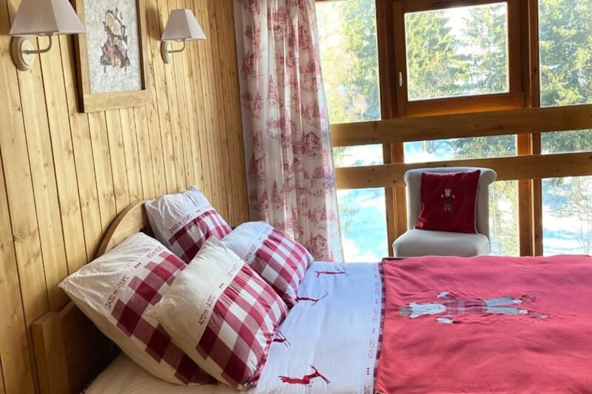 I den fridfulla byn Charmettoger, inbäddad i residenset Aiguille Grive 3, erbjuder denna rymliga duplexlägenhet en lugn alpin reträtt vid foten av backarna. Tänk dig att vakna upp till det mjuka morgonljuset som strömmar genom den österläge balkongen, andas in frisk bergsluft och kliva direkt ut på de snötäckta stigarna från korridoren precis utanför din dörr. Perfekt beläget för skidentusiaster, kombinerar detta residens bekvämlighet med charmen i en fridfull bergsmiljö. \n\nLägenheten är 80 kvadratmeter stor och rymmer bekvämt upp till åtta gäster. Det ljusa och inbjudande vardagsrummet har en dubbelhörna med en mysig bäddsoffa och en matplats, perfekt för gemensamma måltider och avkoppling efter en dag av äventyr. Det fullt utrustade öppna köket inkluderar moderna apparater som elektrisk spishäll, ugn, mikrovågsugn, två kylskåp, diskmaskin, kaffebryggare, vattenkokare, brödrost och till och med en tvättmaskin för extra bekvämlighet. På övervåningen hittar du två privata sovrum med dubbelsängar, två hallar med våningssängar och gott om förvaringsutrymme. Lägenheten har även ett duschrum, ett badrum och två separata toaletter, vilket garanterar komfort och praktiska bekvämligheter för alla gäster.\n\nCharmettoger erbjuder en lugn tillflyktsort från den livliga skidorten, men har ändå goda förbindelser med en hållplats för buss mellan orterna i närheten. Även om området är fritt från butiker, finns det en livsmedelsbutik i bostaden som erbjuder det nödvändigaste för din vistelse. Täckt parkering vid Charmettoger och gratis parkeringsmöjligheter vid vägkanten ökar bekvämligheten. På vintern finns den täckta parkeringen vid Chante Mouche också tillgänglig mot en extra avgift.\n\nOavsett om du söker spännande dagar i backarna eller lugna kvällar i den alpina atmosfären, är denna duplexlägenhet den perfekta basen för att skapa oförglömliga minnen i hjärtat av de franska Alperna.