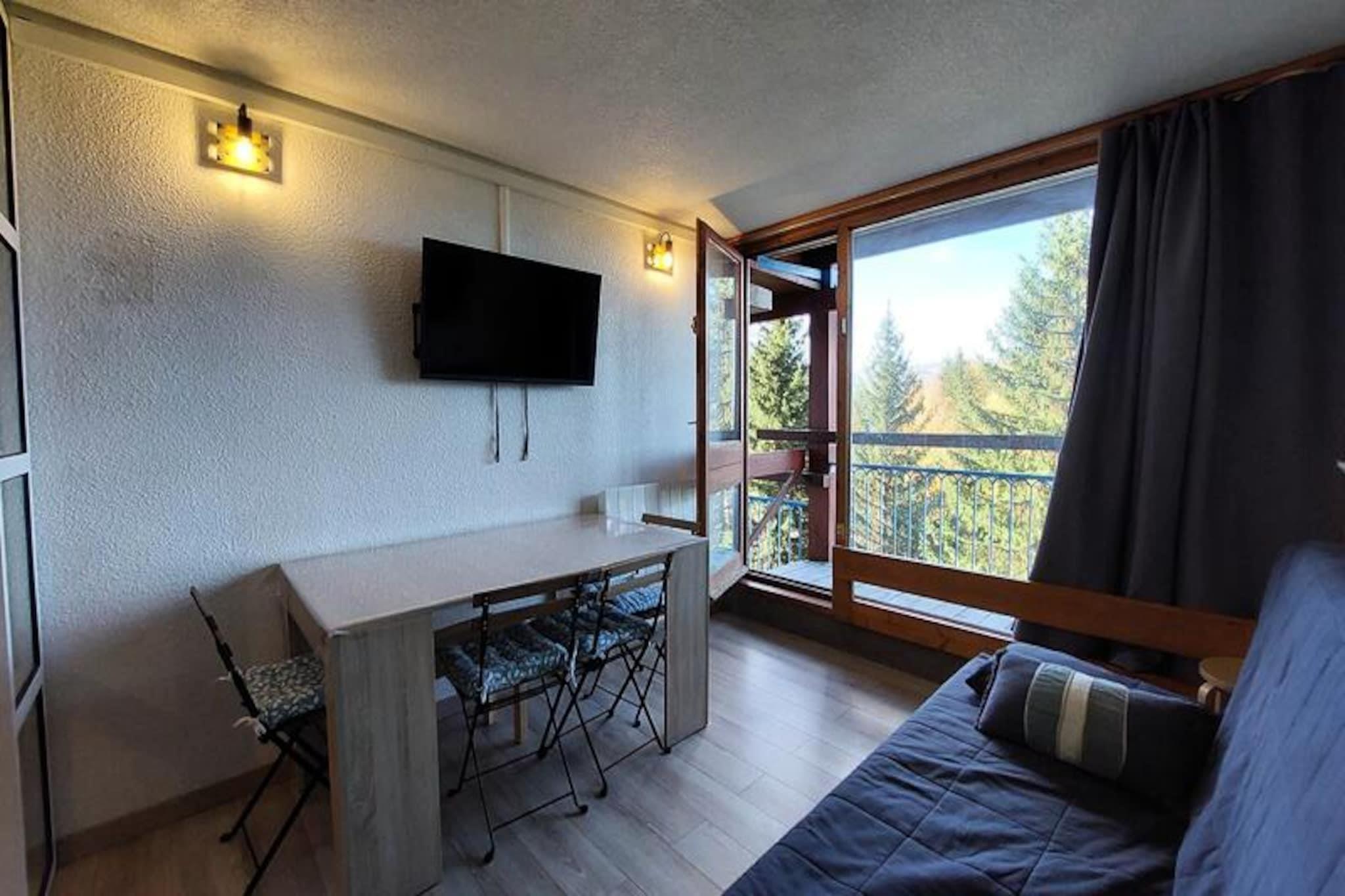 Högt ovanför Tarentaisedalen erbjuder denna charmiga studio i Belles Challes-residenset en idyllisk alpin tillflyktsort i hjärtat av Les Arcs 1800. Med sin sydvästvända balkong vaknar du upp till hisnande utsikter över de omgivande bergen och den livliga orten nedanför, vilket sätter tonen för oförglömliga dagar i de franska Alperna. Oavsett om du är här för spännande skidäventyr eller natursköna sommarvandringar, är denna mysiga tillflyktsort din port till allt. Studion är omsorgsfullt utformad för att maximera komfort och funktionalitet och rymmer upp till fyra gäster. Vardagsrummet har en bekväm 140 cm bäddsoffa, medan en sovalkov erbjuder våningssängar och en utdragbar säng, perfekt för familjer eller små grupper. Ett fullt utrustat kök med keramikhäll, mikrovågsugn, diskmaskin och kylskåp säkerställer att du kan laga rejäla måltider efter en dags utforskande. Badrummet har badkar och toalett, vilket erbjuder en avkopplande plats att varva ner. Moderna bekvämligheter som en platt-TV och en hiss till 10:e våningen gör din vistelse ännu bekvämare. Gå ut, så hittar du allt du behöver inom räckhåll. Vagère-liften och Transarc-linbanan ligger bara några steg bort och erbjuder direkt tillgång till det vidsträckta Paradiski-området. ESF-skidskolan ligger bara fem minuters promenad bort, vilket gör detta till ett utmärkt val för familjer med unga skidåkare. På sommaren förvandlas området till en fristad för vandrare och cyklister, med stigar som slingrar sig genom frodiga alpina ängar. Viktiga tjänster som en stormarknad, en läkarmottagning och turistbyrån ligger alla inom 50 meter från residenset, medan den kostnadsfria bussen garanterar enkel åtkomst till resten av orten. Oavsett om du åker genom färskt pudersnö på vintern eller njuter av alpsolen på sommaren, erbjuder denna studio den perfekta blandningen av komfort, bekvämlighet och fantastisk naturskönhet. Gör din nästa bergssemester verkligt minnesvärd på Belles Challes-residenset.