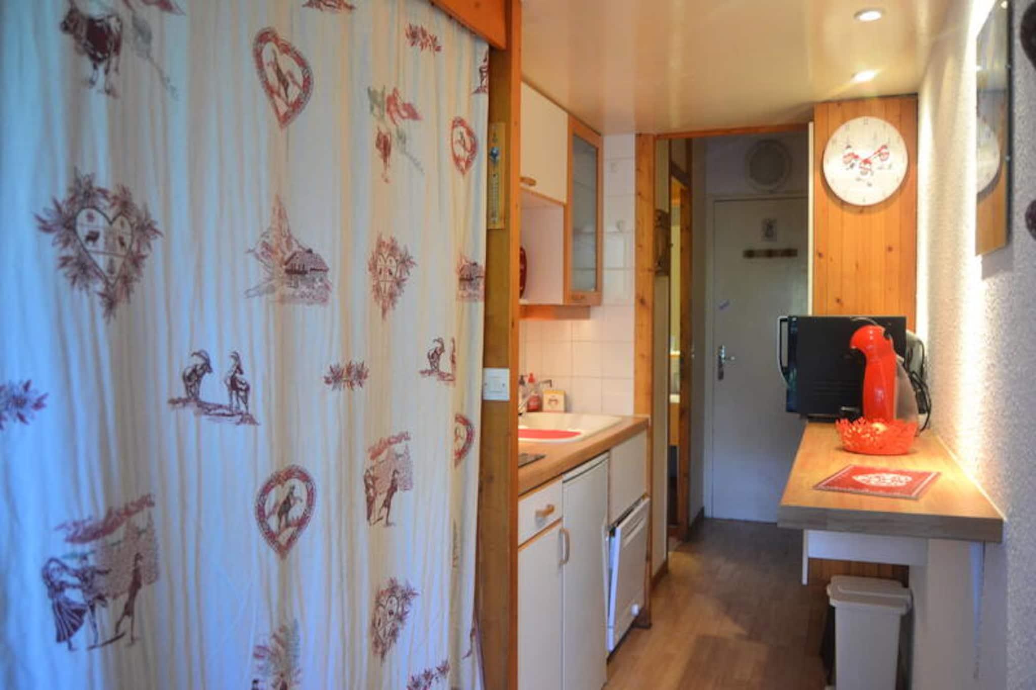 Vacker studio för 4 personer, inredd i chaletatmosfär, nära backarna och butikerna, i hjärtat av byn Charvet