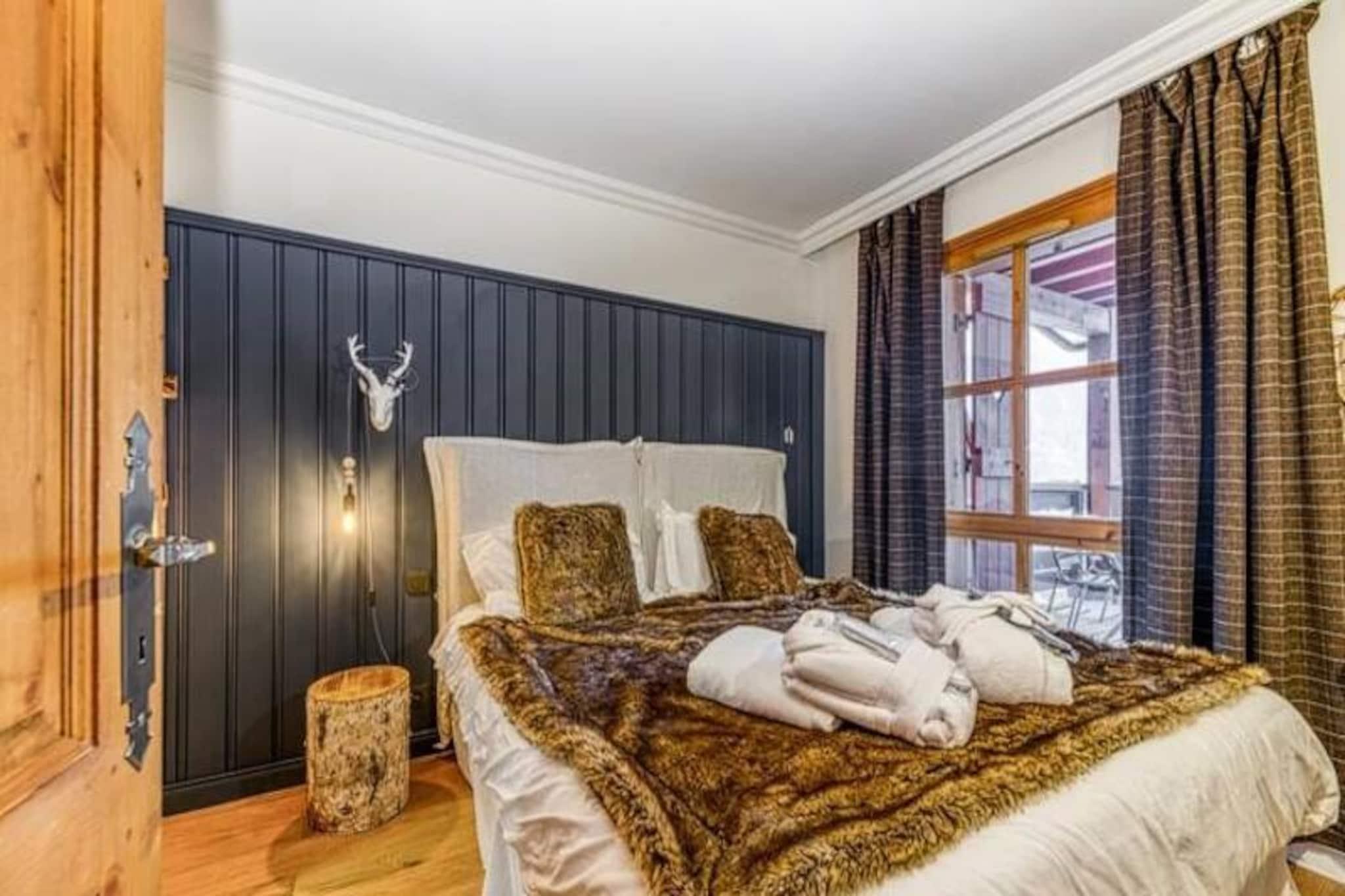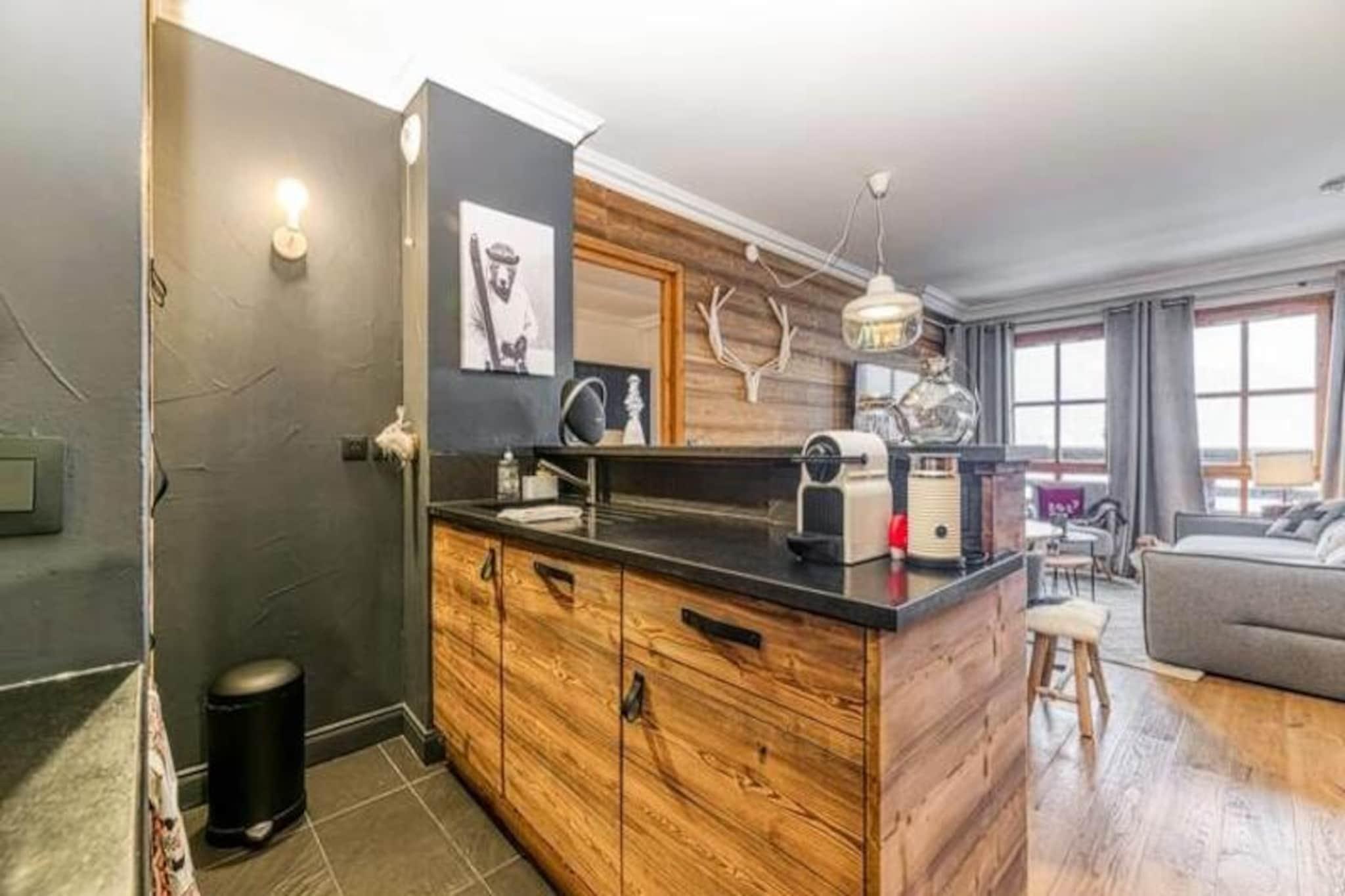 Högt ovanför den hisnande Tarentaise-dalen erbjuder denna lyxiga lägenhet i Refuge du Montagnard Residence en oöverträffad alpin tillflyktsort i hjärtat av Arc 1950. Designad med en charmig byatmosfär, är denna gågatavänliga resort i direkt anslutning till det vidsträckta skidområdet Paradiski, som ståtar med 425 kilometer orörda backar. Oavsett om du söker spännande vinteräventyr eller fridfulla sommarresorter, lovar denna fastighet en perfekt blandning av komfort och bekvämlighet. Tänk dig att vakna upp till panoramautsikt över bergen, gå ut på din privata terrass och andas in den friska alpina luften medan du planerar din dag bland de majestätiska topparna. \n\nInuti sträcker sig lägenheten över 58 kvadratmeter och rymmer bekvämt upp till sex gäster. Den noggrant utformade planlösningen inkluderar ett mysigt vardagsrum med bäddsoffa, ett öppet kök och matplats samt två inbjudande sovrum - ett dubbelrum med eget badrum och ett tvåbäddsrum. Ytterligare bekvämligheter som duschrum, separat toalett och skidförvaring säkerställer en smidig vistelse. Gästerna kan också njuta av förstklassiga tjänster som bäddade sängar vid ankomst, badrockar och tofflor på vintern samt slutstädning, vilket gör detta boende till en sann oas för avkoppling. Refuge du Montagnard Residence har ett exceptionellt hälsoområde med utomhuspool, jacuzzi, bastu och ångbad, perfekt för att varva ner efter en dag i backarna. Arc 1950-talets livliga byatmosfär erbjuder en mängd olika restauranger, butiker och afterski-aktiviteter, allt inom gångavstånd. På sommaren förvandlas regionen till ett paradis för vandrare och mountainbikecyklister, med stigar som leder till imponerande vyer och frodiga alpina ängar. Oavsett om du dras till spänningen med skidåkning eller lugnet i bergslandskap, erbjuder denna lägenhet allt som behövs för en oförglömlig semester i de franska Alperna.