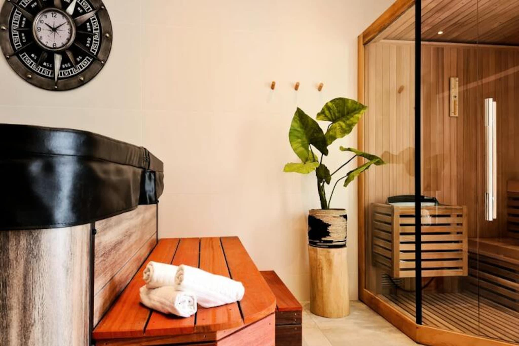 Denna rymliga villa erbjuder en lyxig vistelse för upp till 15 gäster, med 5 sovrum, en sovsal för barn med 5 dubbelsängar och 6 enkelsängar samt 5 badrum med 3 extra toaletter. Villan är husdjursvänlig och tillåter husdjur under 25 kg mot en liten avgift, vilket säkerställer att dina lurviga följeslagare kan följa med på semestern. Fastigheten är designad för komfort med gott om vardagsrum, inklusive ett stort vardagsrum, ett litet vardagsrum och en matplats som vetter mot en terrass med havsutsikt. Ytterligare bekvämligheter inkluderar tv, tvättmaskin, torktumlare och strykjärn. Villan har ett idealiskt läge och erbjuder omedelbar tillgång till stranden och närliggande cykelvägar för utomhusäventyr. Det är den perfekta basen för att koppla av och utforska lokala kaféer, marknader och andra attraktioner i området. Med hisnande 180° havsutsikt och enkel tillgång till kusten kan gästerna njuta av en fridfull oas med massor av aktiviteter för alla åldrar. Villan är välutrustad för alla dina behov, och har ett fullt utrustat kök med ugnar, kyl-frys, mikrovågsugn, Nespresso-maskin och mer. Gästerna kan varva ner i det särskilda hälsorummet med bastu, spa och hamamdusch. Uteområdet har en uppvärmd pool, trädgårdsmöbler, grill och hängmattor, vilket garanterar en avkopplande vistelse. Sängkläder och handdukar ingår, och slutstädning ingår.