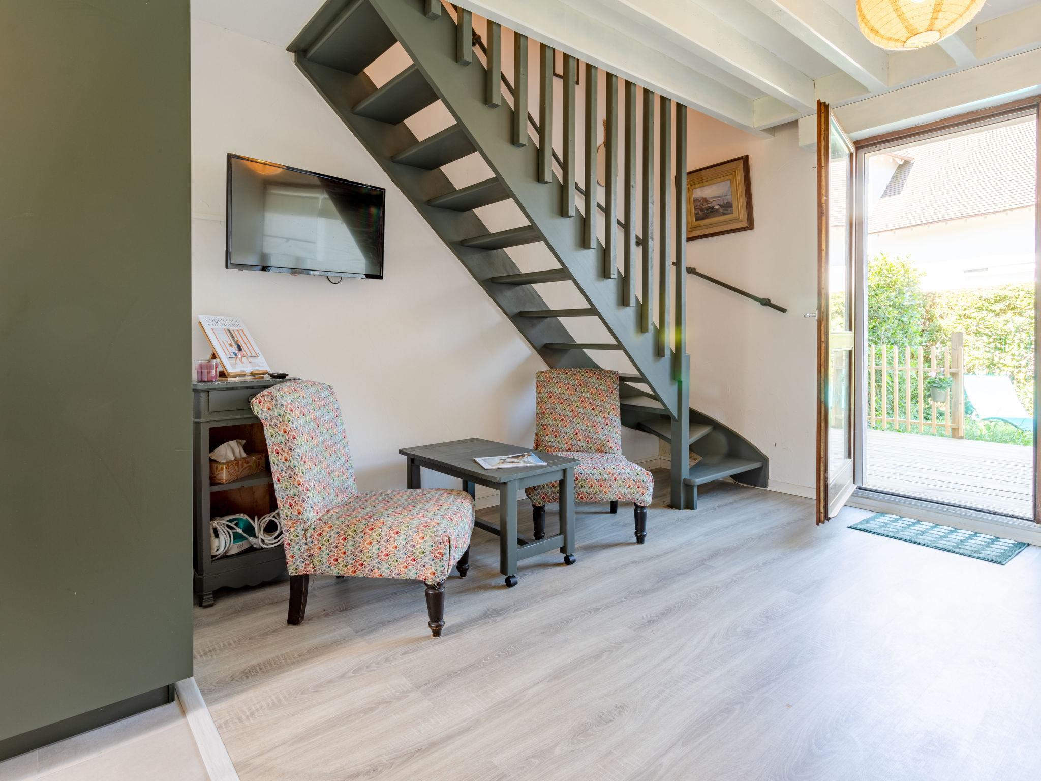 Residence "La Guillaumière", 2 storeys. In the resort 300 m from the centre of Cabourg, 950 m from the sea, 950 m from the beach. Public parking on the road. Shop 180 m, grocery, supermarket 400 m, restaurant 300 m, bakery 250 m, bus stop "Hôtel de Ville" 240 m, thermal baths "Thalazur" 1.4 km. Golf course (9 hole) 1.7 km. Nearby attractions: Deauville 25 km, Honfleur 48 km, Le Mémorial de Caen 35 km, Les plages du débarquement "Sword" 24 km. Please note: no lift.