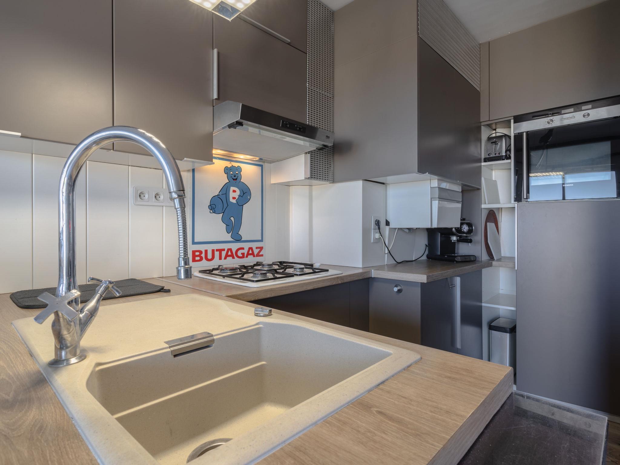 2-room apartment 48 m2 on 1st floor, west facing position. Living/dining room with panoramic window with 1 double sofabed (1 x 140 cm, length 190 cm). Exit to the balcony, west facing position. 1 room with 1 french bed (1 x 140 cm, length 200 cm). Open kitchen (oven, dishwasher, toaster, kettle, microwave, electric coffee machine) with dining nook and TV (flat screen). Exit to the balcony, west facing position. Bathroom. Heating. Parquet floors. Balcony 10 m2, west facing position. Side view of the sea and the countryside. Facilities: washing machine, dryer. Internet (WiFi, extra). Please note: smoke alarm, no lift. Offer by a private individual according to Art. 155, IV of CGI.