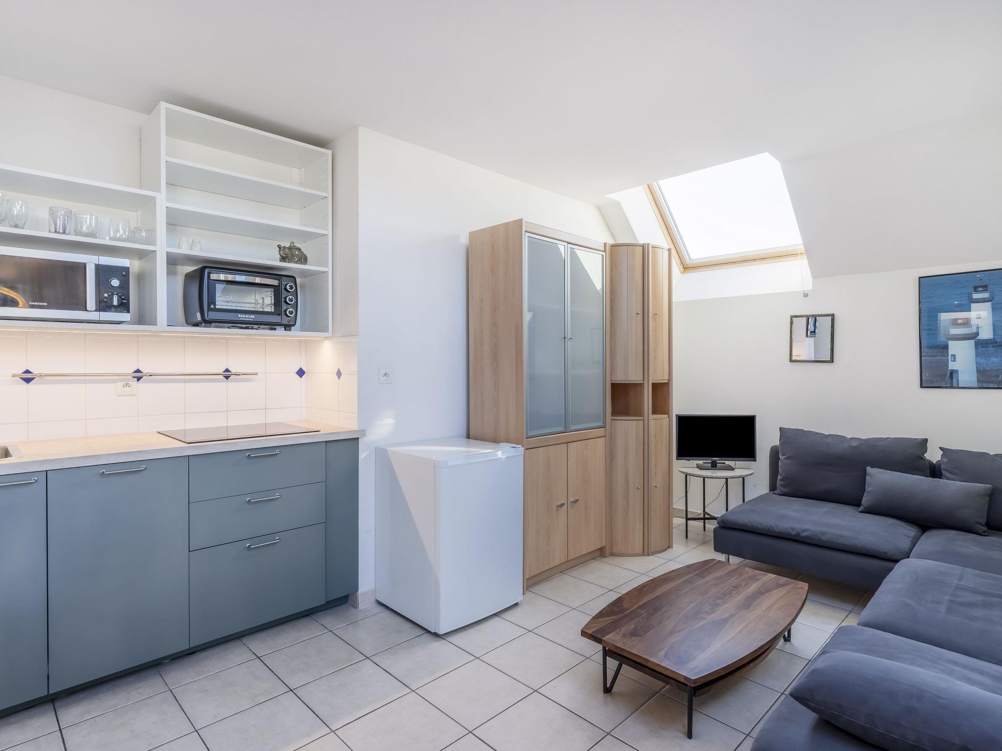 3-room apartment 44 m2 on 3rd floor, north-east facing position. Living/dining room with TV (flat screen). Exit to the balcony. 1 room with 1 french bed (160 cm, length 190 cm). Exit to the balcony. 1 room with sloping ceilings with 1 french bed (140 cm, length 190 cm). Kitchenette (mini-oven, dishwasher, 4 induction hot plates, toaster, kettle, microwave, electric coffee machine). Shower/WC. Electric heating, boiler. 2 balconies 2 m2. Distant view of the sea. Facilities: baby cot for up to 2 year olds. Internet (WiFi, extra). Please note: smoke alarm.