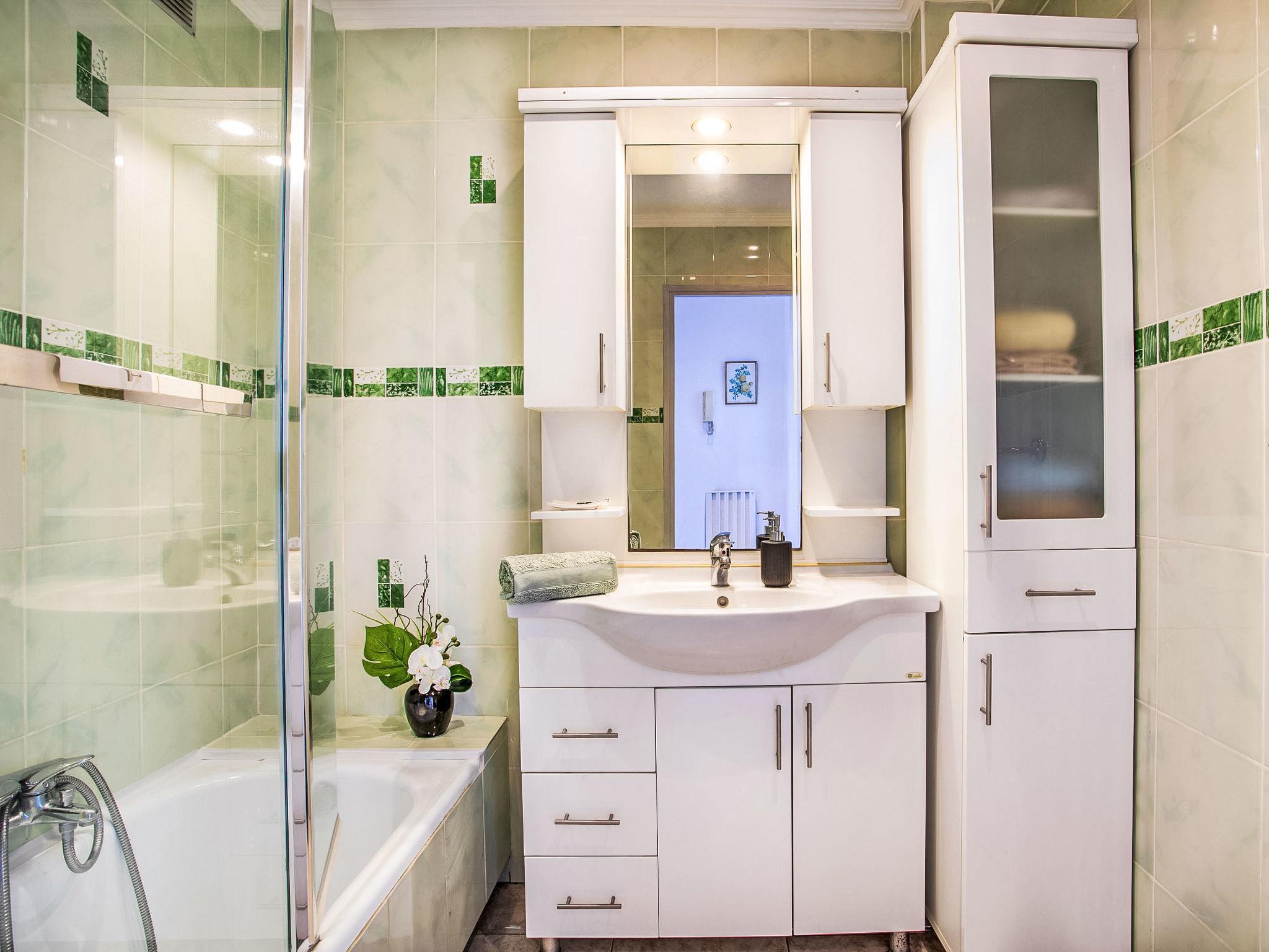 2-room apartment 50 m2 on 5th floor. Comfortable furnishings: living/dining room with 1 double sofabed (1 x 140 cm, length 190 cm), air conditioning. Exit to the terrace. 1 room with 1 french bed (1 x 160 cm, length 200 cm). Exit to the terrace. Kitchen (3 hot plates, oven, dishwasher, toaster, kettle, microwave, freezer, electric coffee machine). Exit to the terrace. Bathroom, sep. WC. Heating. Balcony 8 m2, south facing position and, east facing position, terrace 12 m2, north facing position. Balcony furniture. Beautiful view of the sea and the mountains. Facilities: washing machine, iron, hair dryer. Internet (WiFi, free). Parking (1 car). Please note: non-smoking house. Smoke alarm. Offer by a private individual according to Art. 155, IV of CGI. 06027034259WF