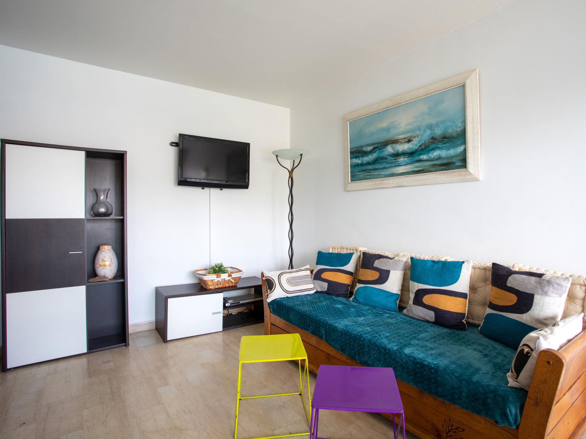 2-room apartment 45 m2 on 1st floor. Comfortable furnishings: living/dining room with 2 pull-out beds (2 pers. 2 x 80 cm, length 220 cm), TV (flat screen), air conditioning. Exit to the balcony. 1 room with 1 french bed (1 x 140 cm, length 190 cm), air conditioning. Kitchen (oven, 4 ceramic glass hob hotplates, toaster, kettle, microwave, freezer, electric coffee machine). Shower/WC. Heating. Balcony furniture. Side view of the sea. Facilities: washing machine, iron, hair dryer. Internet (WiFi, extra). Maximum 1 small pet/ dog allowed. 06027028039DP