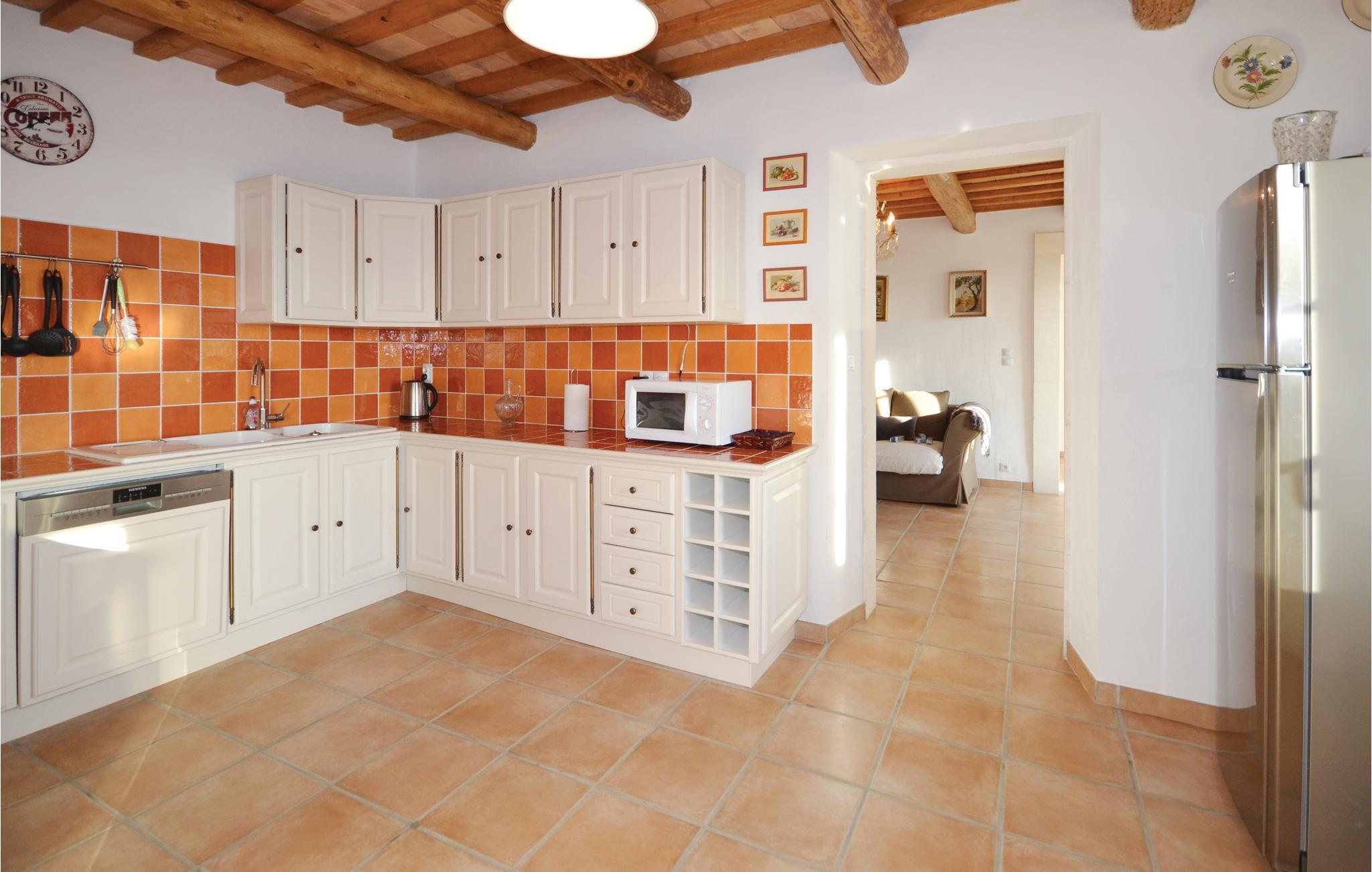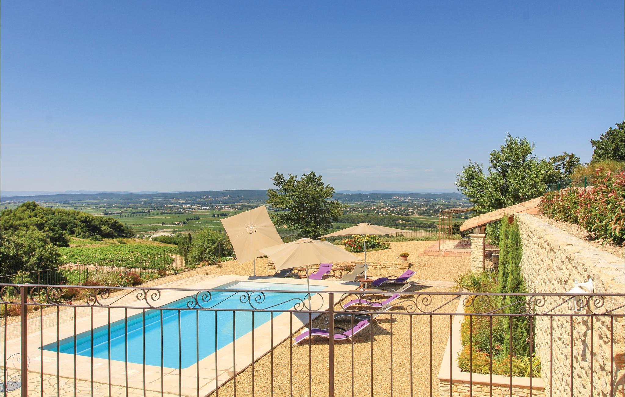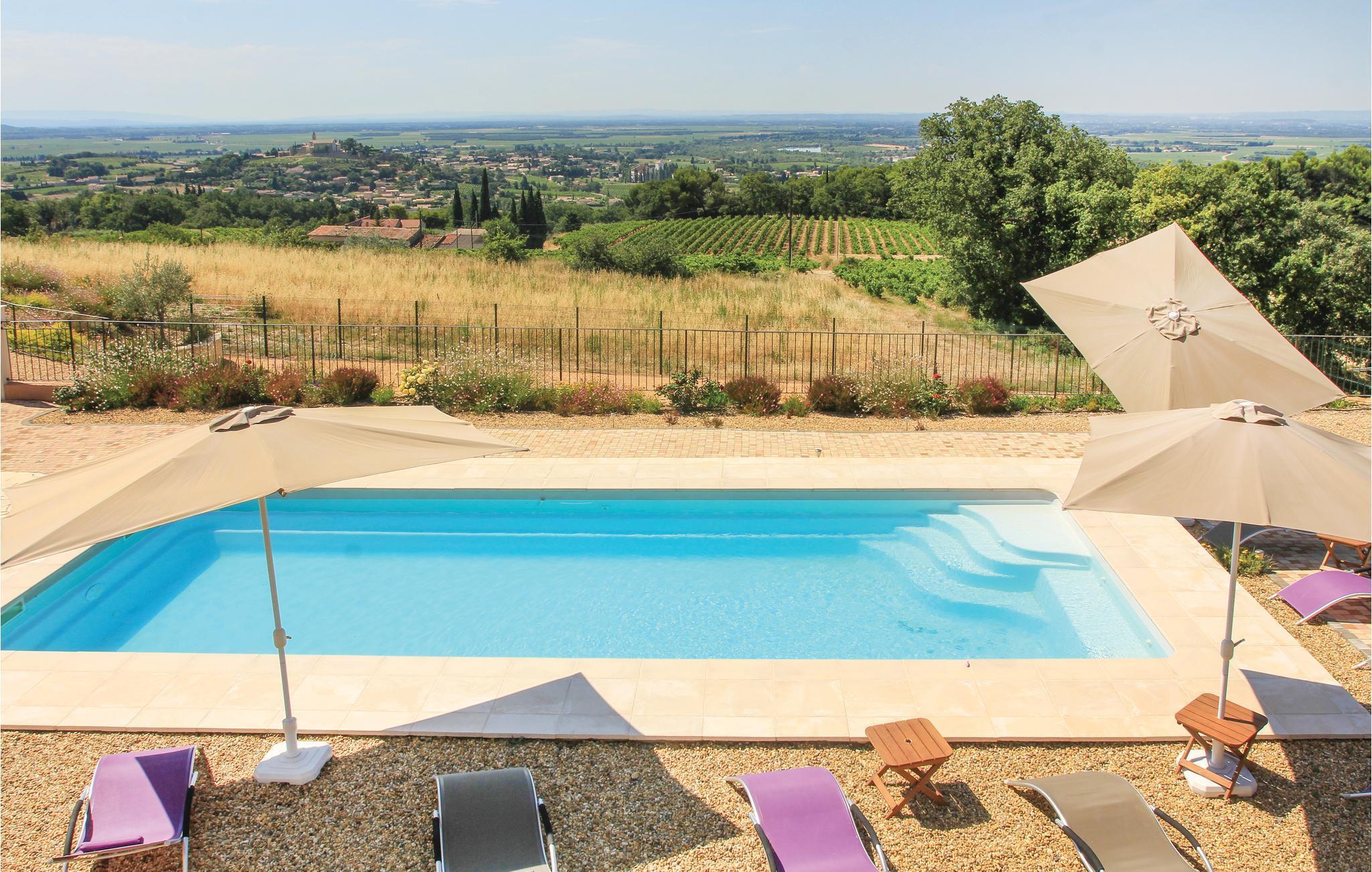Vackert semesterhus med uppvärmd och privat pool. Huset ligger i ett av de mest kända vinodlingsområdena i Côtes du Rhône och skämmer bort sina gäster med en fantastisk utsikt över vingårdar. Med sina fem sovrum erbjuder boendet tillräckligt med utrymme för upp till tio personer, som också kan se fram emot en privat pool. Fastigheten, som stolt har tronar över en dal i århundraden och drar nytta av ett mycket lugnt läge där, fungerar nu uteslutande som semesterbostad efter sin grundliga renovering. Fastigheten imponerar med sin raffinerade inredning, och ett rum är vackrare än det andra. Du kan också se fram emot ett fullt utrustat sommarkök och en vacker grill. Endast 1 km i kråkfågelvägen skiljer dig från Cairanne, en av de vackraste bergsbyarna runt Mont Ventoux. Från det enorma poolområdet med dusch och toalett har du en hisnande utsikt över omgivningarna när som helst på året, och du behöver inte frukta några främmande blickar här. Du har också känslan av att vara helt ensam i världen på den rymliga, täckta terrassen, som du når via övervåningen. Härifrån kan du njuta av utsikten över Cairanne, Dentelles de Montmirail med sina bisarrt formade bergsryggar och Orange, känt för ett antal romerska byggnader. Tio solstolar och en vacker pool, som kan värmas upp på begäran, kompletterar detta erbjudande som är lika tilltalande för semesterfirare i alla åldrar. På begäran kan hyresvärdarna tillhandahålla upp till tre barnstolar och fyra barnsängar. Châteauneuf-du-Pape, Rasteau, Beaumes-de-Venise, Vaison-la-Romaine, Séguret och Avignon är bara några exempel på de många platser som är värda att besöka i denna del av Provence. Detta fantastiska semesterhus med pool passar garanterat din smak.