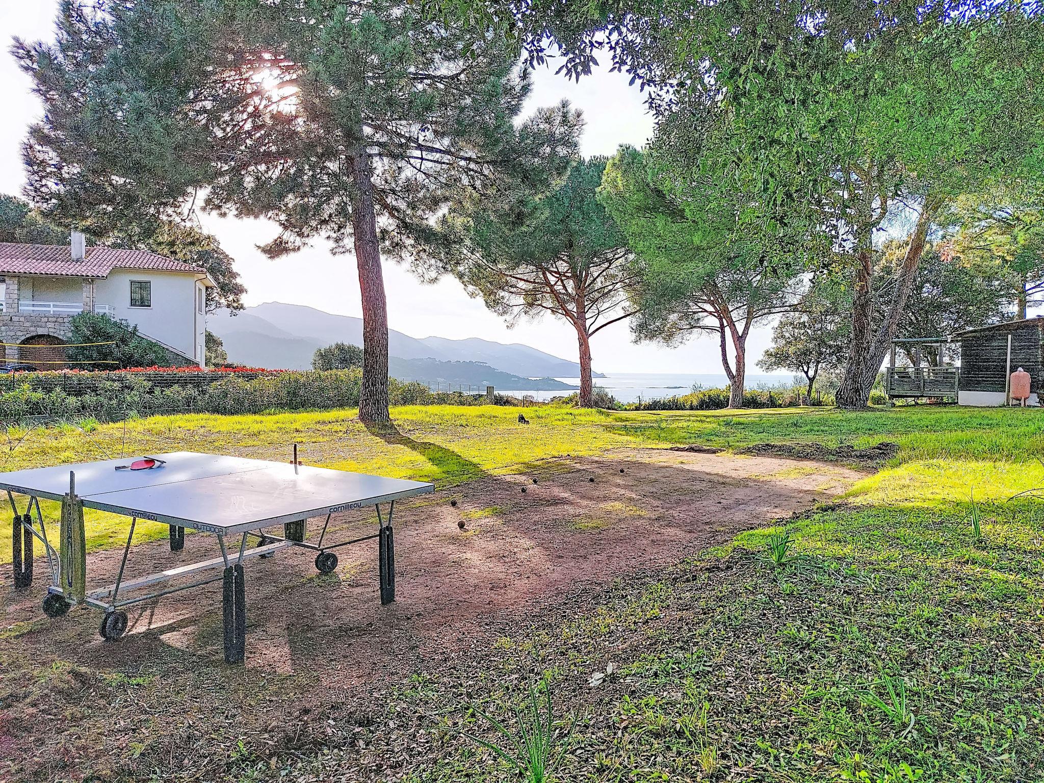 Below Calcatoggio, in a quiet, sunny position, 900 m from the sea, 900 m from the beach. For shared use: property 8'000 m2 (fenced). Boccia. In the house: table tennis. Parking at the house. Shop, grocery, restaurant, bakery, bus stop 850 m, sandy beach "Plage du Stagnone" 900 m, diving center 1 km. Sports harbour 24 km, tennis 1 km. Nearby attractions: Plage du Stagnone 900 m, Plage de la Liamone 5 km, Scandola 58 km, Calanques de Piana 45 km, Ajaccio 27 km. Hiking paths: Capigliolo 5 km, Pelusella (Lava) 22 km, Capo Di Feno 40 km. Please note: car recommended.