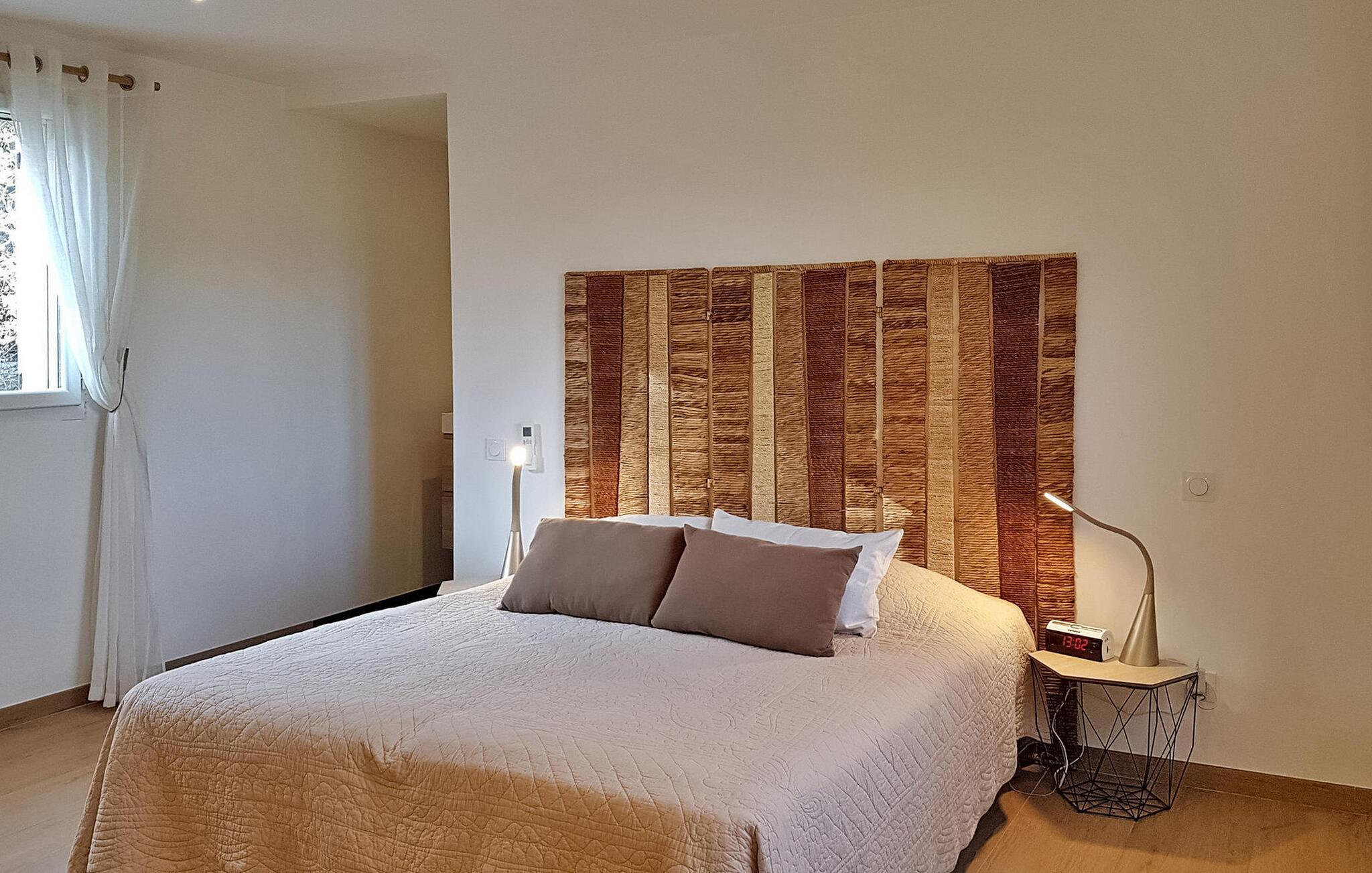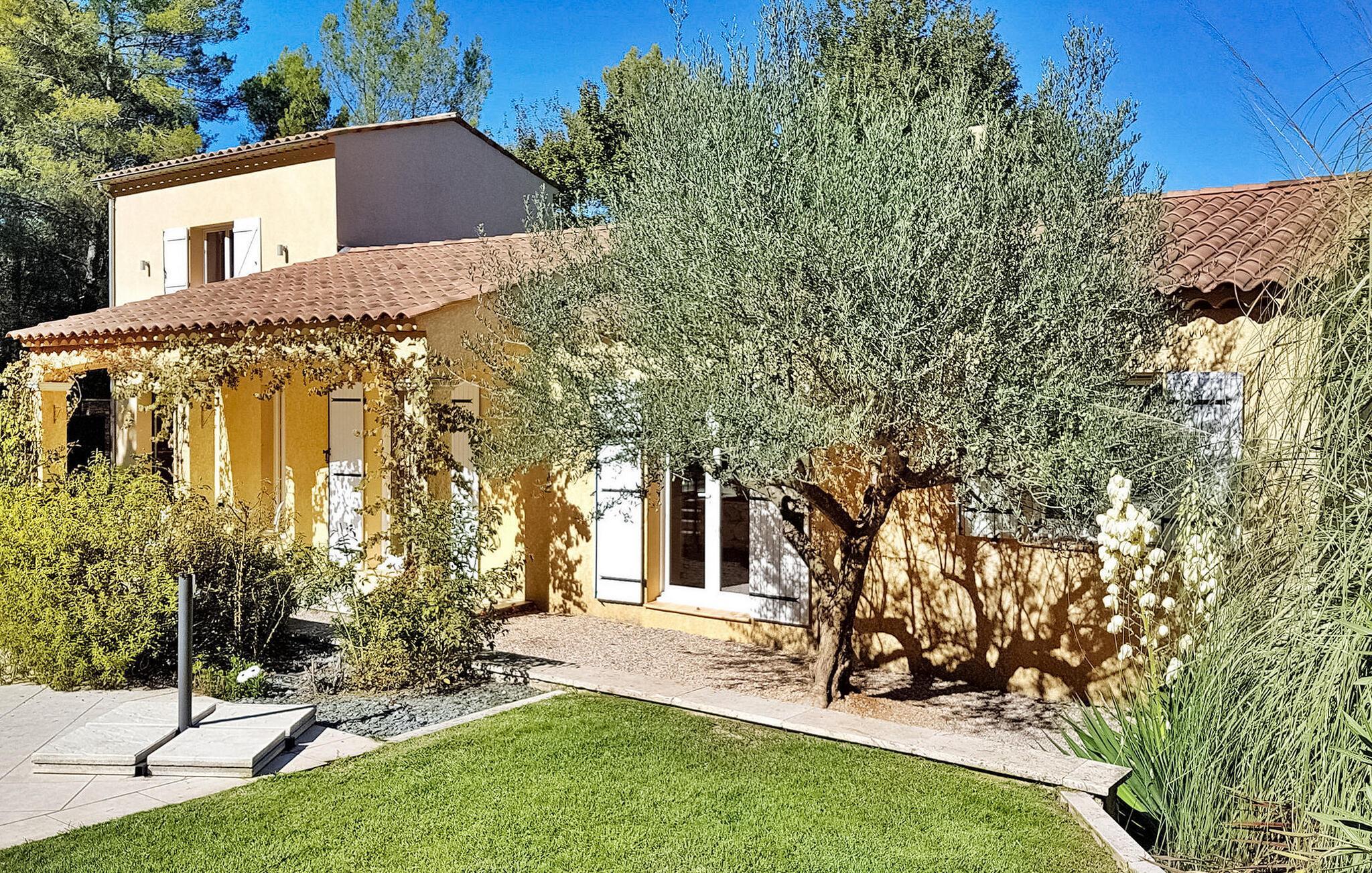 Koppla av i en fridfull semestervilla i Callas, nära Draguignan i den pittoreska Var-regionen. Denna inbjudande tillflyktsort ligger strax utanför byn i ett lugnt bostadsområde och erbjuder fascinerande utsikt över de omgivande Var-kullarna. Denna mysiga villa har ett bekvämt vardagsrum med matplats på bottenvåningen med en vedeldad spis och ett kök med öppen planlösning utrustat med moderna bekvämligheter. Franska fönster vetter mot en terrass och uteplats, perfekt för avkoppling och måltider utomhus. På denna nivå finns tre luftkonditionerade sovrum som garanterar komfort och lugn. På övervåningen finns ett rymligt, luftkonditionerat dubbelrum med eget badrum - en lugn tillflyktsort som utstrålar komfort och avkoppling. Gå ut och utforska den stora tomten som pryds av olivträd och blommor. Njut av utomhusterrasserna, unna dig ett dopp i den privata poolen (6,8 x 4 meter) eller koppla av på solstolarna för ultimat avkoppling. Observera att en del av fastigheten är delvis inhägnad och en oinhägnad del har utsikt över grannens trädgård där en liten hund bor. Villan ligger i Callas i Var. Närmaste strand ligger i Fréjus (40 km), Cannes ligger 73 km, Saint Tropez ligger 58 km.