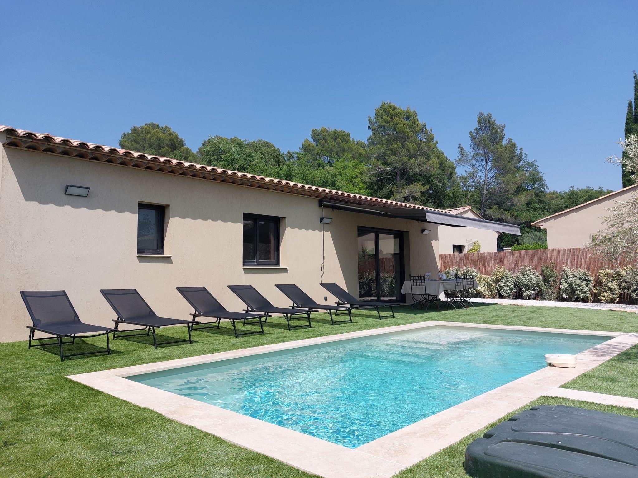 3 km from the centre of Callas, 12 km from the centre of Draguignan, 32 km from the centre of Fréjus, in the residential district, 32 km from the sea, 26 km from the lake. Private: property 800 m2 (fenced), swimming pool angular (6 x 3 m, depth 145 cm, seasonal availability: 01.Apr. - 30.Oct.) with alarm system. Parking (for 2 cars) on the premises. Grocery 3 km, supermarket 1400 km, restaurant 3 km, bar 3 km, bakery 3 km, café 3 km, bus stop 1.2 km, railway station "Les Arcs Draguignan" 23 km, sandy beach "Fréjus Plage" 32 km. Golf course (18 hole) 15 km, riding stable 3.2 km. Nearby attractions: Gorges du Verdon, Grottes de Villecroze, La cascade de Sillans, Cotignac, Tourtour, Abbaye du Thoronet. Well-known lakes can easily be reached: Lac de Sainte Croix 48 km, Lac de Saint Cassien 26 km. Hiking paths: Gorges de Pennafort, Gorges du Verdon, Gorges du Blavet. The owner does not accept any youth groups.