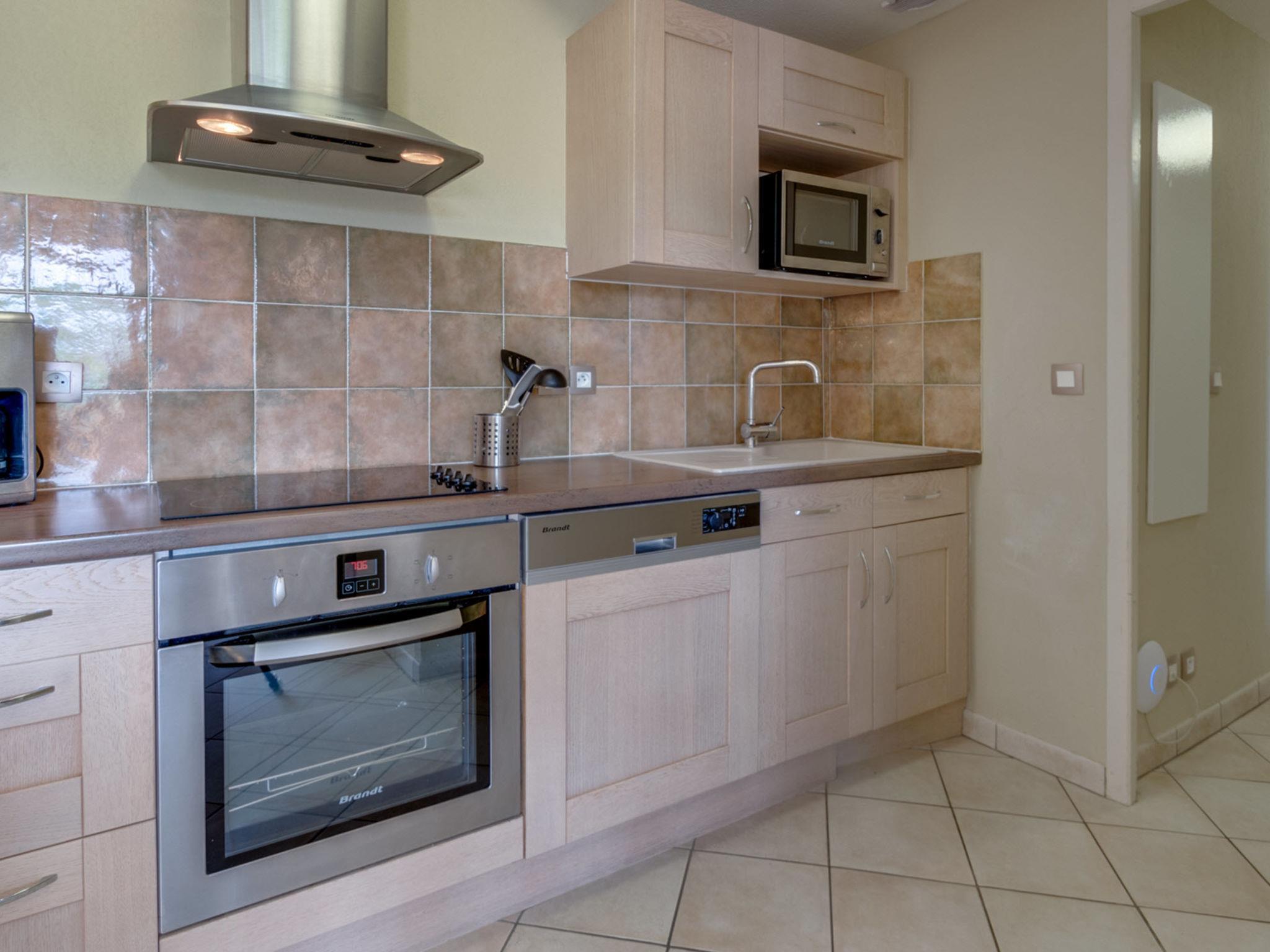 "Domaine de Camiole", 3-room apartment 46 m2. Tasteful furnishings: living/sleeping room with 1 double sofabed, dining table and satellite TV. 1 room with 1 french bed. 1 room with 2 sleeping facilities. Open kitchen (oven, dishwasher, 4 ceramic glass hob hotplates, microwave, electric coffee machine). Sep. WC, bath or shower. Heating, air-conditioning. Balcony. Balcony furniture. Facilities: Internet (WiFi, free). Please note: non-smokers only. Maximum 1 pet/ dog allowed. Smoke alarm, fire extinguisher.