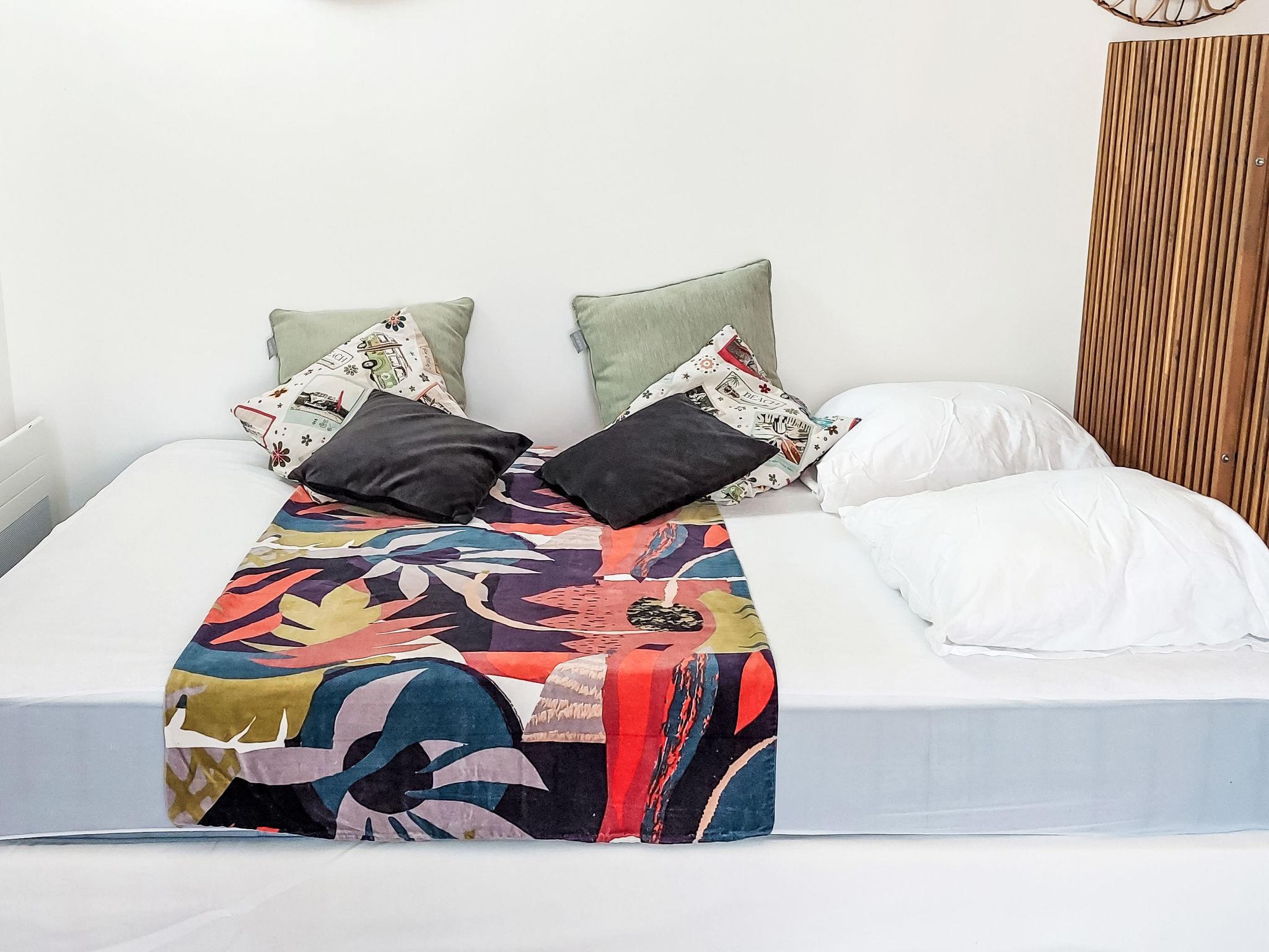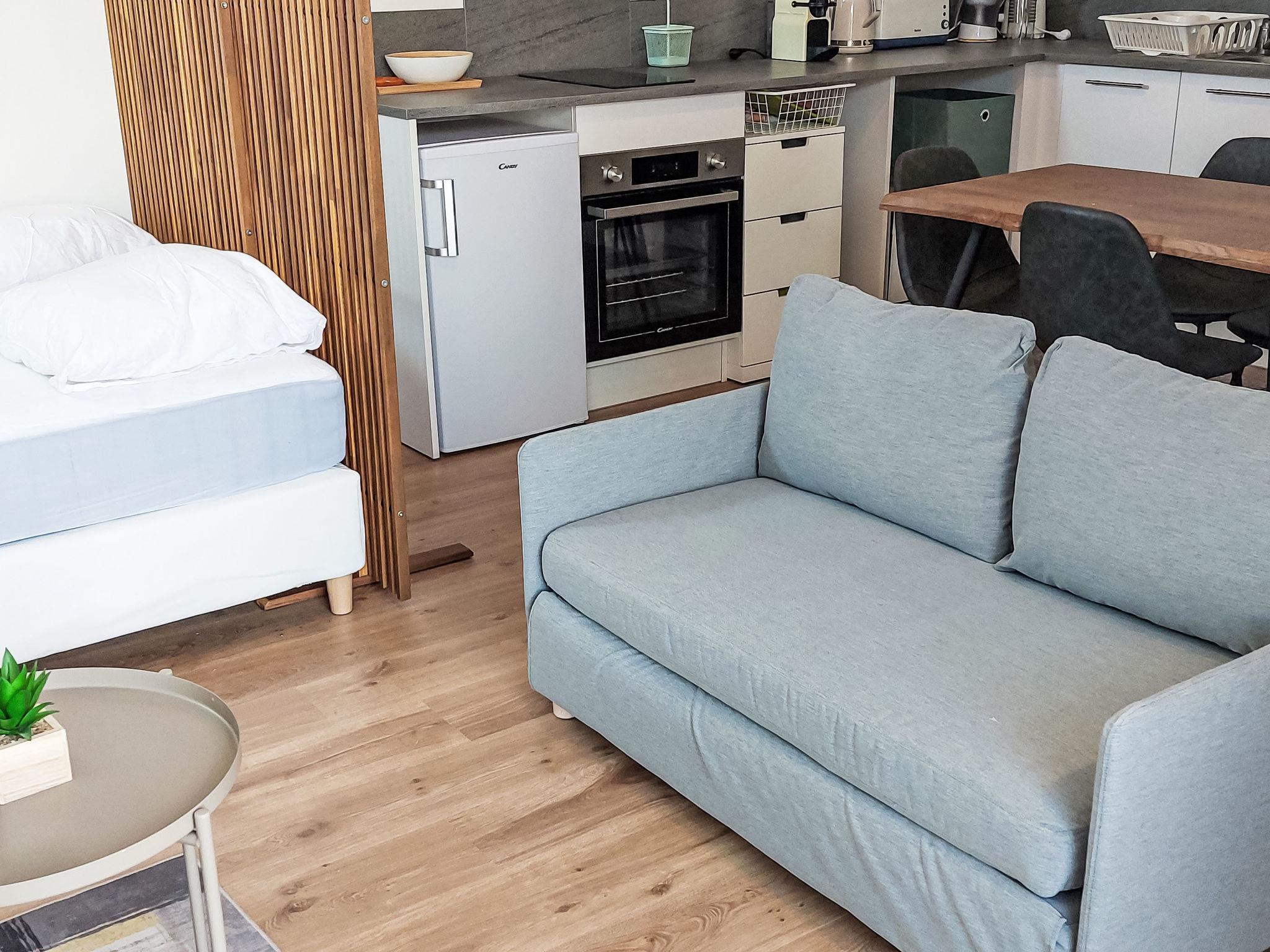 1-room studio 27 m2 on 1st floor. Modern and cosy furnishings: living/dining room with 1 french bed (140 cm, length 190 cm), TV (flat screen). Exit to the terrace. Open kitchen (oven, dishwasher, 2 induction hot plates, toaster, kettle, microwave, electric coffee machine, Capsules for coffee machine (Nespresso) extra). Shower/WC. Electric heating. Terrace 14 m2, south facing position. Terrace furniture, deck chairs (2). Facilities: hair dryer. Internet (WiFi, free). Please note: non-smokers only. Offer by a private individual according to Art. 155, IV of CGI. 40065001453VO