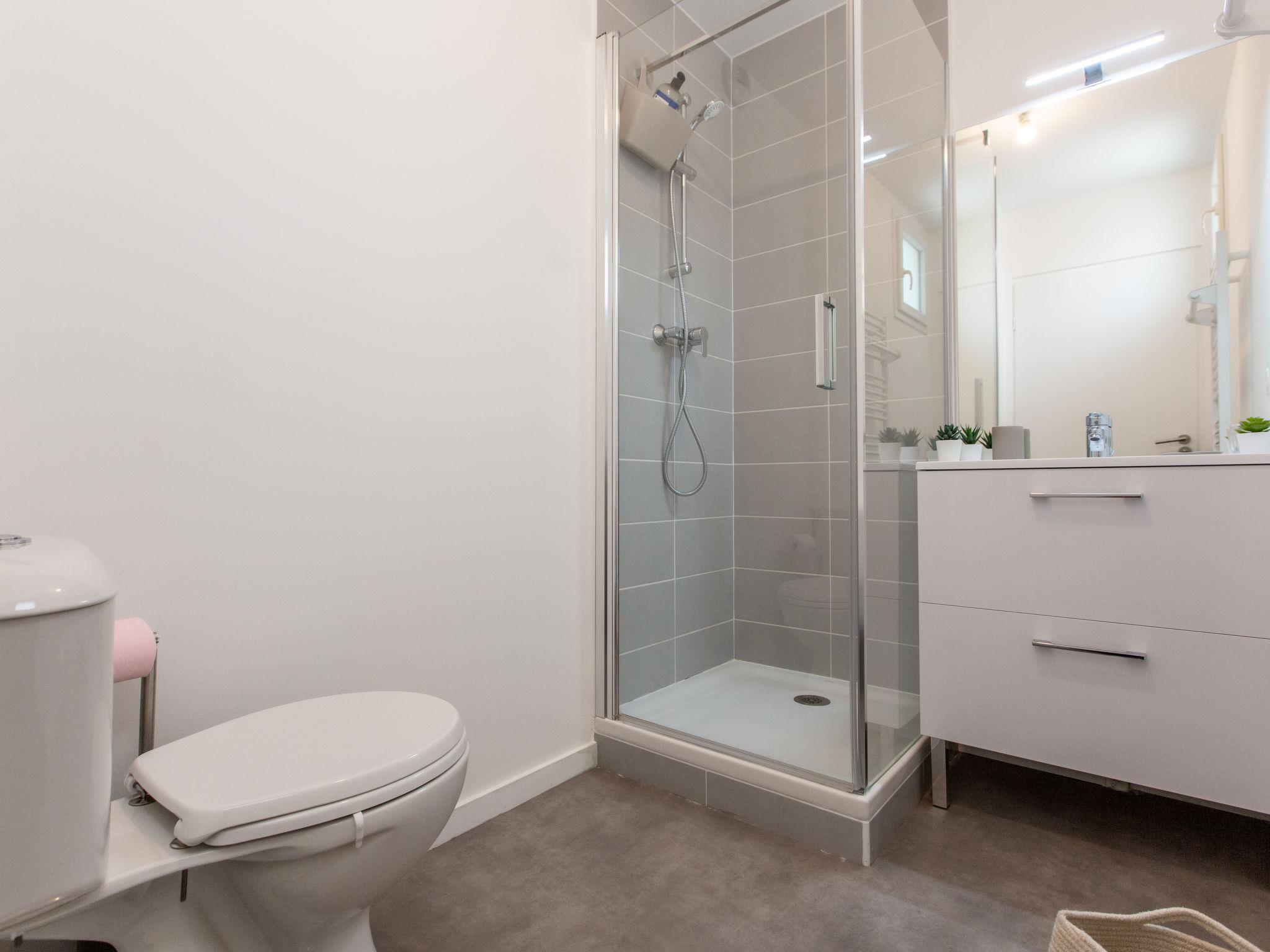 Capbreton: Apartment block "Cap Océan", 2 storeys, built in 2023. 17 apartments in the residence. In the resort, 150 m from the sea, 150 m from the beach. In the complex: washing machine, tumble dryer (for shared use). Public parking on the road. Shop 300 m, grocery 150 m, supermarket 1.8 km, restaurant 50 m, bakery 150 m, bicycle rental 100 m, bus stop "Capbreton Estacade" 300 m, sandy beach "Du Prévent" 150 m. Golf course (18 hole) 4 km, surf school 150 m, tennis 3 km, minigolf 200 m, riding stable 1 km. Nearby attractions: Seignosse 15 km, Bayonne 22 km, Dax 37 km, Biarritz 37 km. Well-known lakes can easily be reached: Réserve Naturelle des Marais d’Orx, Réserve Naturelle du courant d’Huchet.