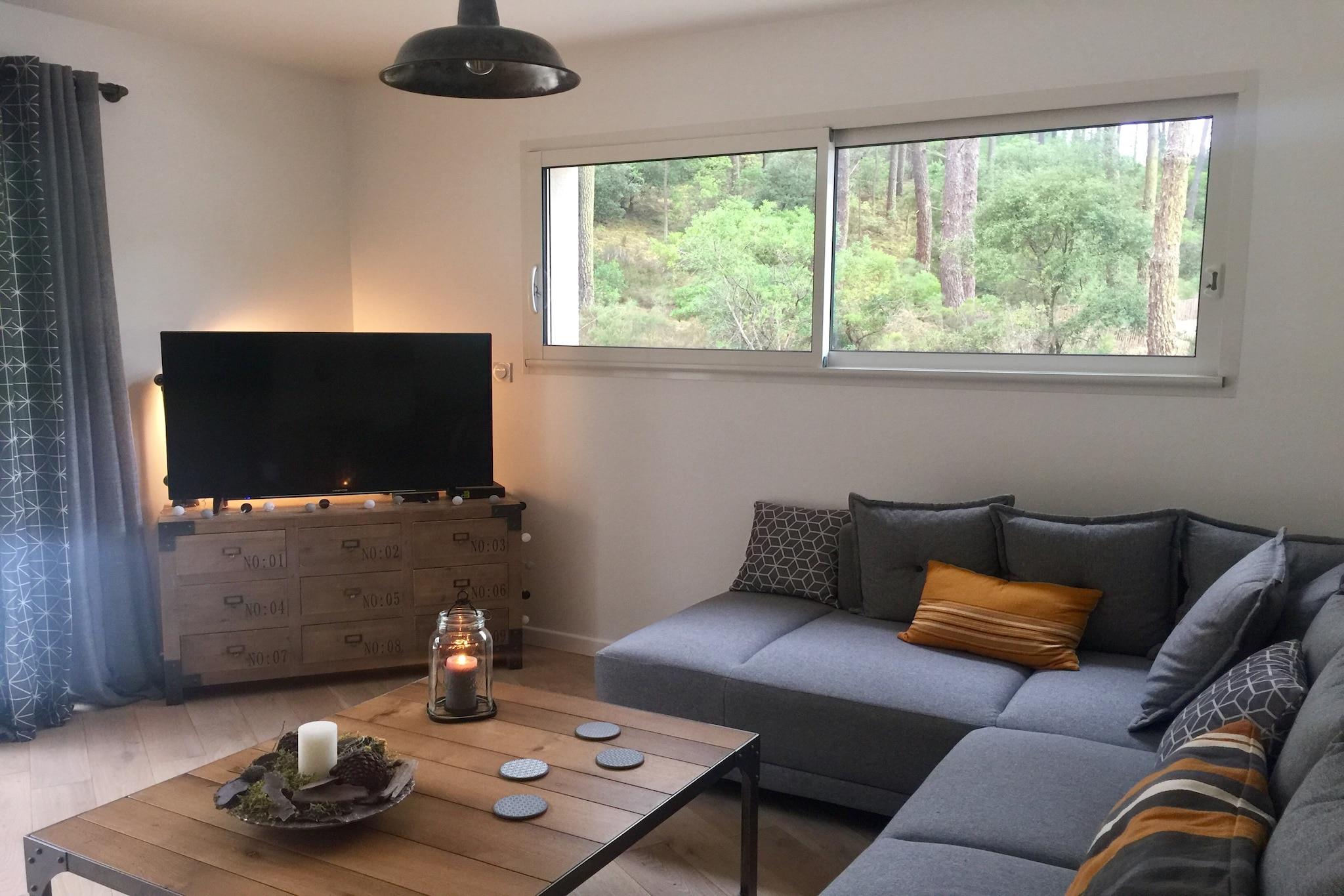 Forest Retreat Between Lake & Ocean Fly till en 4-stjärnig modern fristad inbäddad i hjärtat av en doftande tallskog vid foten av dynen. Detta hem med 3 sovrum i söderläge inbjuder dig att vakna upp till trädens brus och koppla av på en 60 m² stor terrass med oavbruten utsikt över skogen. Inuti skapar ett ljust vardagsrum med öppen planlösning, elegant kök och duschkabin den perfekta balansen mellan komfort och lyx – perfekt för upp till 6 gäster. Oavsett om du dricker espresso vid soluppgången eller njuter av ett lugnt glas Médoc-vin på kvällen, är naturen alltid inom räckhåll. Stränder, cykling och Bordeaux-viner Perfekt beläget mellan havet och sjön, du är bara en 10-minuters cykeltur till Maubuissons charm vid sjön eller 15 minuter till de vilda vågorna i Carcans Plage. Tillbringa dagarna med att paddla, segla eller slappa i sanden. Cyklister och vandrare kommer att älska de natursköna stigarna som väver sig genom skogen. Och för vinentusiaster ligger världsberömda Médoc-vingårdar och slott bara en kort bilresa bort, liksom destinationer med bucketlist som Dune du Pilat, Cap Ferret och Bordeaux. Mat & detaljer som spelar roll Efter en dag av äventyr kan du unna dig läckra skaldjur eller en mysig bistromåltid i Maubuisson (2 km bort). Hemmet erbjuder alla bekvämligheter du behöver - från solstolar och ett säkert garage till ett komplett kök och tvättmaskin. Observera: husdjur är inte tillåtna, vilket garanterar en allergenfri, fridfull upplevelse för alla.