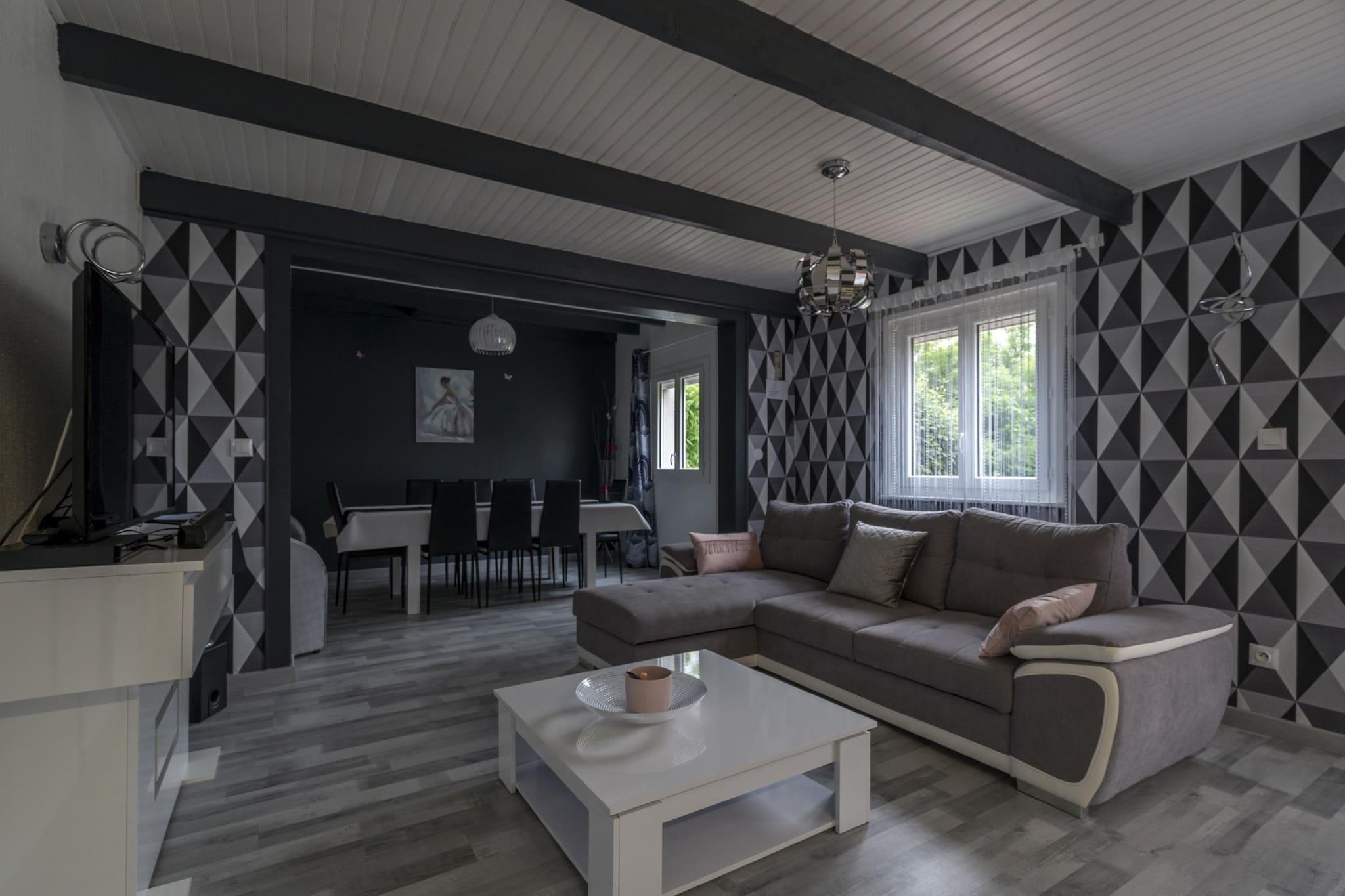 Bottenvåningen: (öppet kök(Kokplattor(Spis med 4 kokplattor, gas), brödrost, kaffebryggare(kaffekapslar), kaffebryggare, mikrovågsugn, diskmaskin, kyl och frys), ardags- och matrum(TV, matbord(8 personer), sitthörna, DVD-spelare), sovrum(dubbelsäng(140 x 200 cm)), badrum(badkar, dusch, handfat), WC(toalett ), grovkök(tvättmaskin)) På våning 1: (sovrum(våningssäng), sovrum(enkelsäng(90 x 190 cm), enkelsäng(90 x 190 cm)), badrum(Sittkar, handfat, toalett ), WC(handfat, toalett )) matbord(8 personer), terrass, trädgård, solstole, grill(gas), Stekbord/stekhäll