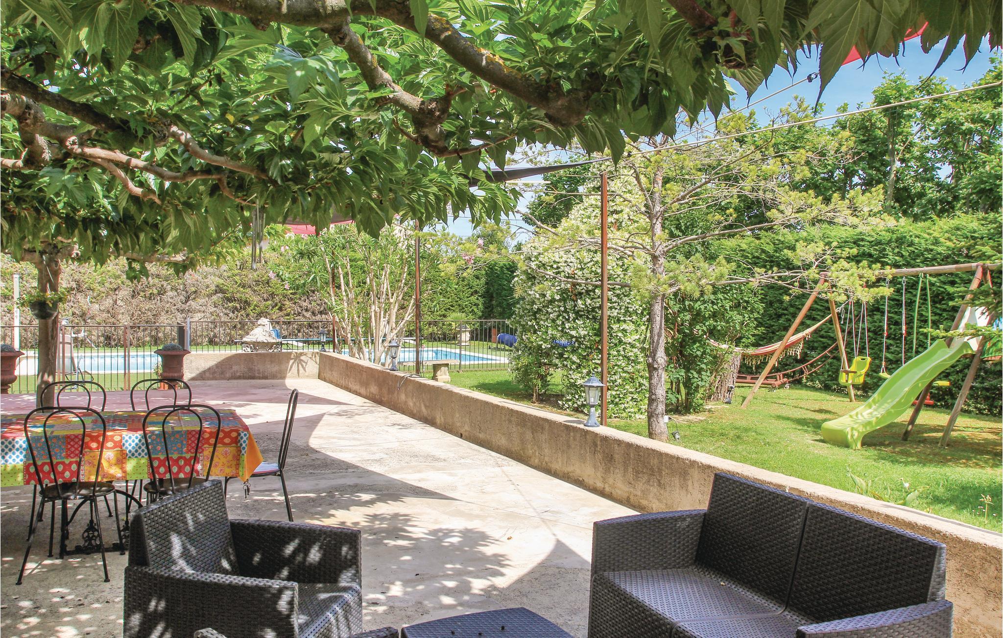 Tillbringa en drömlik tid i denna charmiga fastighet med privat pool. Huset rymmer upp till åtta personer som vill njuta av den franska savoir-vivre i Bouches du Rhône-departementet. En härlig plats att bo på är ditt poolhus, som är utrustat med ett sommarkök, en bar, en pizzaugn och en grill. Du kan också välja att koppla av på den mycket rymliga och behagligt skuggade terrassen eller i den trevliga trädgården med paraplytallar, palmer och mullbärsträd. Det finns en liten yta för dina barn att leka på. Möblerna i typisk stil för Camargue skapar en mysig och god komfort i de rymliga inomhusutrymmena. Du bor här i den "gyllene triangeln" eller mellan Alpilles, Camargue och Luberon. Châteaurenard ligger mycket nära Avignon, som är ett underbart resmål med sitt majestätiska före detta påvepalats, sin berömda bro som slutar abrupt i Rhône och sin livliga och färgglada marknadshall. Avignon är också känd för sin internationella teaterfestival. Upptäck också Sorgues vackra källa i Fontaine-du-Vaucluse, de ockrafärgade klipporna i Roussillon och Les Baux-de-Provence med sitt gamla citadell. Den majestätiska akvedukten Pont du Gard är en stor upplevelse och lämnar ett bestående intryck, och den som söker en romantisk miljö finner sin lycka i den lilla staden L'Isle-sur-la-Sorgue med sina många kanaler och antikhandlare. Saint-Rémy-de-Provence är ett måste att se. Denna vackra stad lyser med sina gamla fontäner och sina små, behagligt skuggade torg, och har spännande gallerier och en provensalskt marknad.