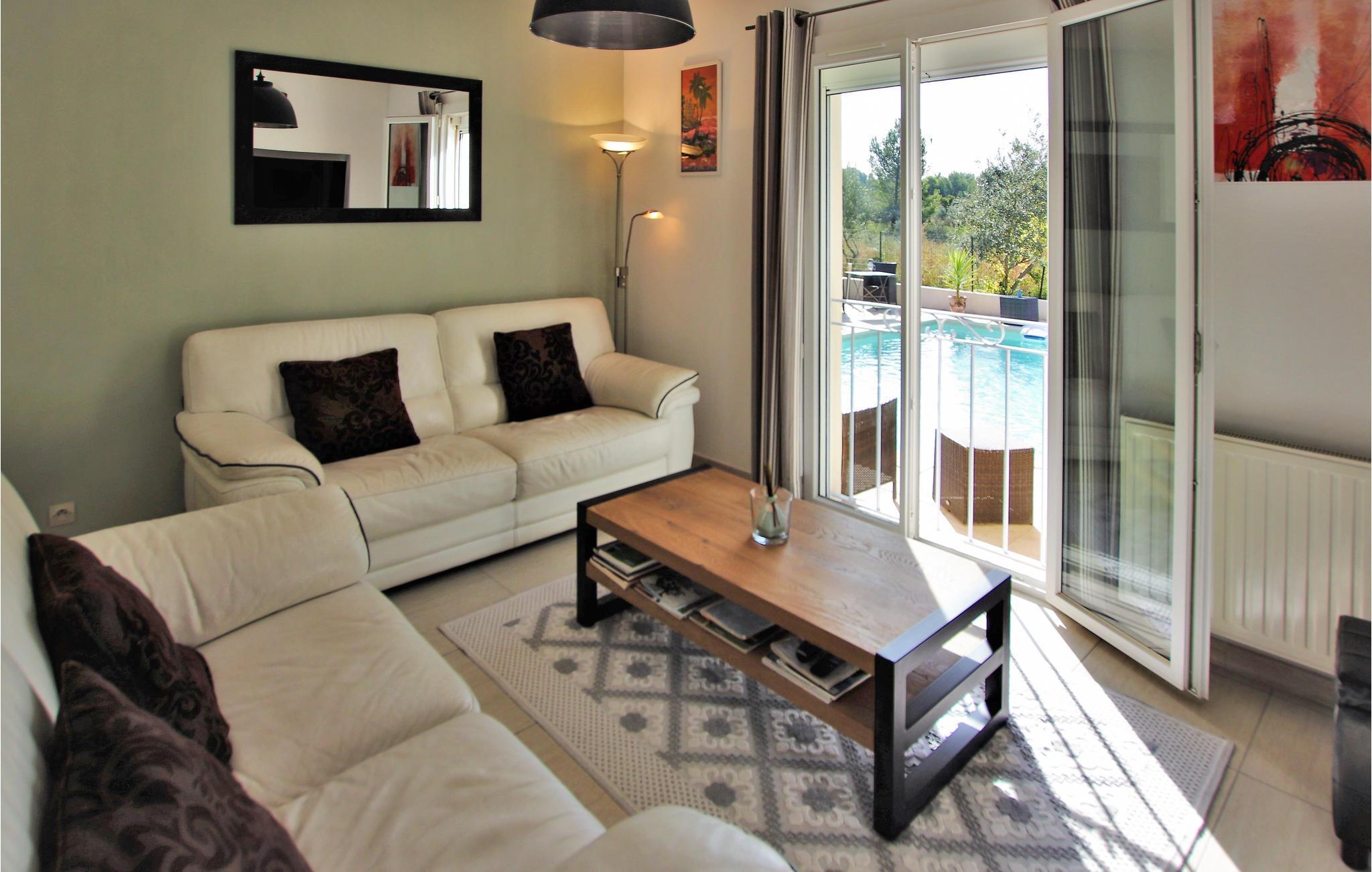 Denna vackra provensalska villa med hög standard och en härlig privat pool, skyddad från all insyn, ligger i utkanten av naturen och erbjuder ett drömsemesterhus för att njuta av det ljuva livet i Bouches du Rhône. Den moderna och samtida inredningen med möbler av hög kvalitet och fina material erbjuder dig en hög komfort. Den snygga och raffinerade neo-provençaliska inredningen gör att du verkligen känner dig hemma. Det mycket mysiga vardagsrummet, som förlängs med den välkomnande och varma matsalen och det integrerade köket, öppnar sig mot en ljus och vacker veranda.